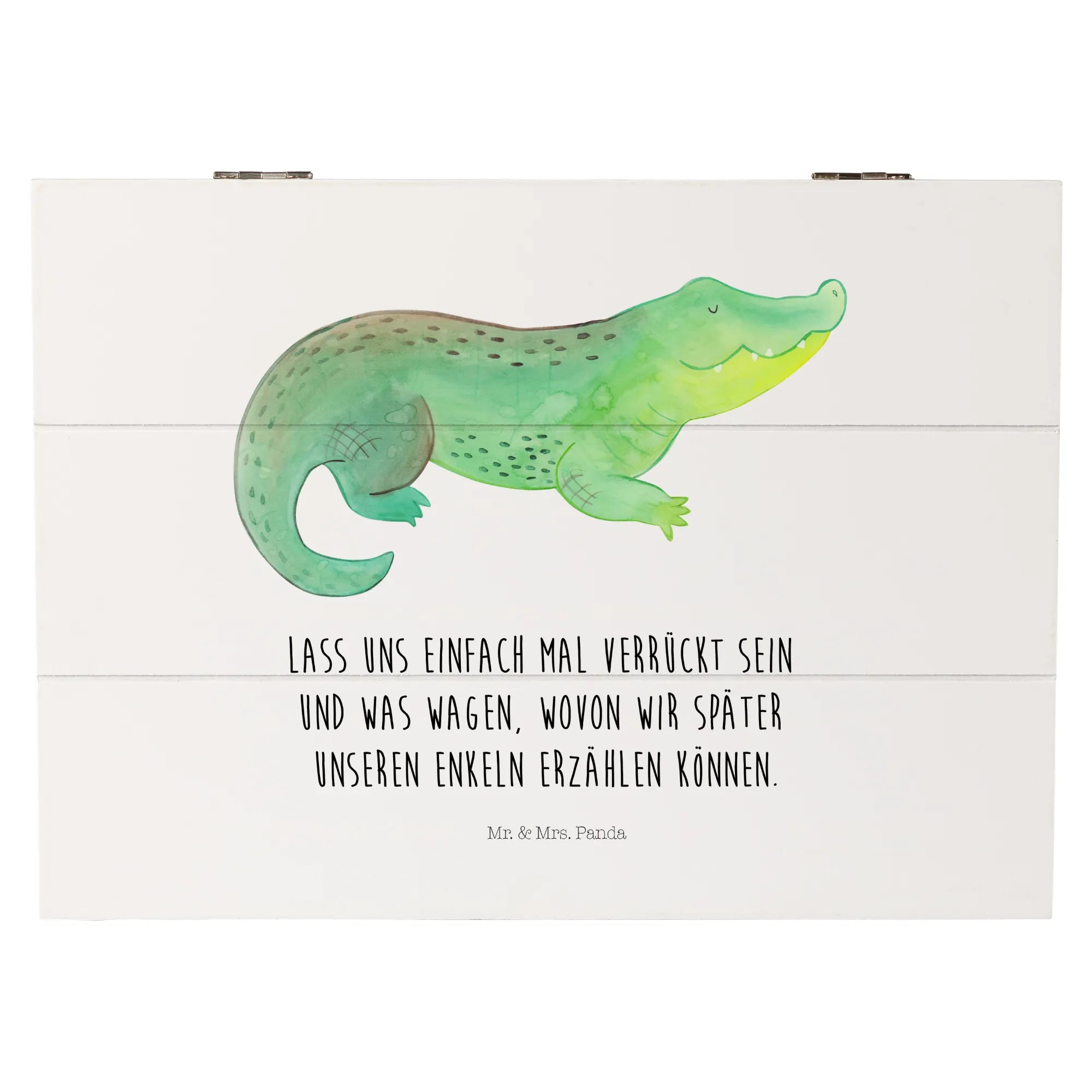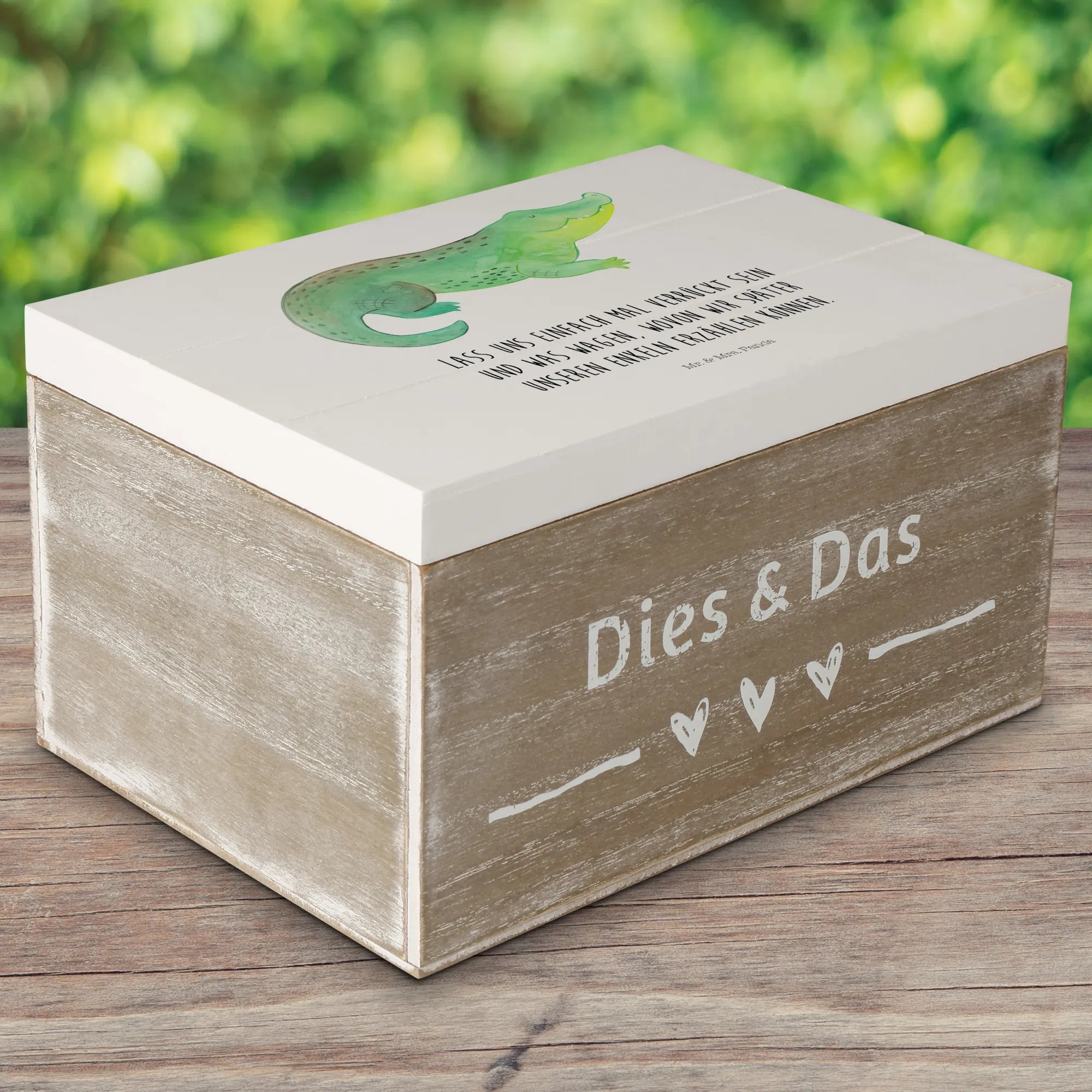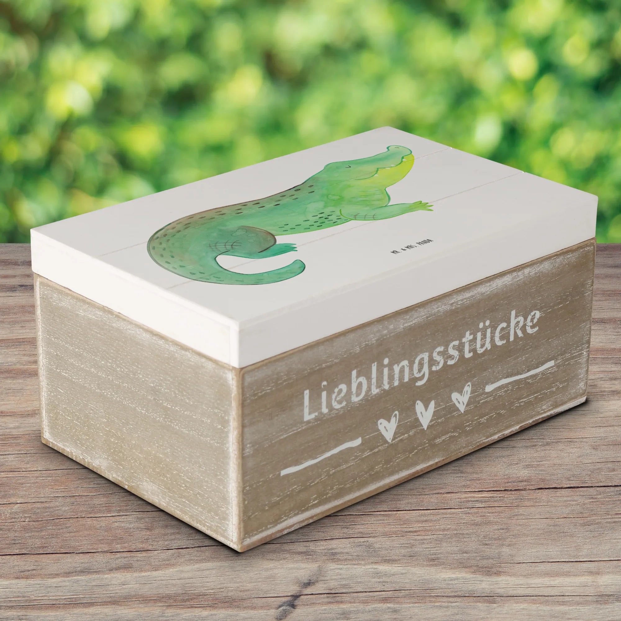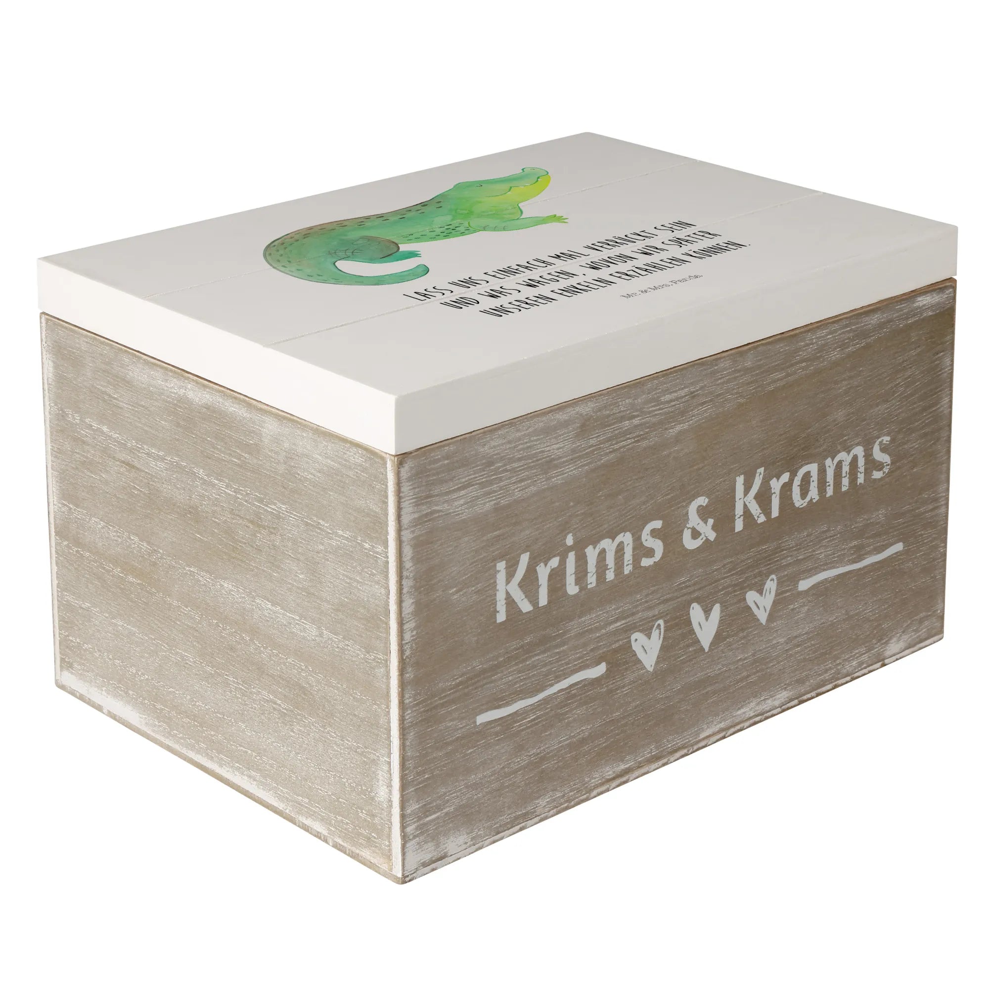 Wooden chest Crocodile - 22 x 15 cm - with saying - White