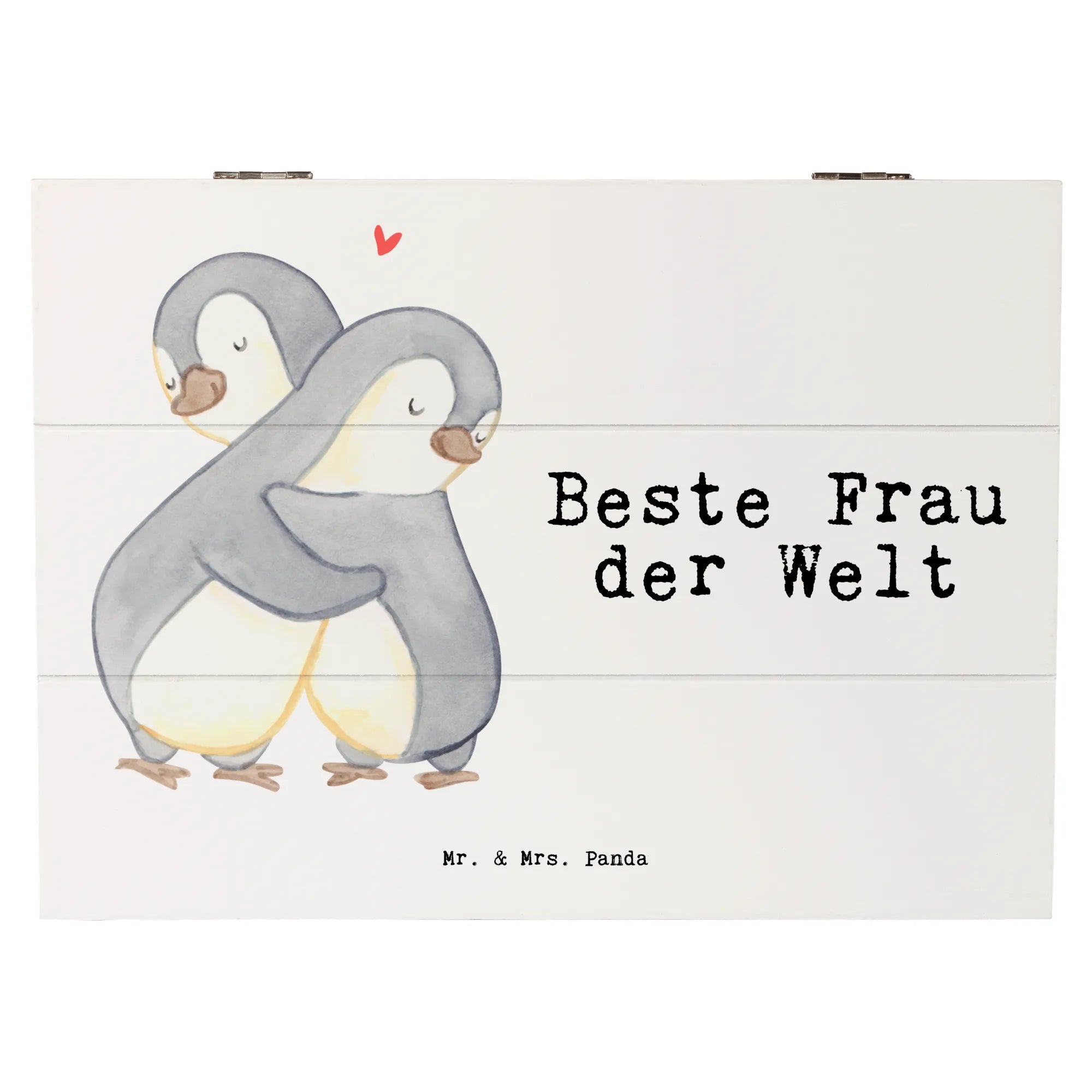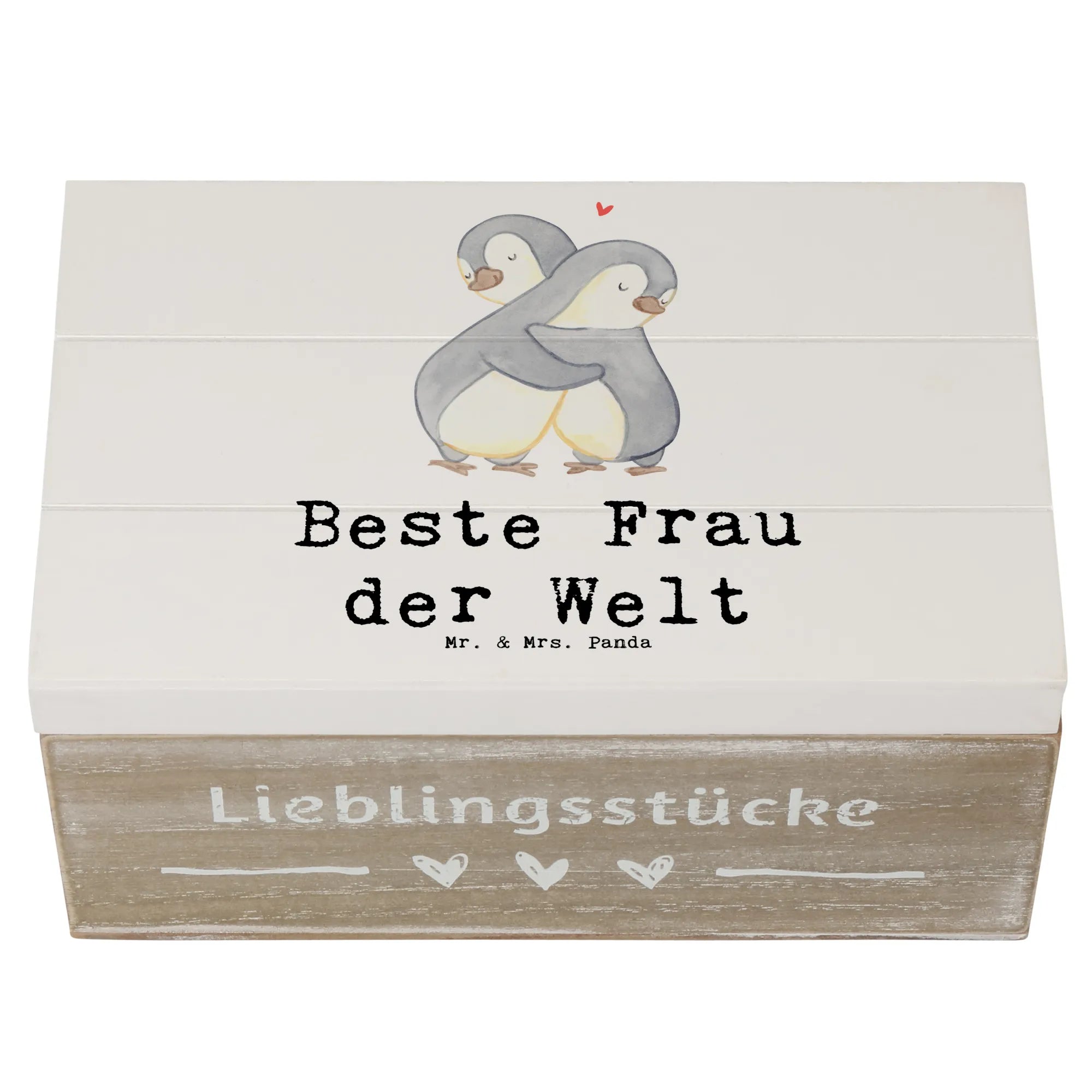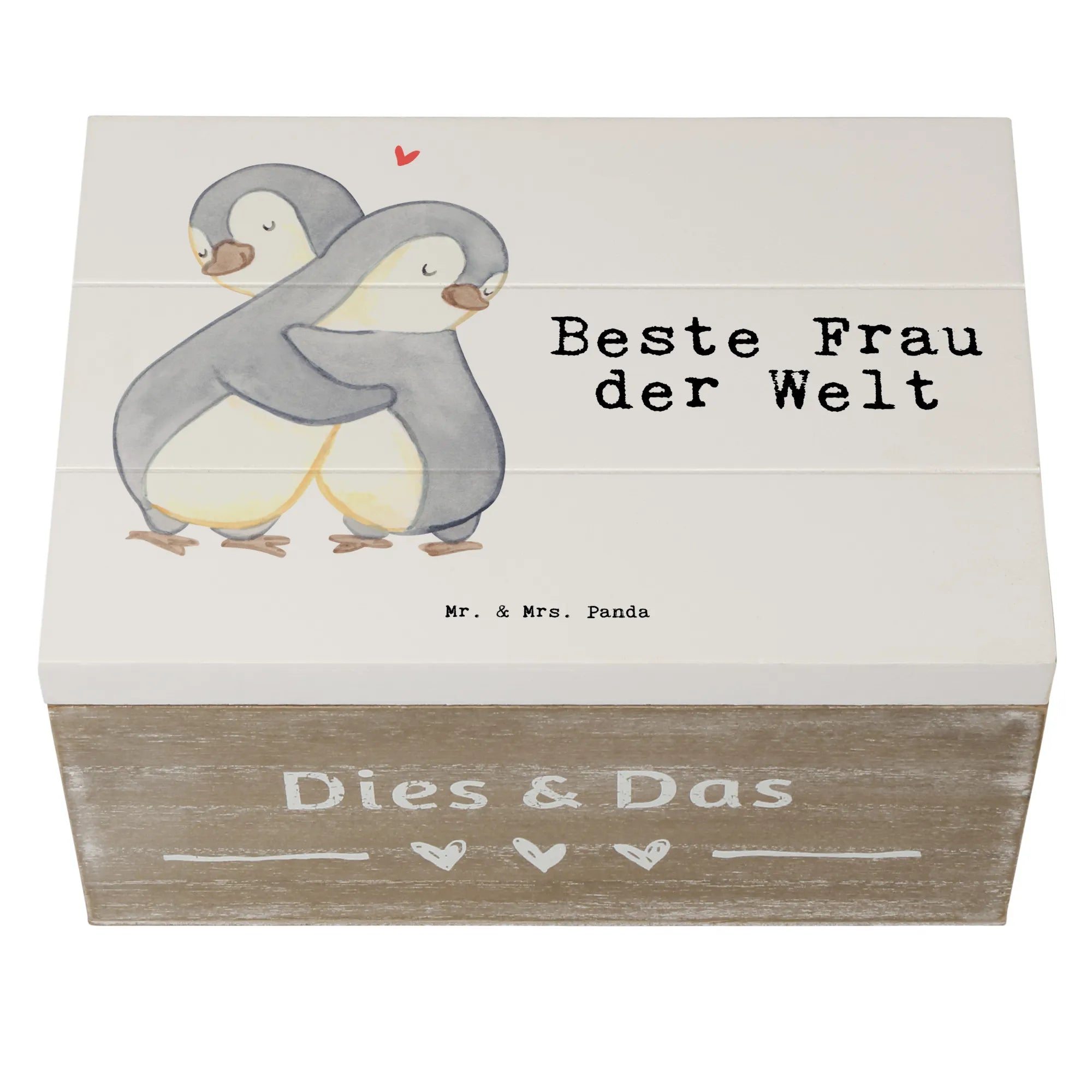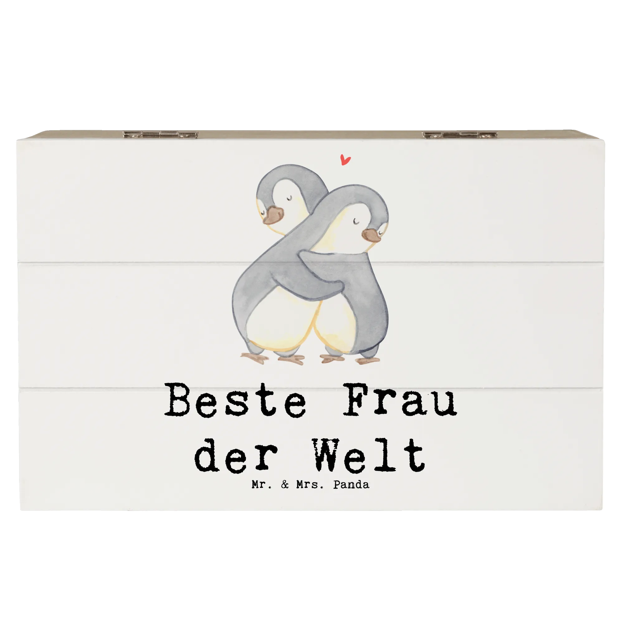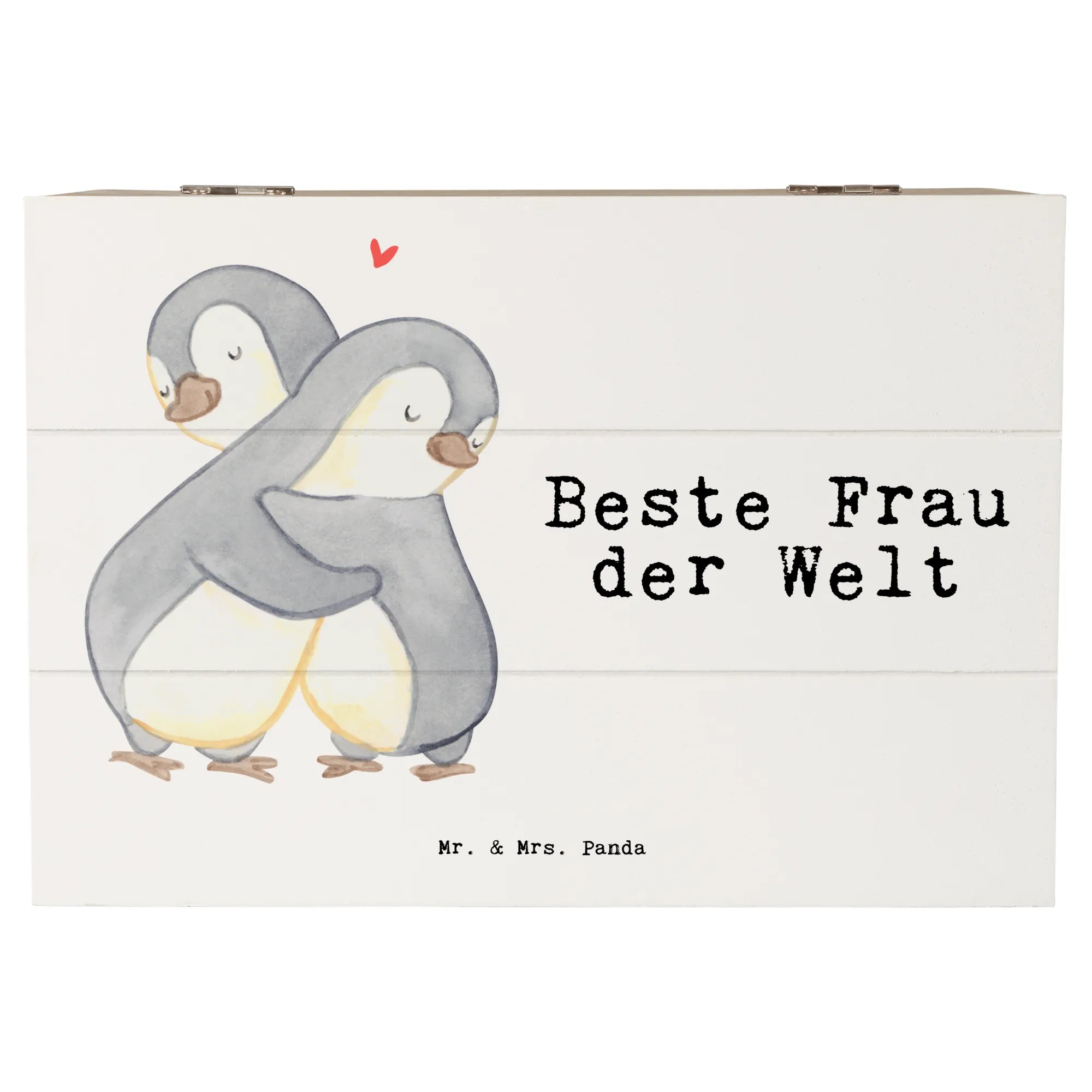 Wooden chest penguin best woman in the world - 22 x 15 cm - White