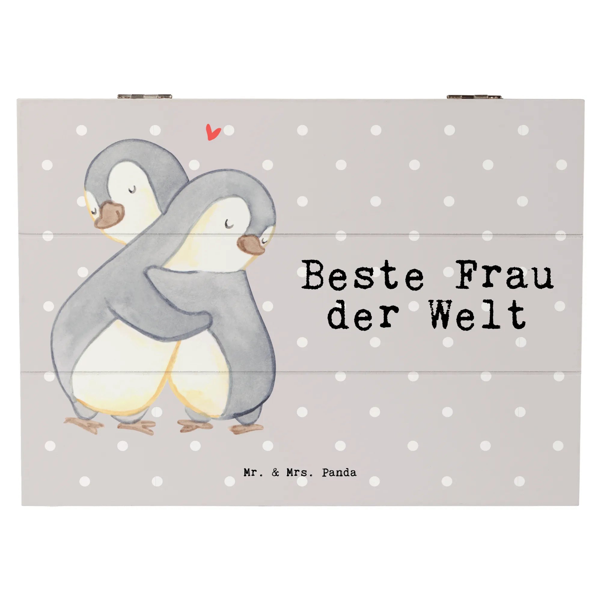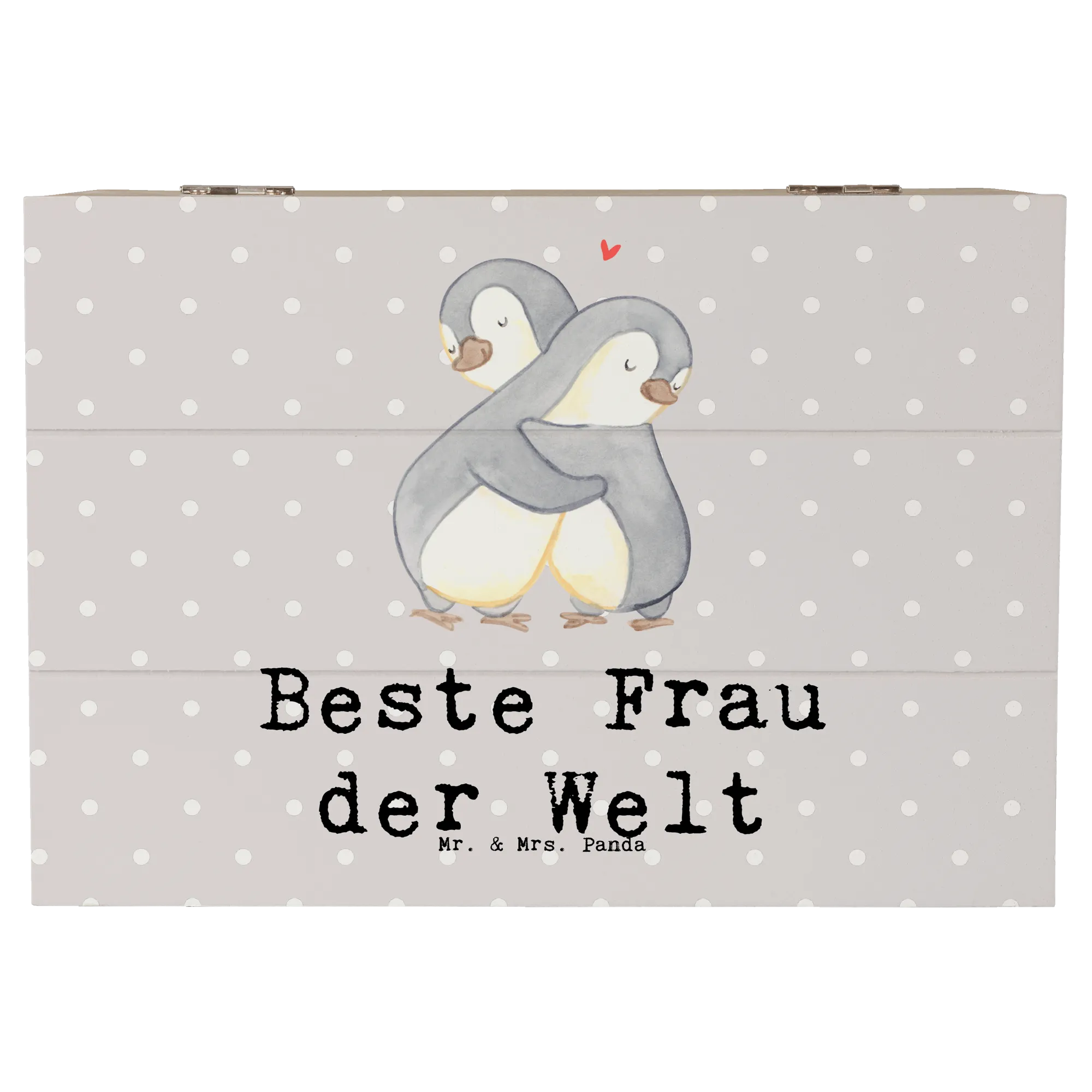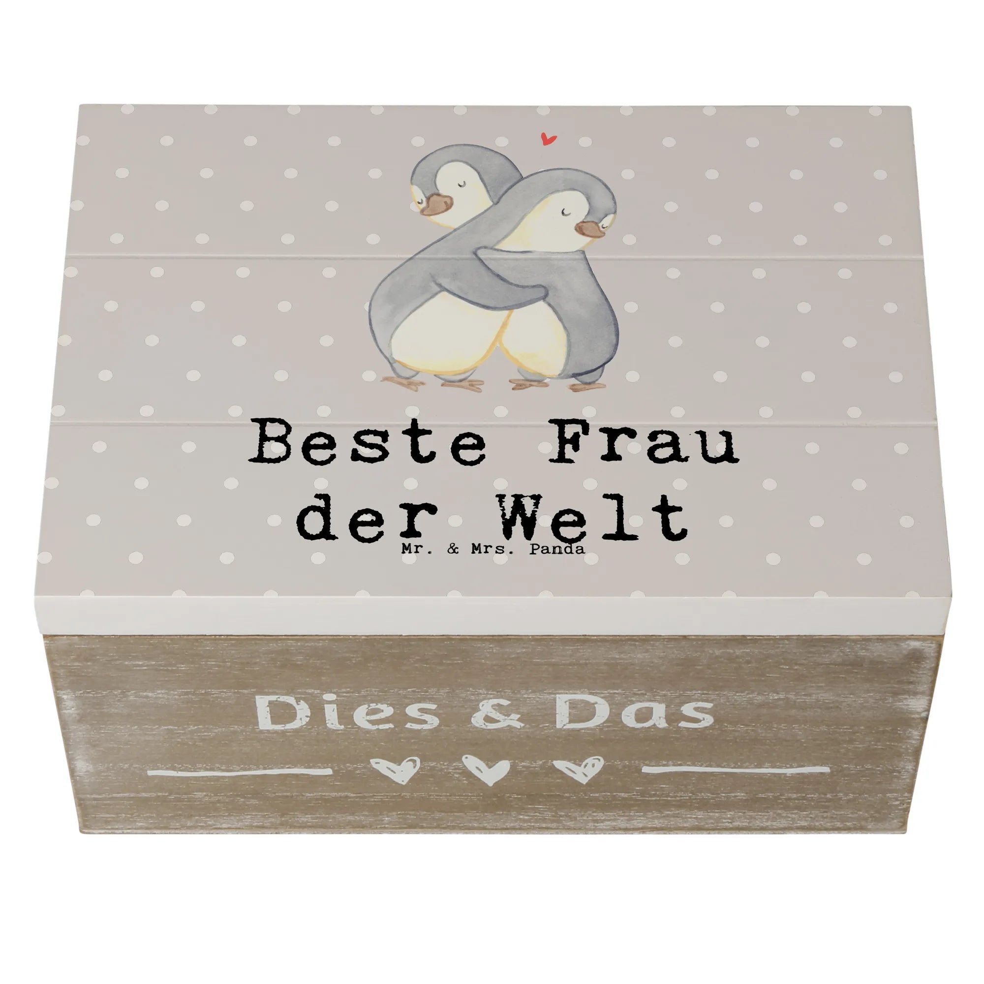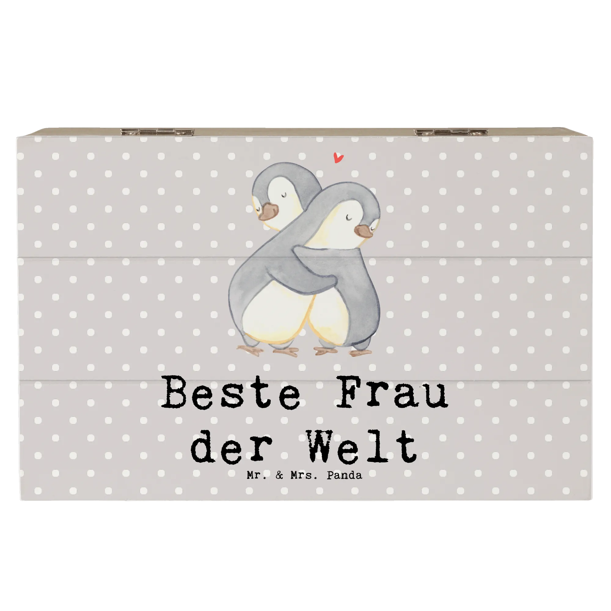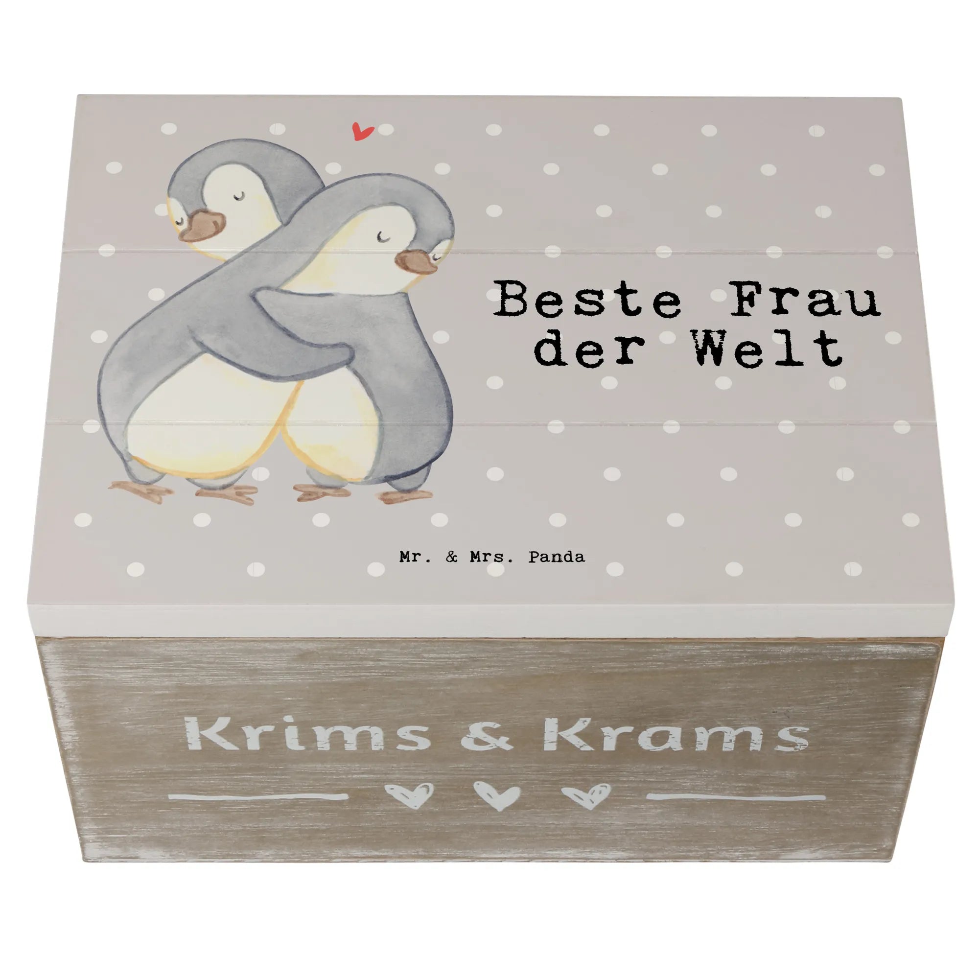 Wooden chest penguin best woman in the world - 22 x 15 cm - White