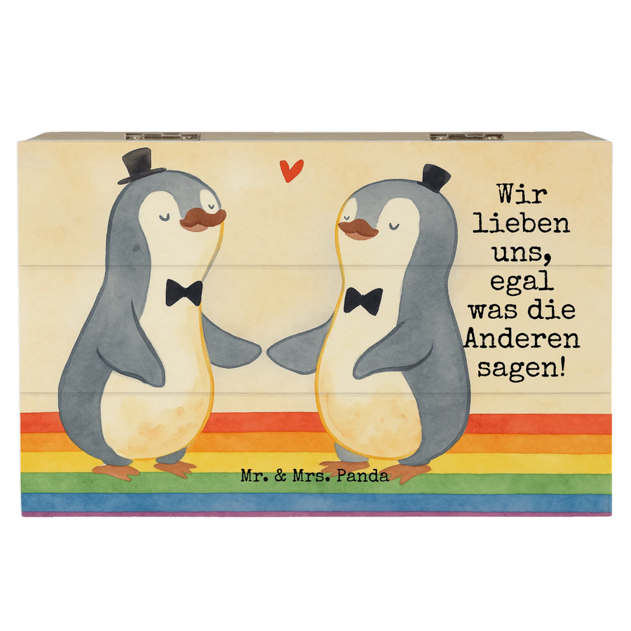 Wooden chest penguins gay pride Design - 19 x 12 cm - with saying