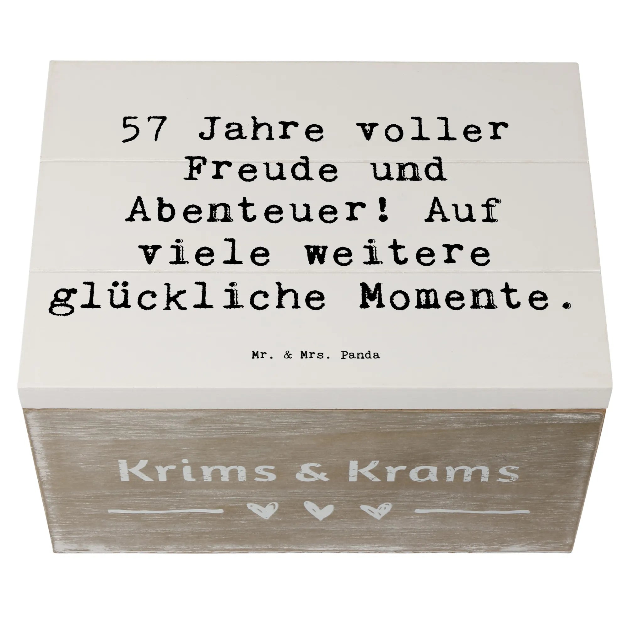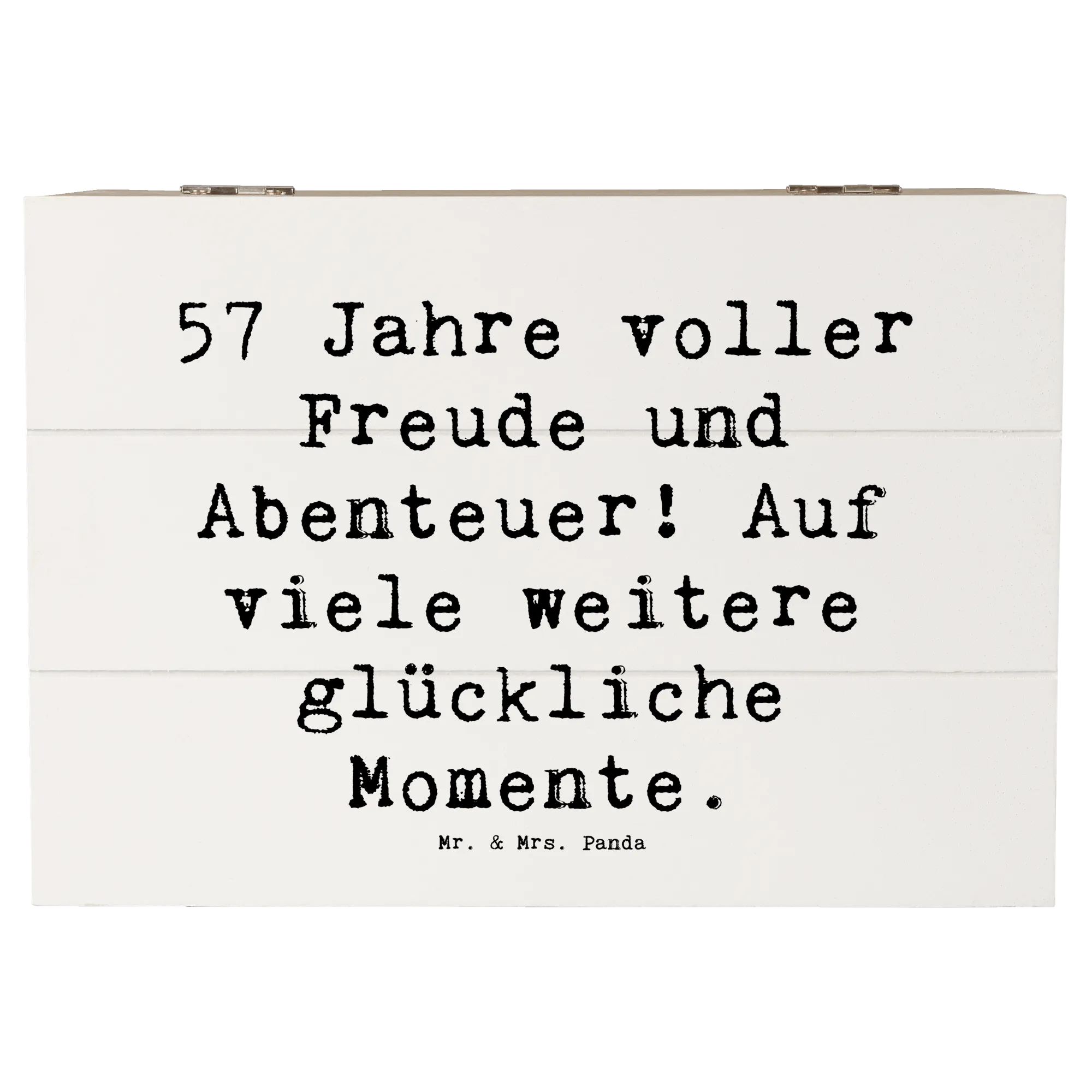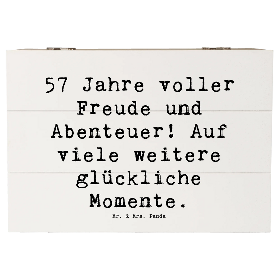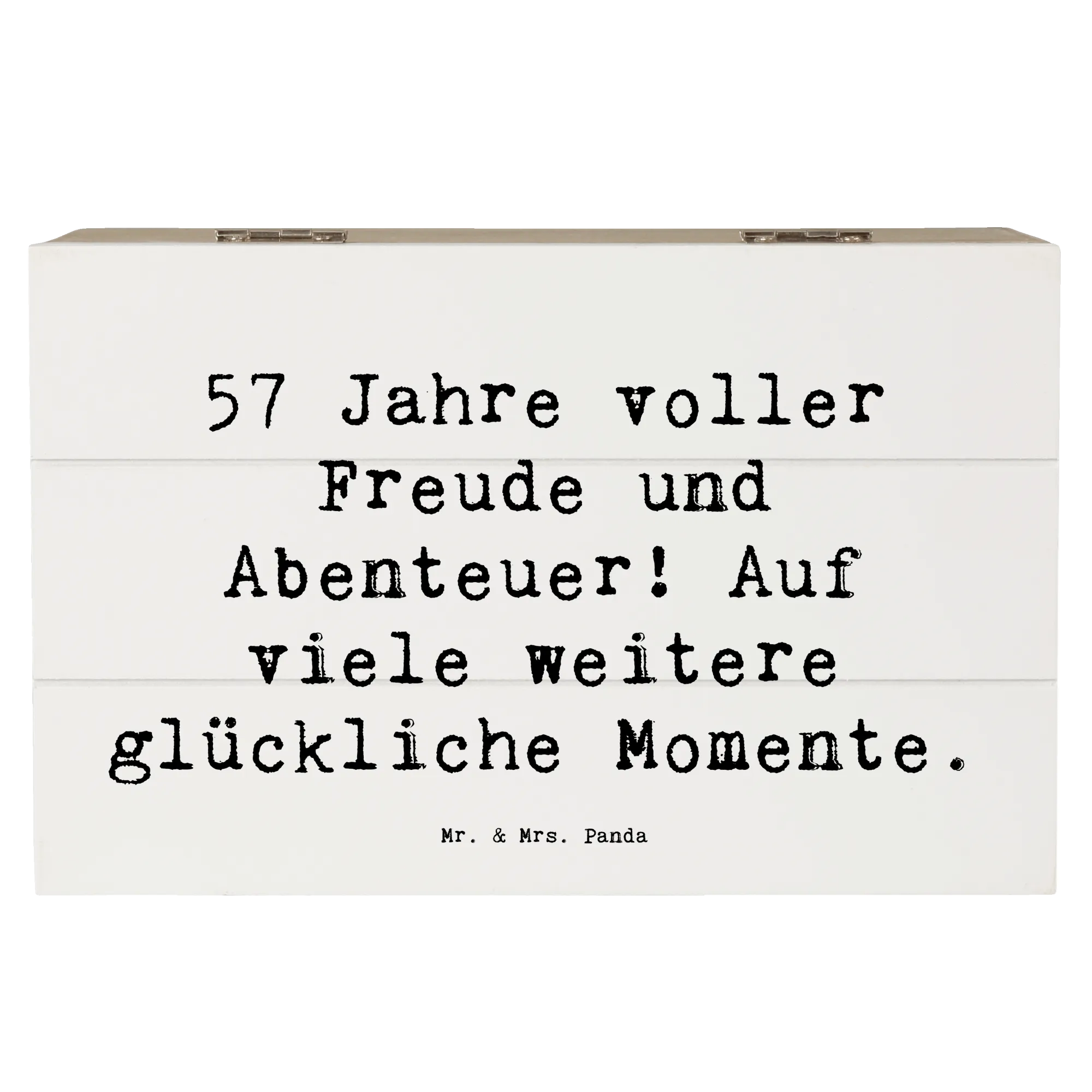 Wooden chest Saying 57 Jahre voller Freude und Abenteuer! Auf viele weitere glückliche Momente. - 22 x 15 cm - White