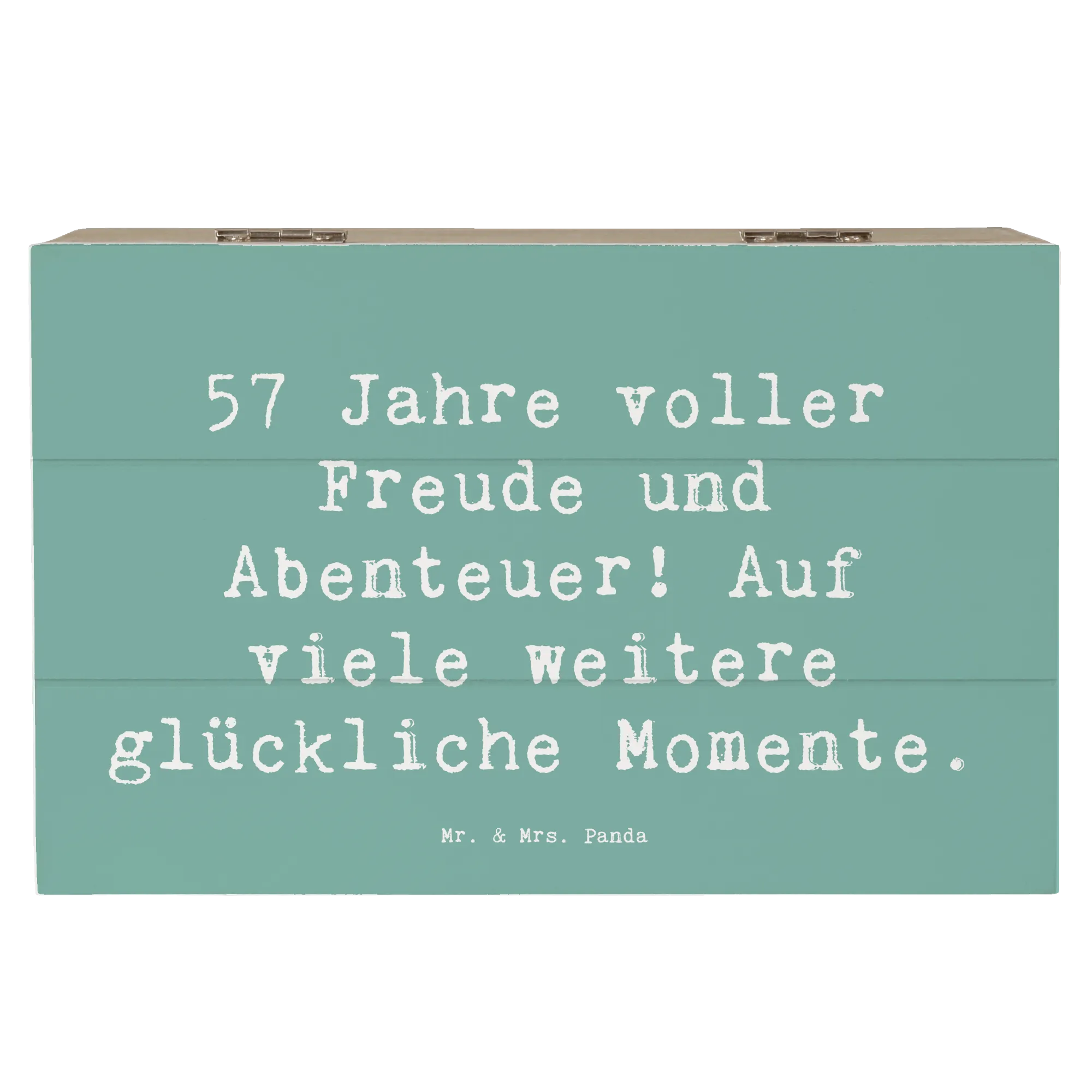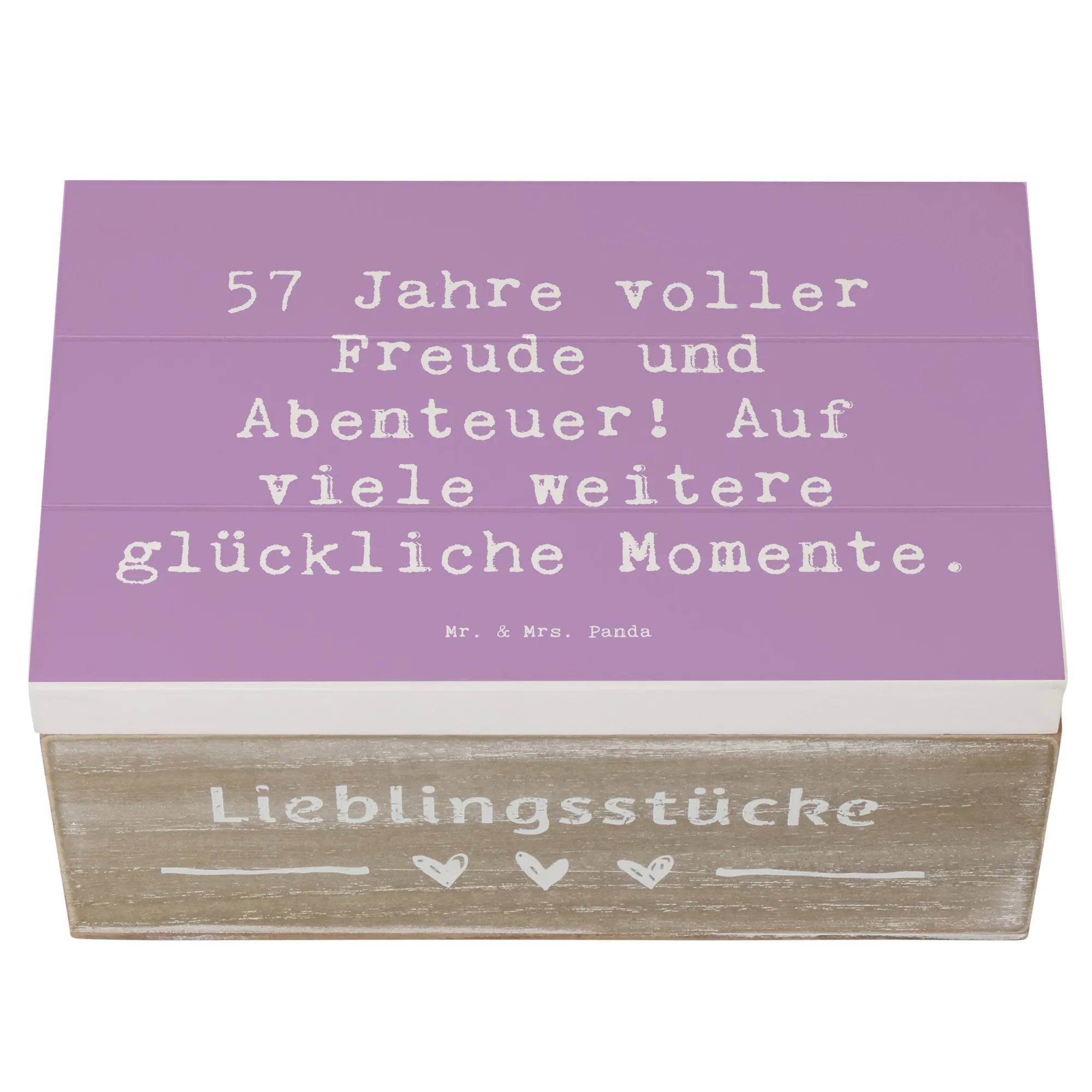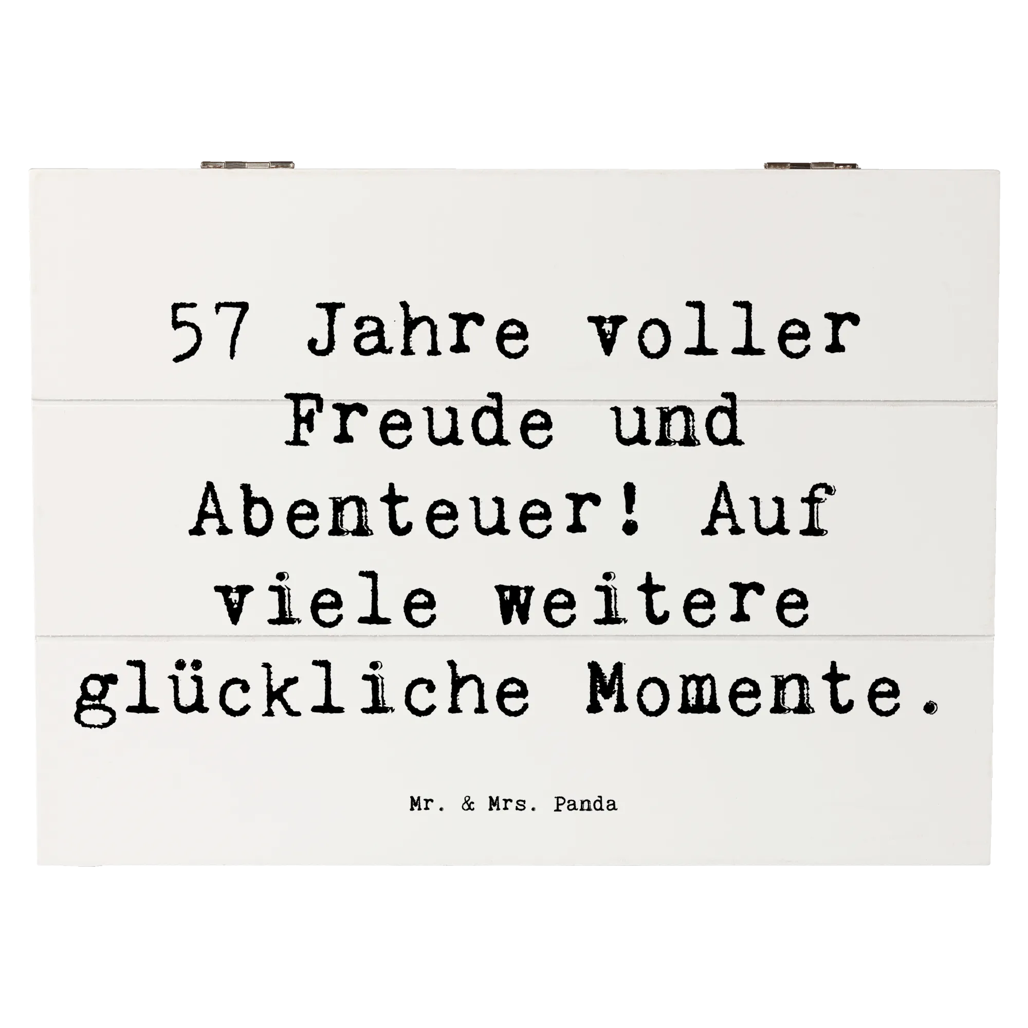 Wooden chest Saying 57 Jahre voller Freude und Abenteuer! Auf viele weitere glückliche Momente. - 22 x 15 cm - White