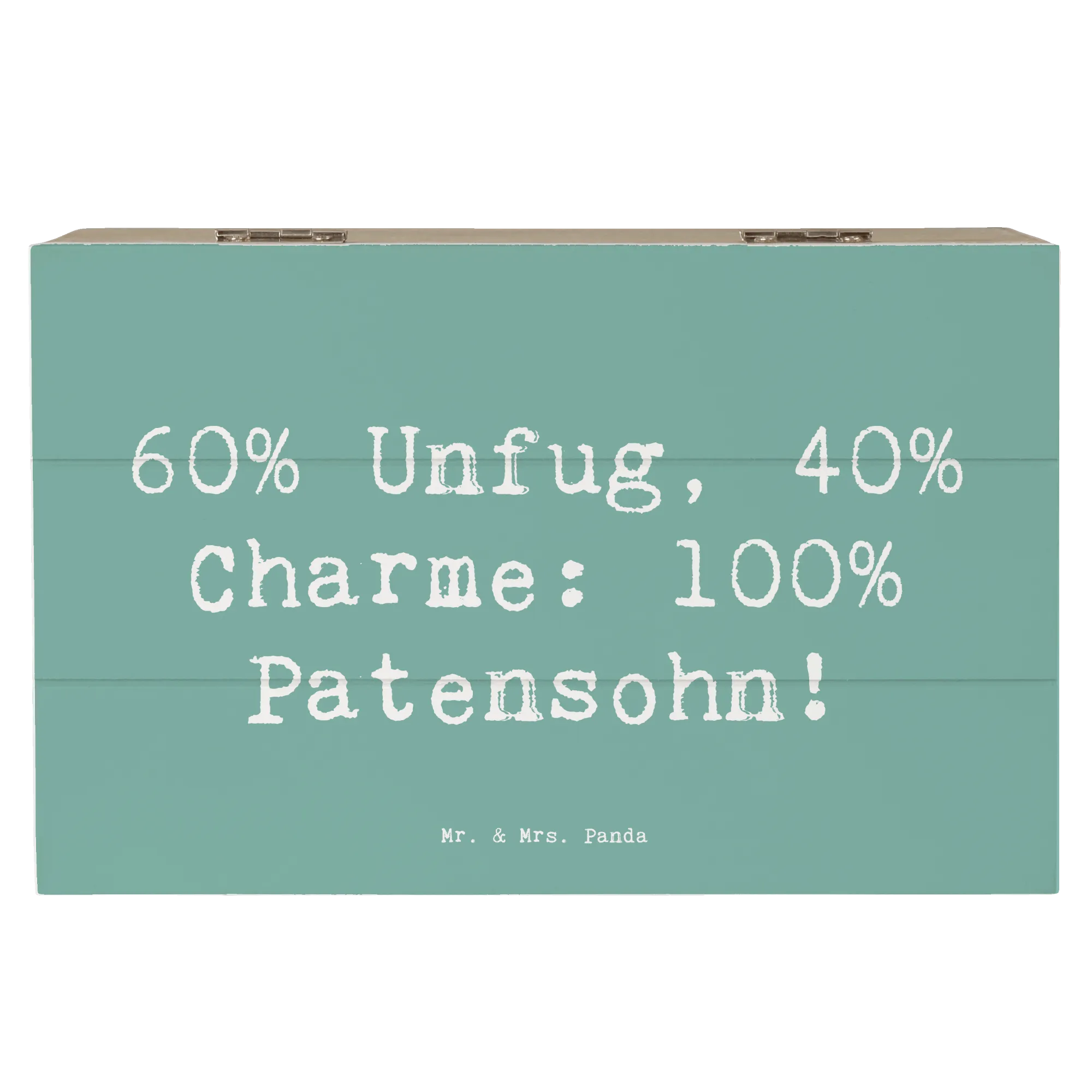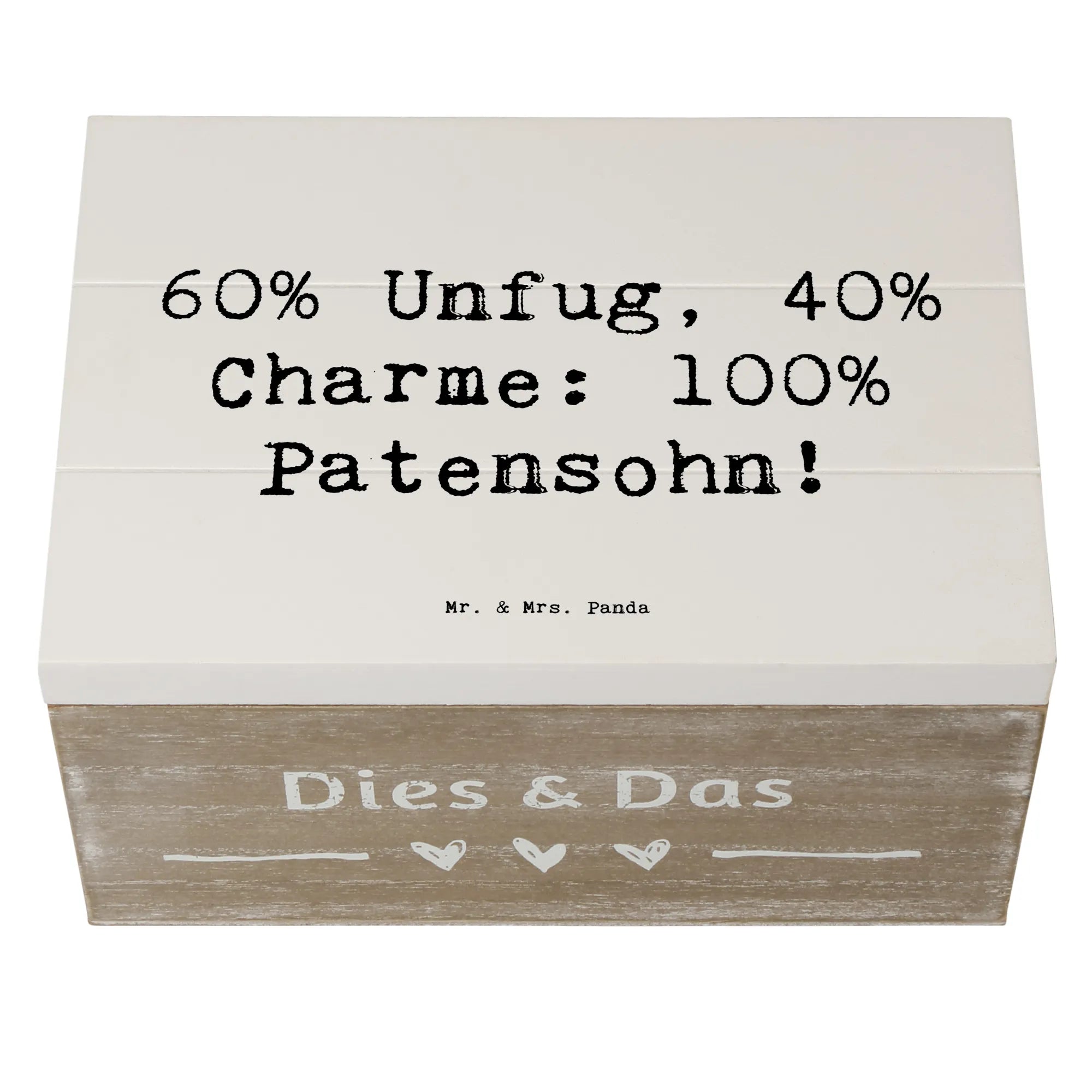 Wooden chest Saying 60% Unfug, 40% Charme: 100% Patensohn! - 22 x 15 cm - White