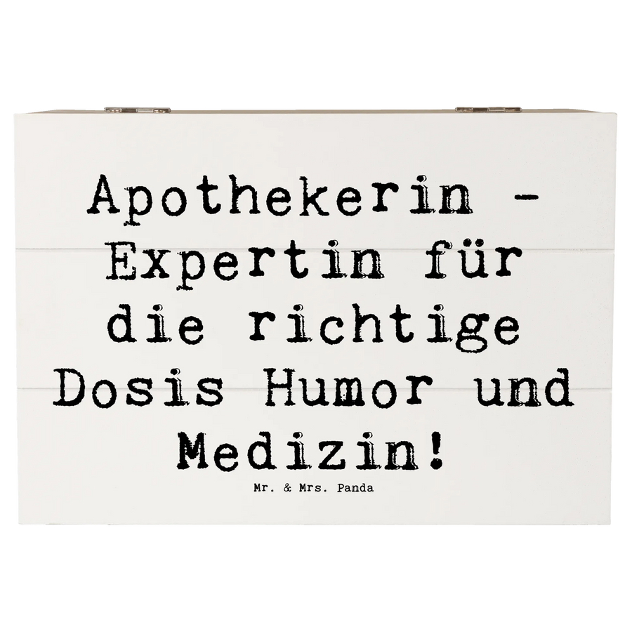Wooden chest Saying Apothekerin - Expertin für die richtige Dosis Humor und Medizin! - 22 x 15 cm - White