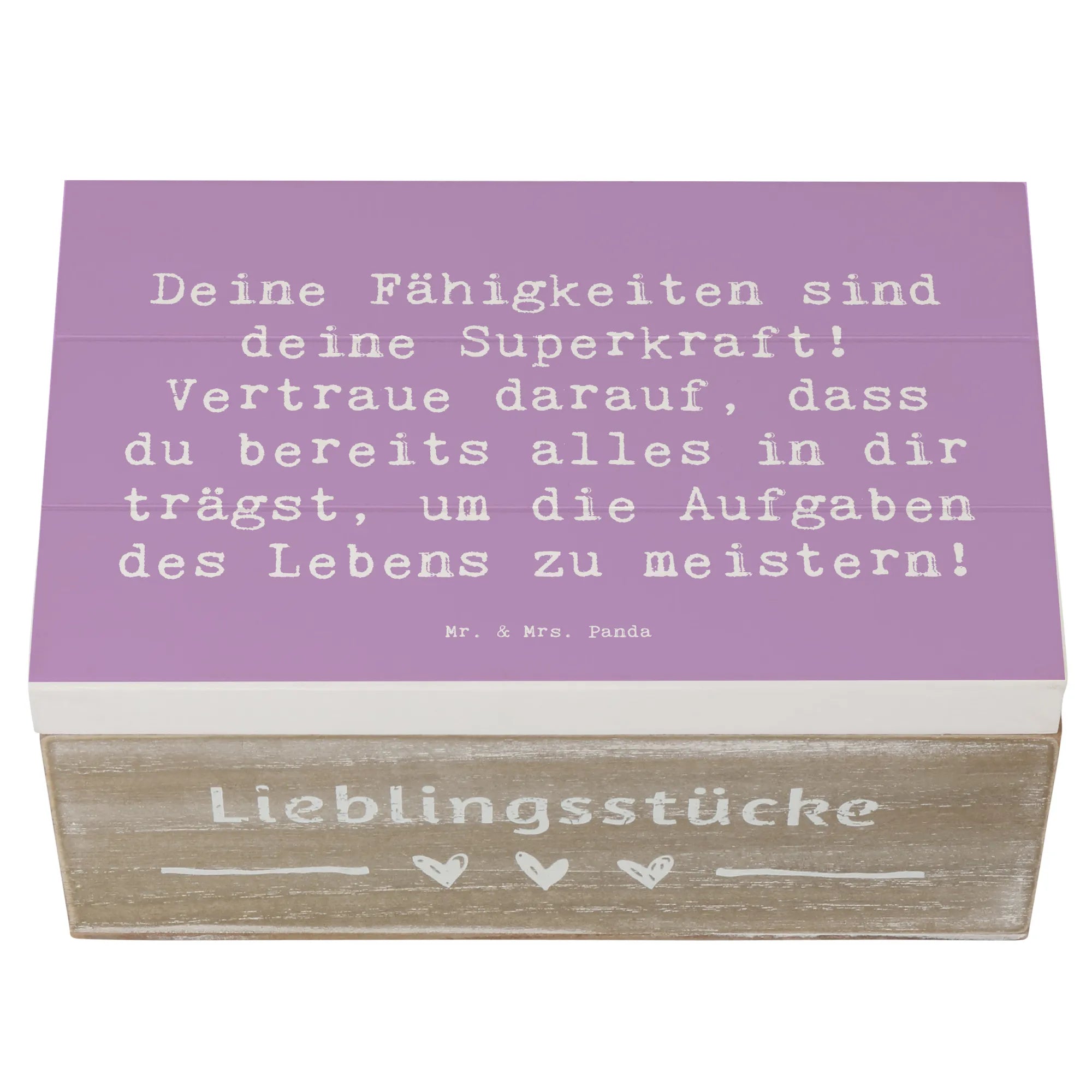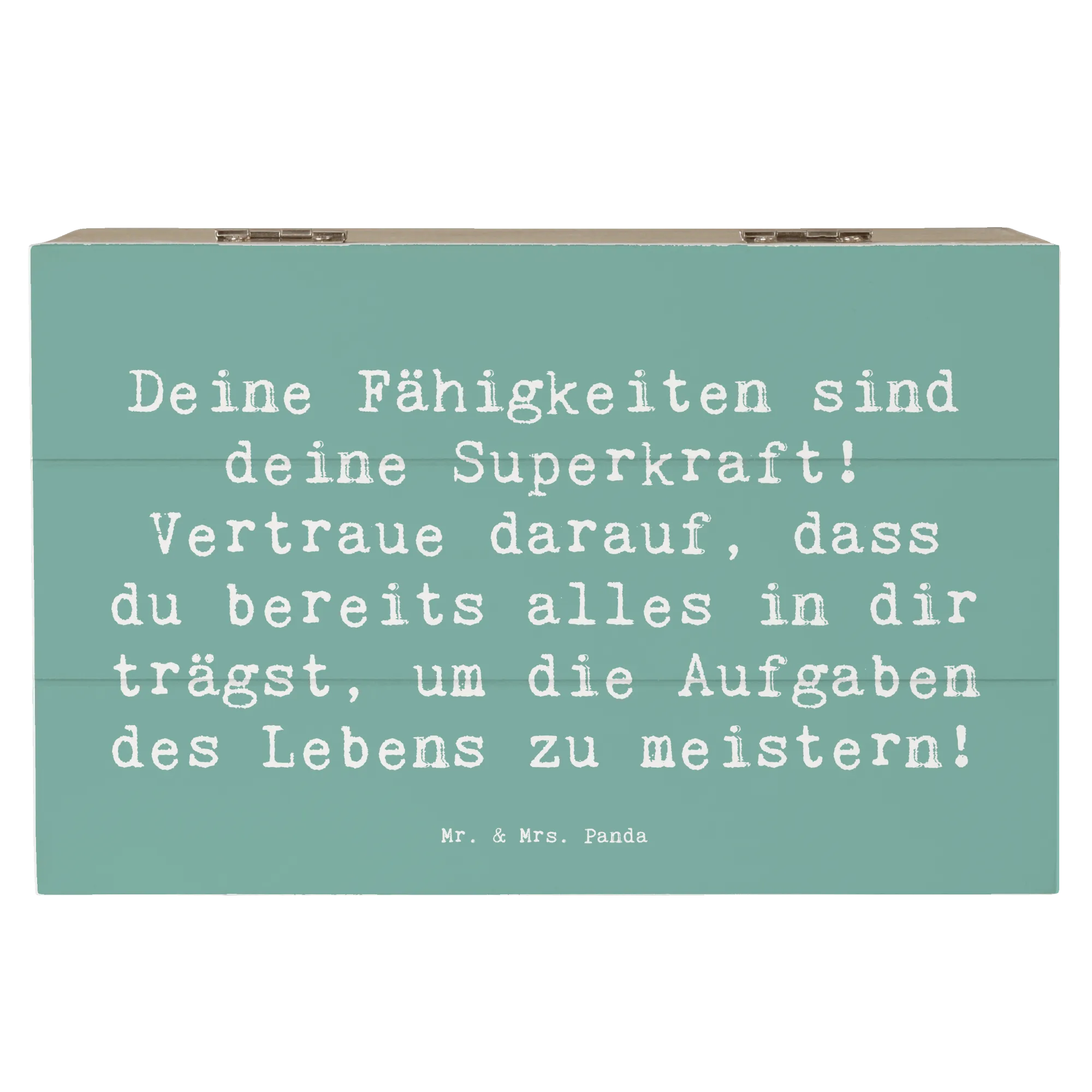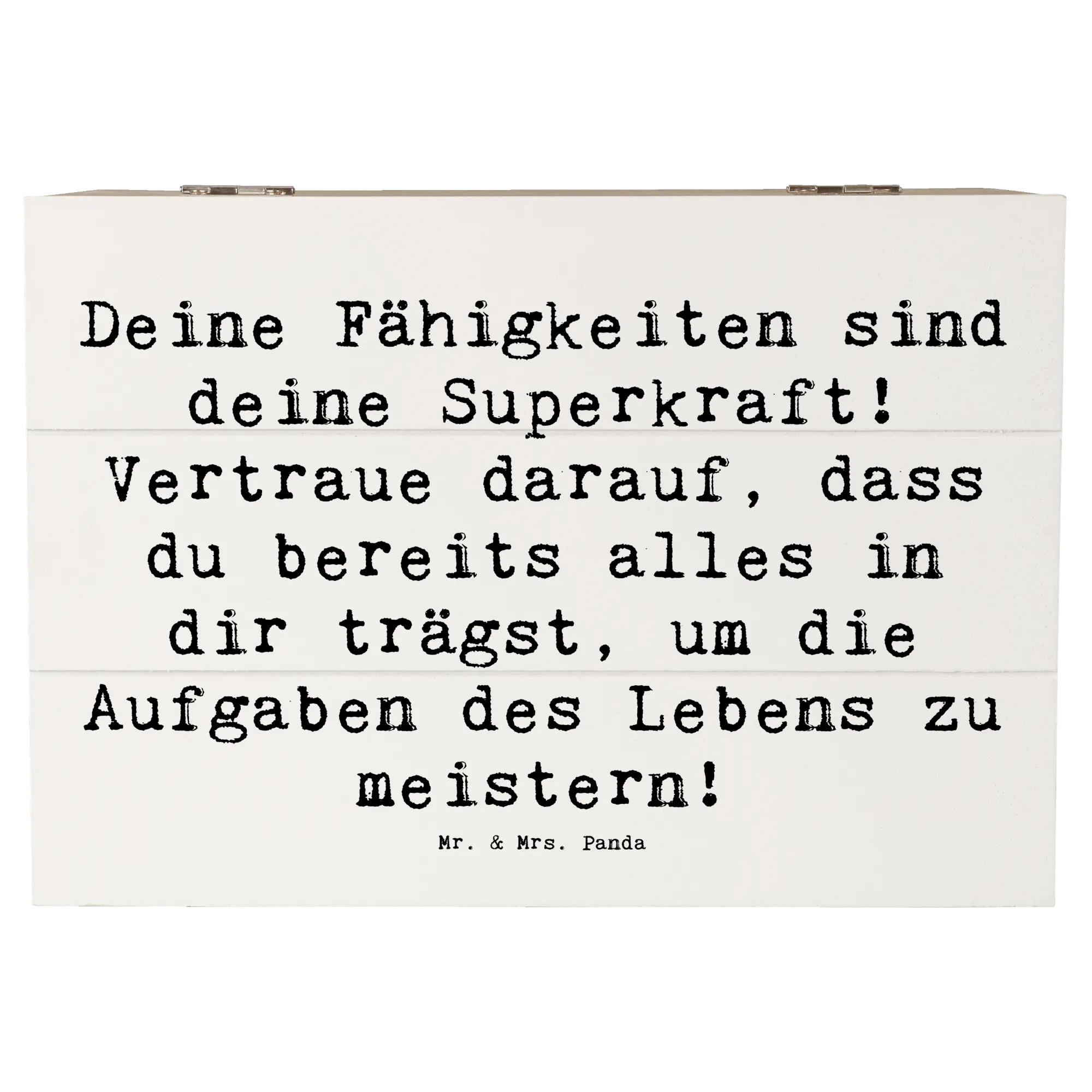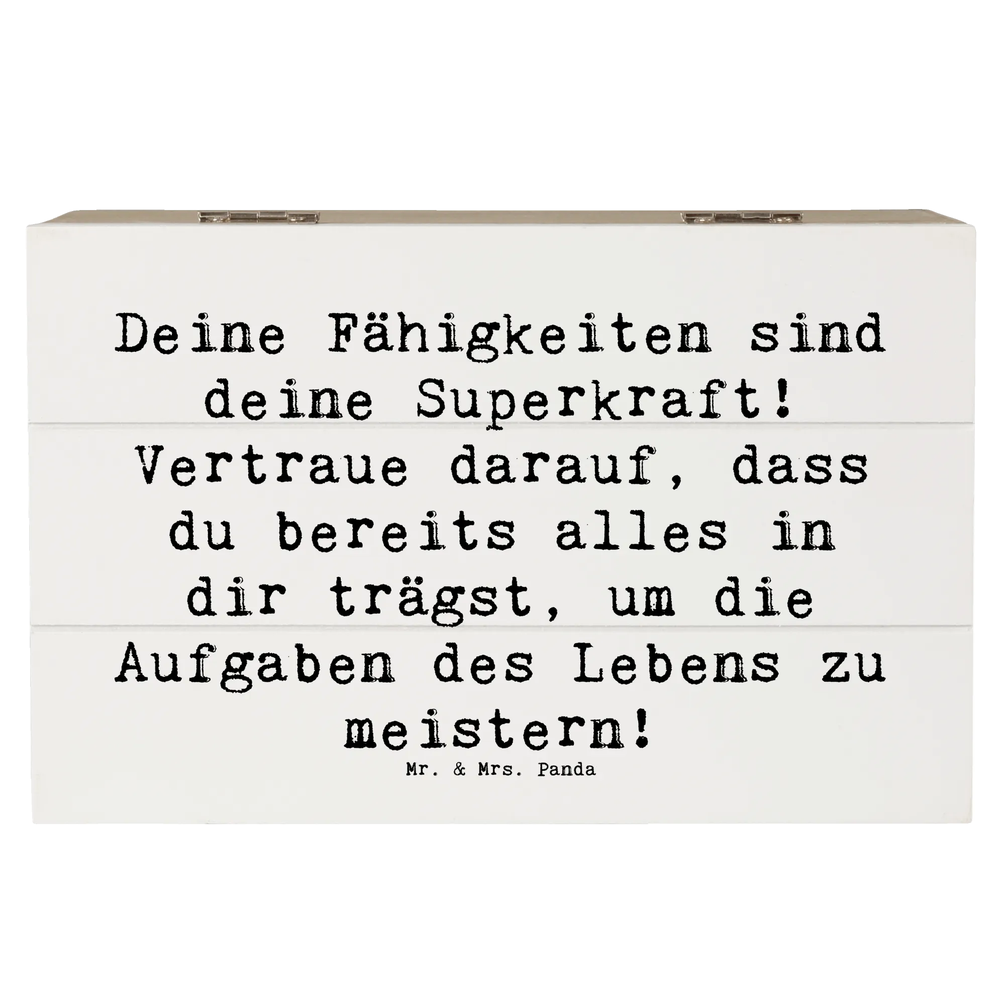 Wooden chest Saying Deine Fähigkeiten sind deine Superkraft! Vertraue darauf, dass du bereits alles in dir trägst, um die Aufgaben des Lebens zu meistern! - 22 x 15 cm - White