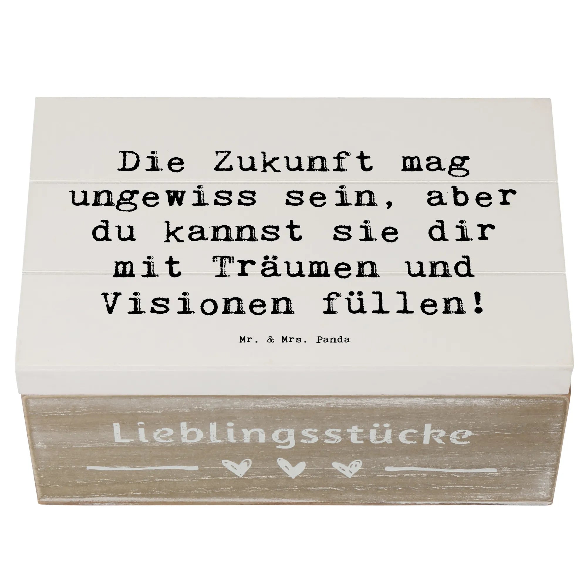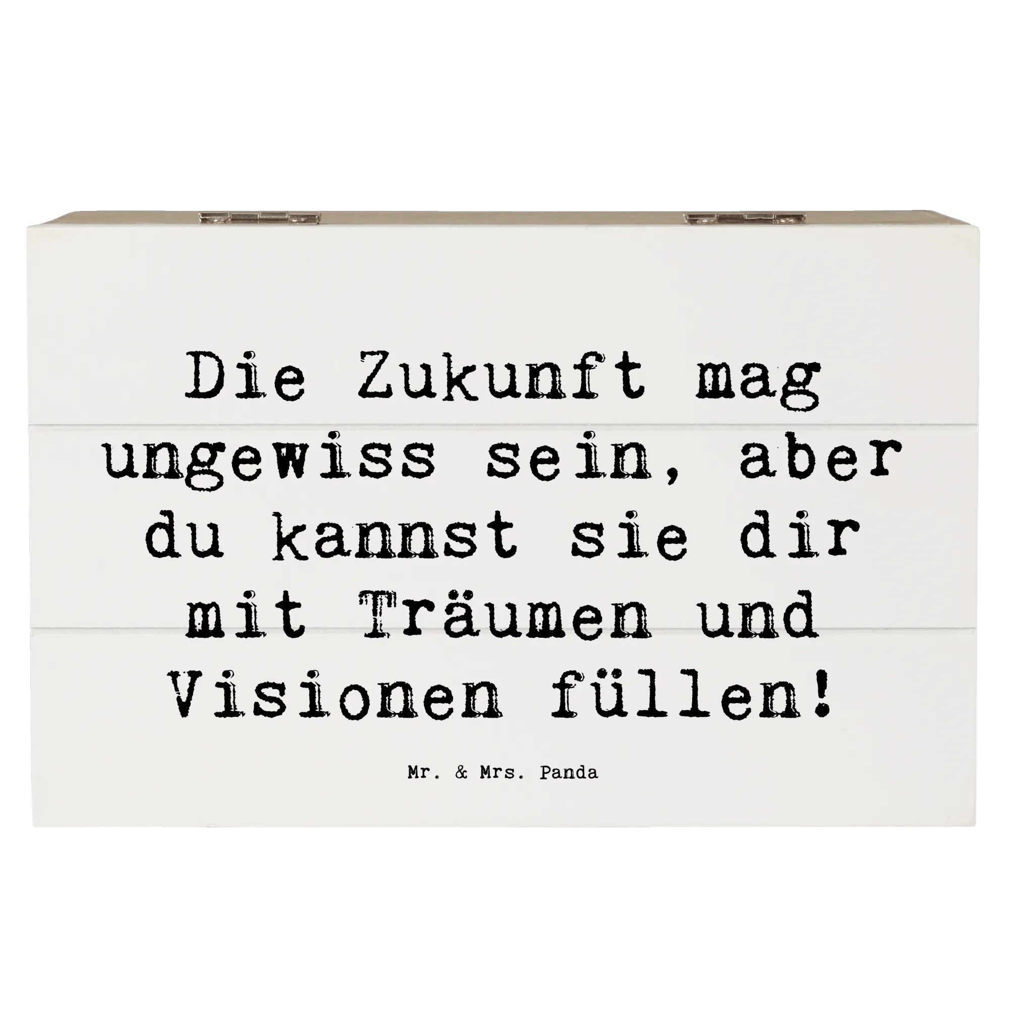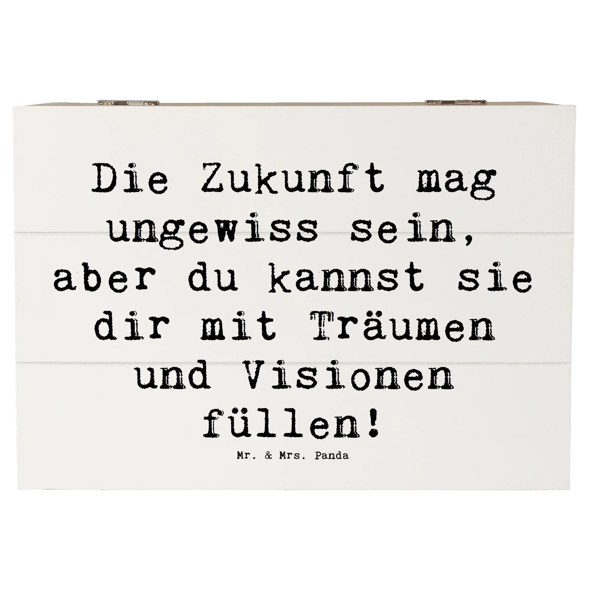 Wooden chest Saying Die Zukunft mag ungewiss sein, aber du kannst sie dir mit Träumen und Visionen füllen! - 22 x 15 cm - White