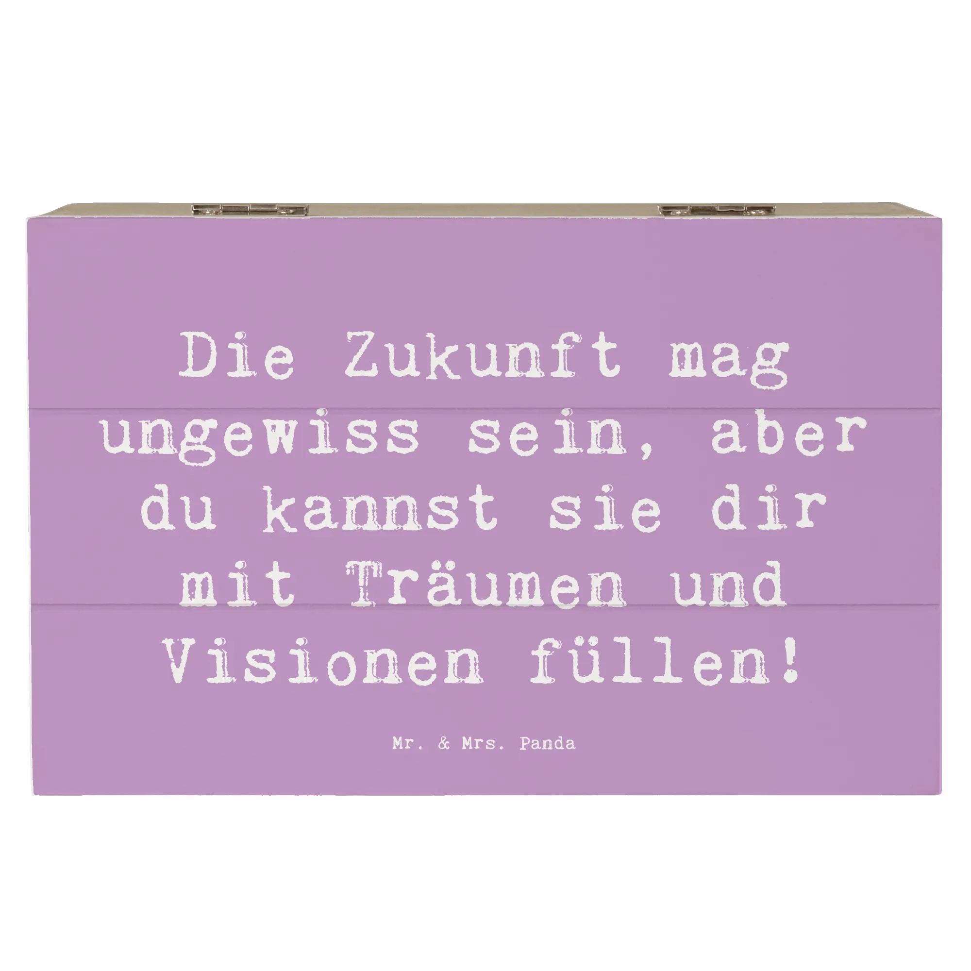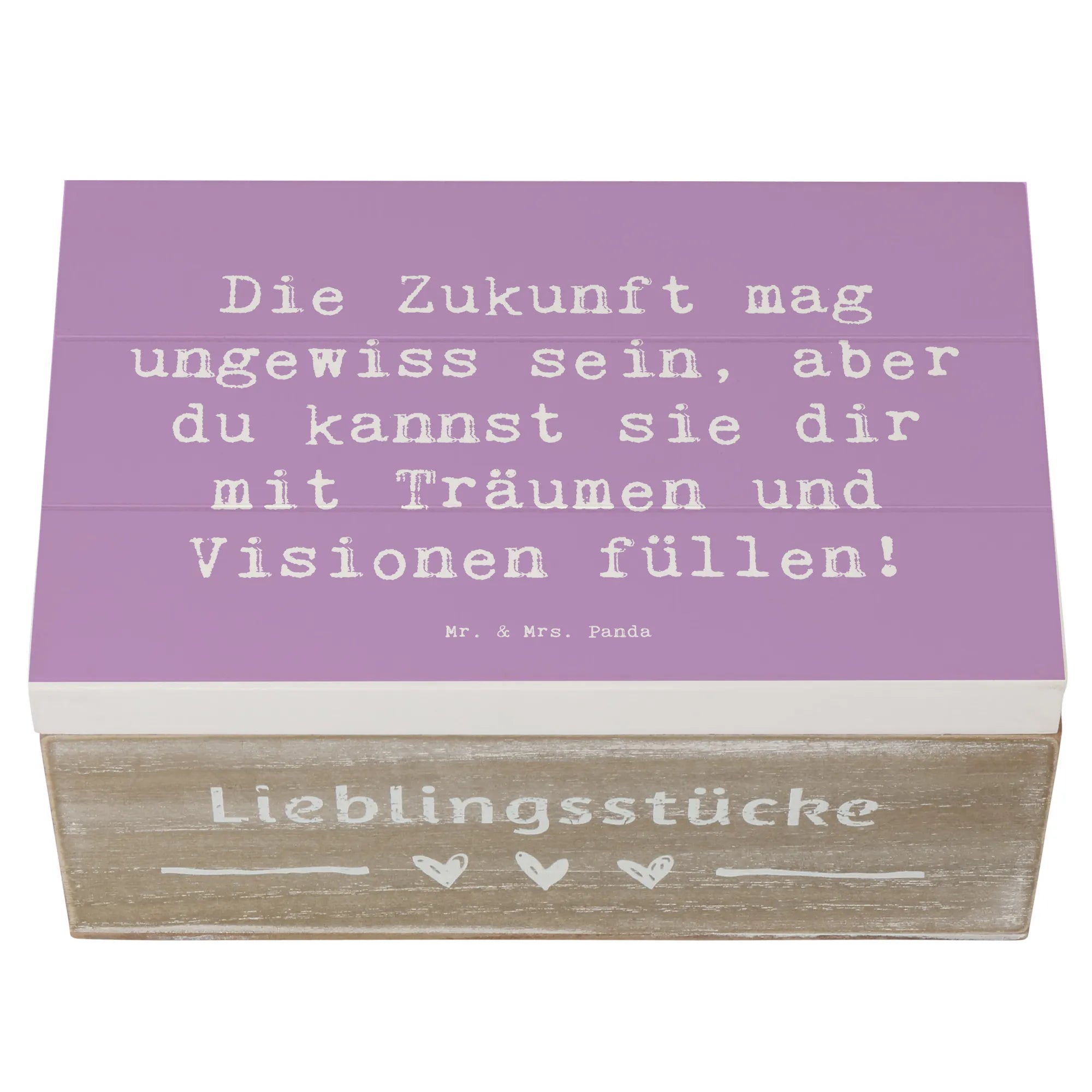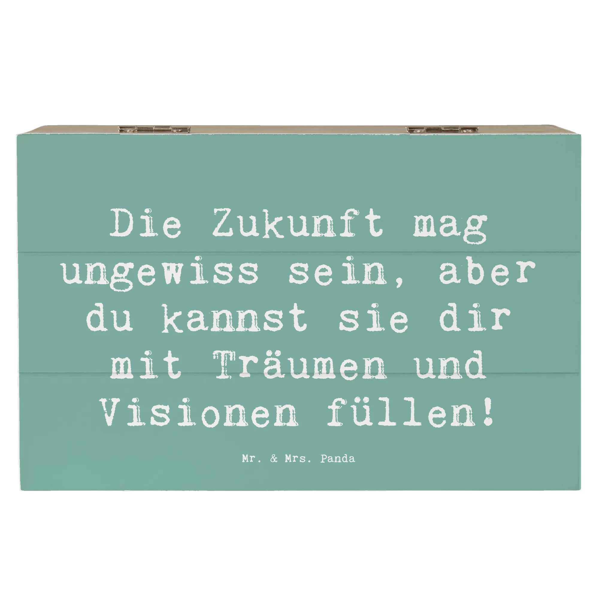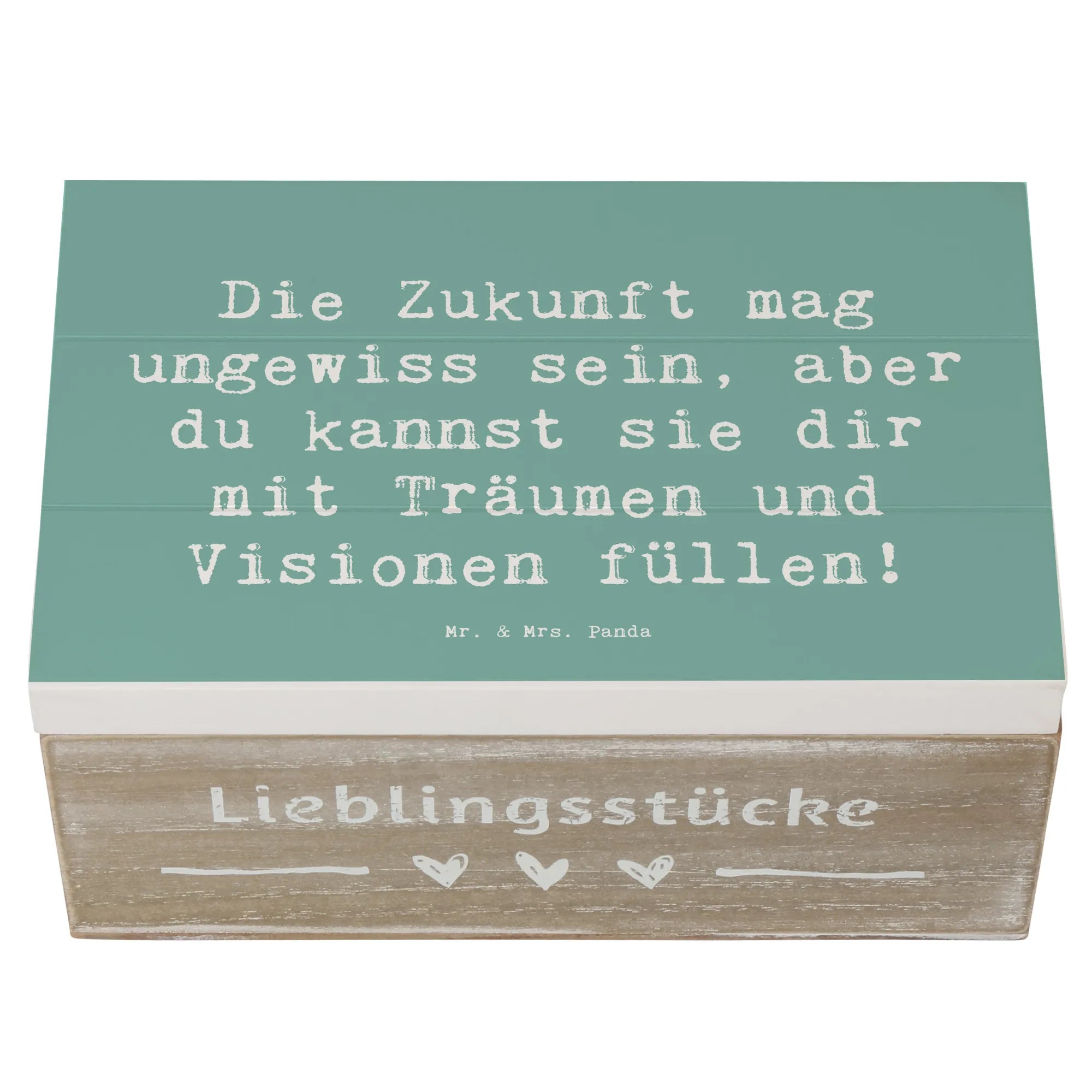 Wooden chest Saying Die Zukunft mag ungewiss sein, aber du kannst sie dir mit Träumen und Visionen füllen! - 22 x 15 cm - White