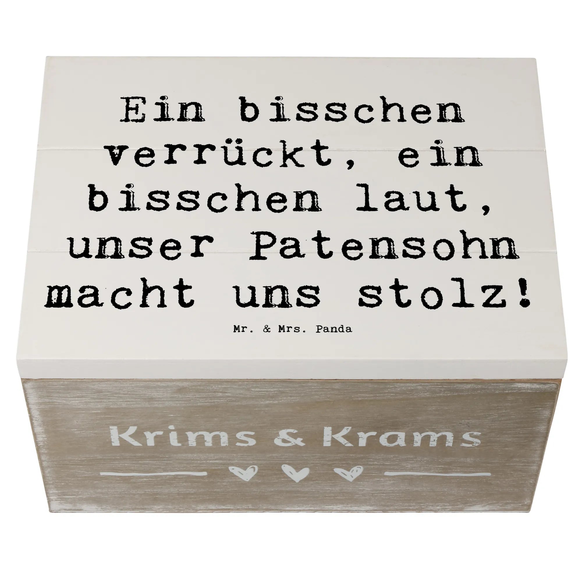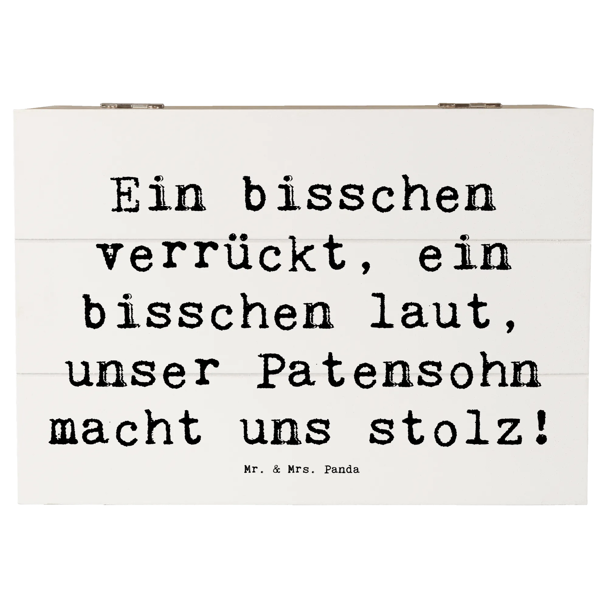 Wooden chest Saying Ein bisschen verrückt, ein bisschen laut, unser Patensohn macht uns stolz! - 22 x 15 cm - White