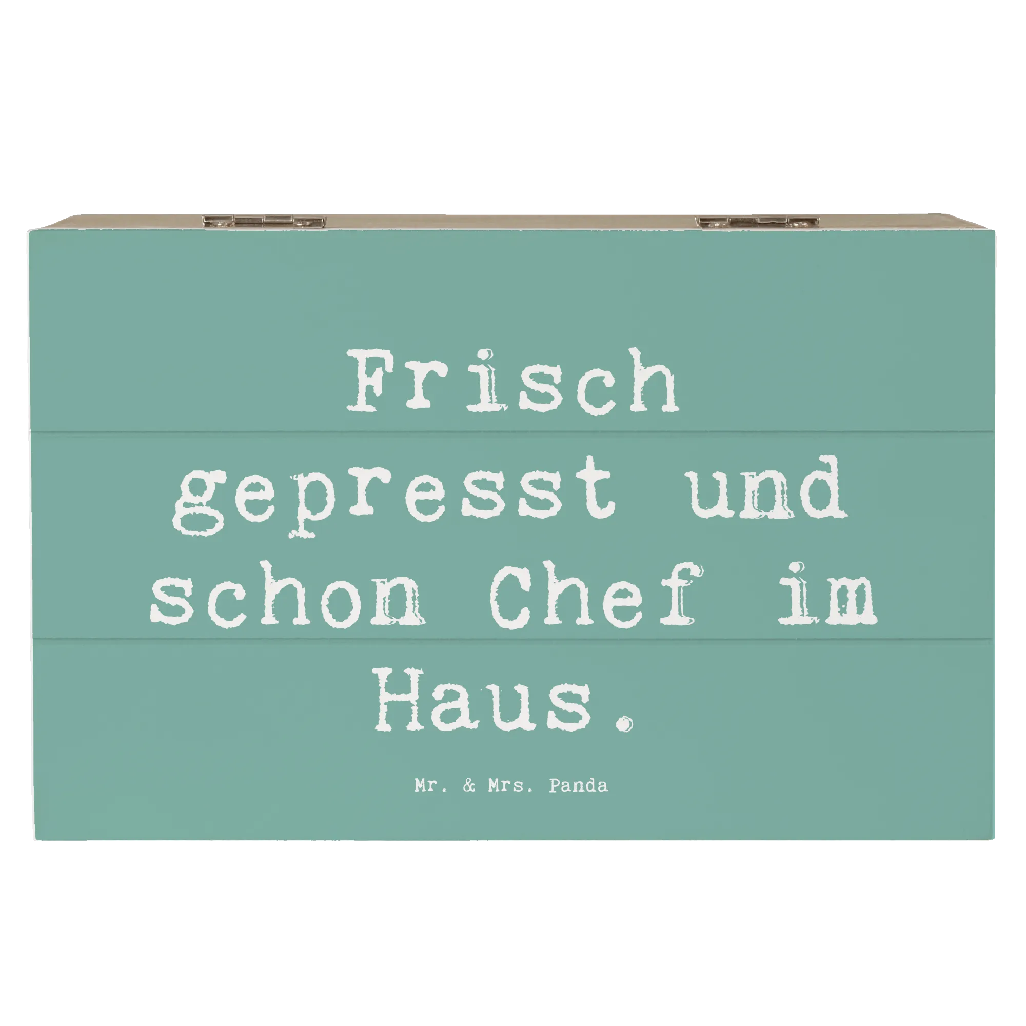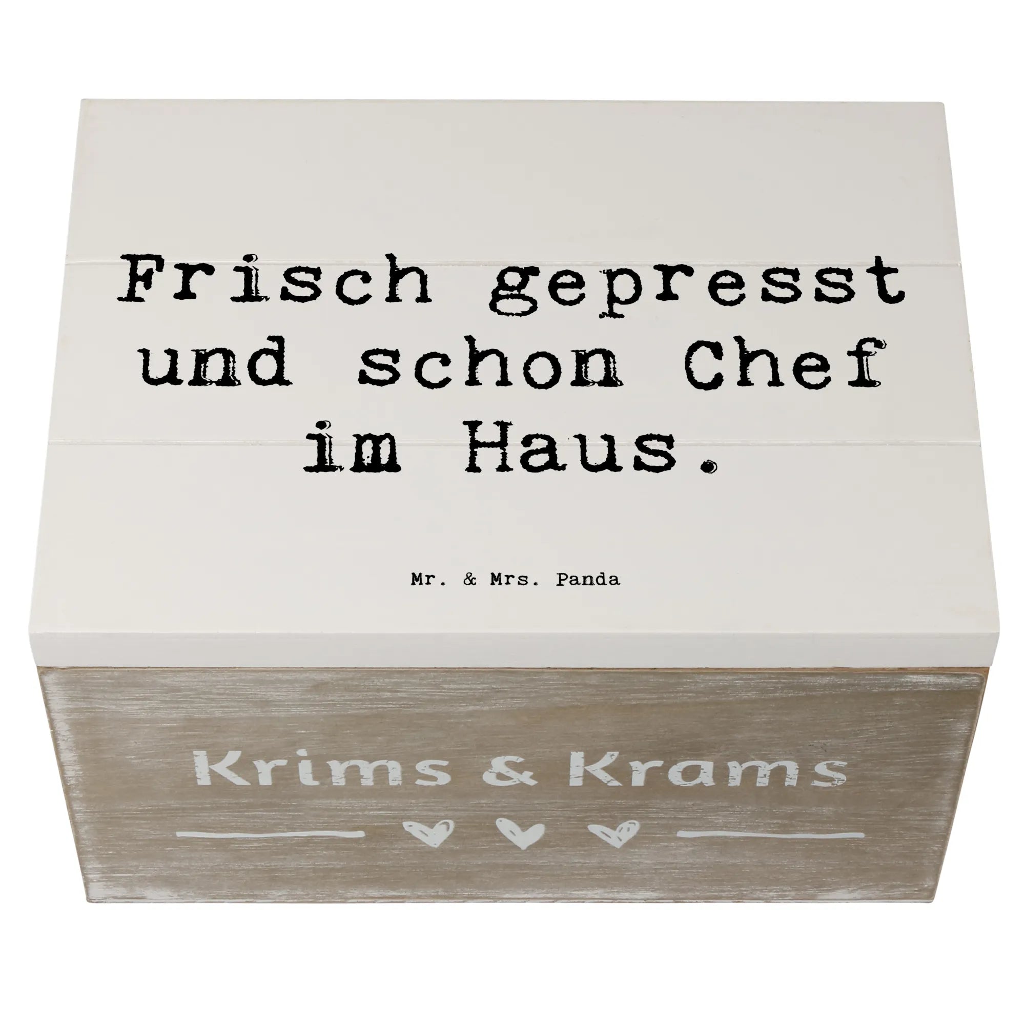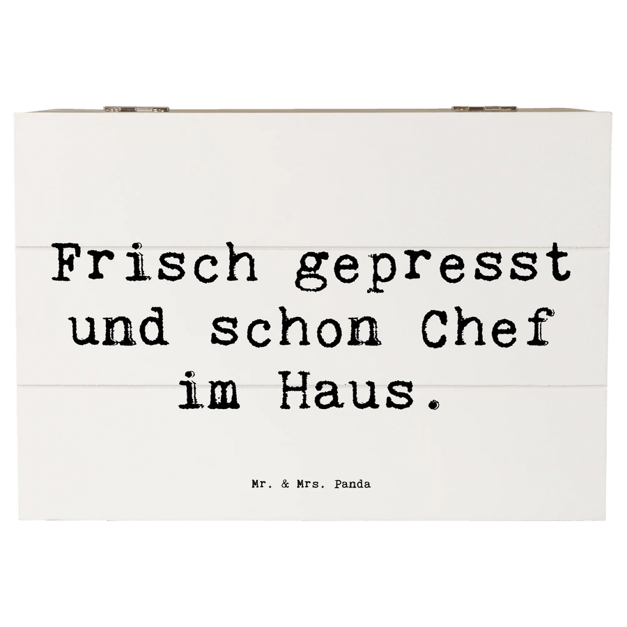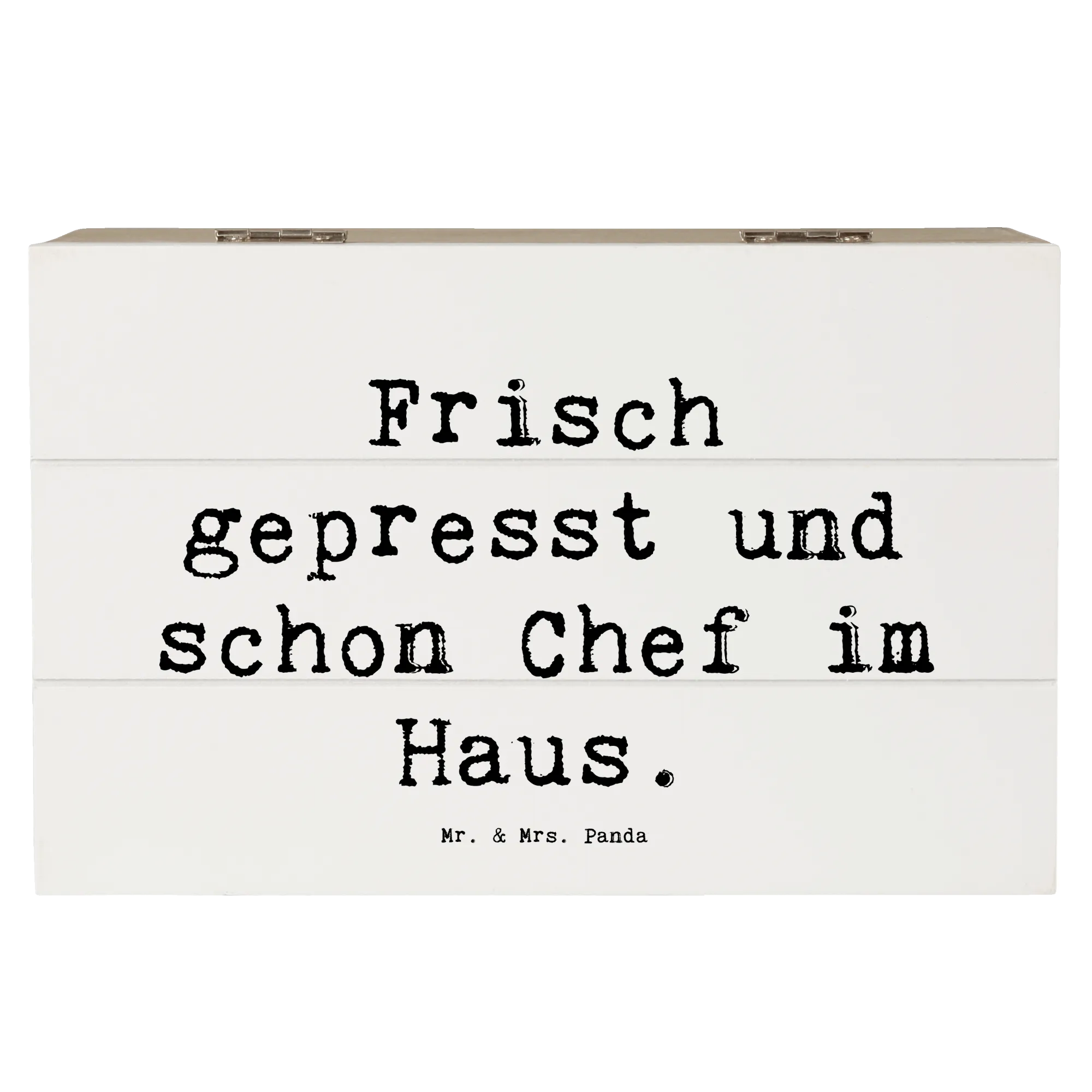 Wooden chest Saying Frisch gepresst und schon Chef im Haus. - 22 x 15 cm - White