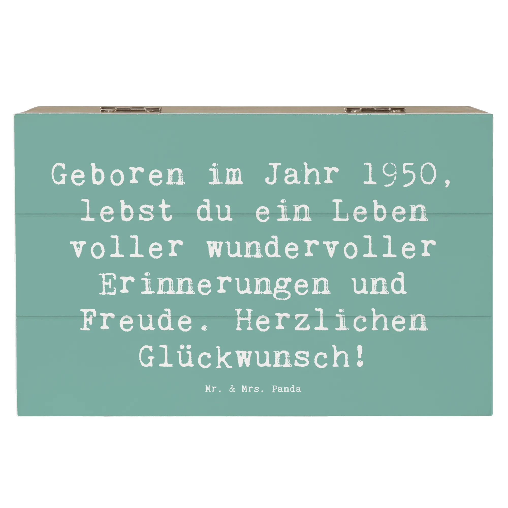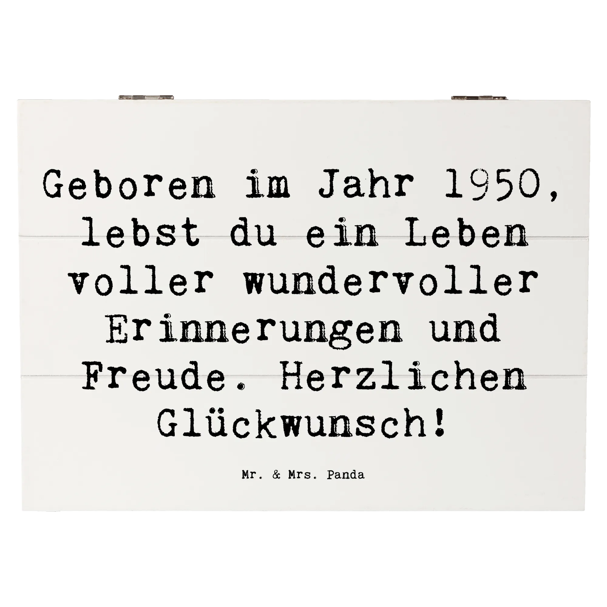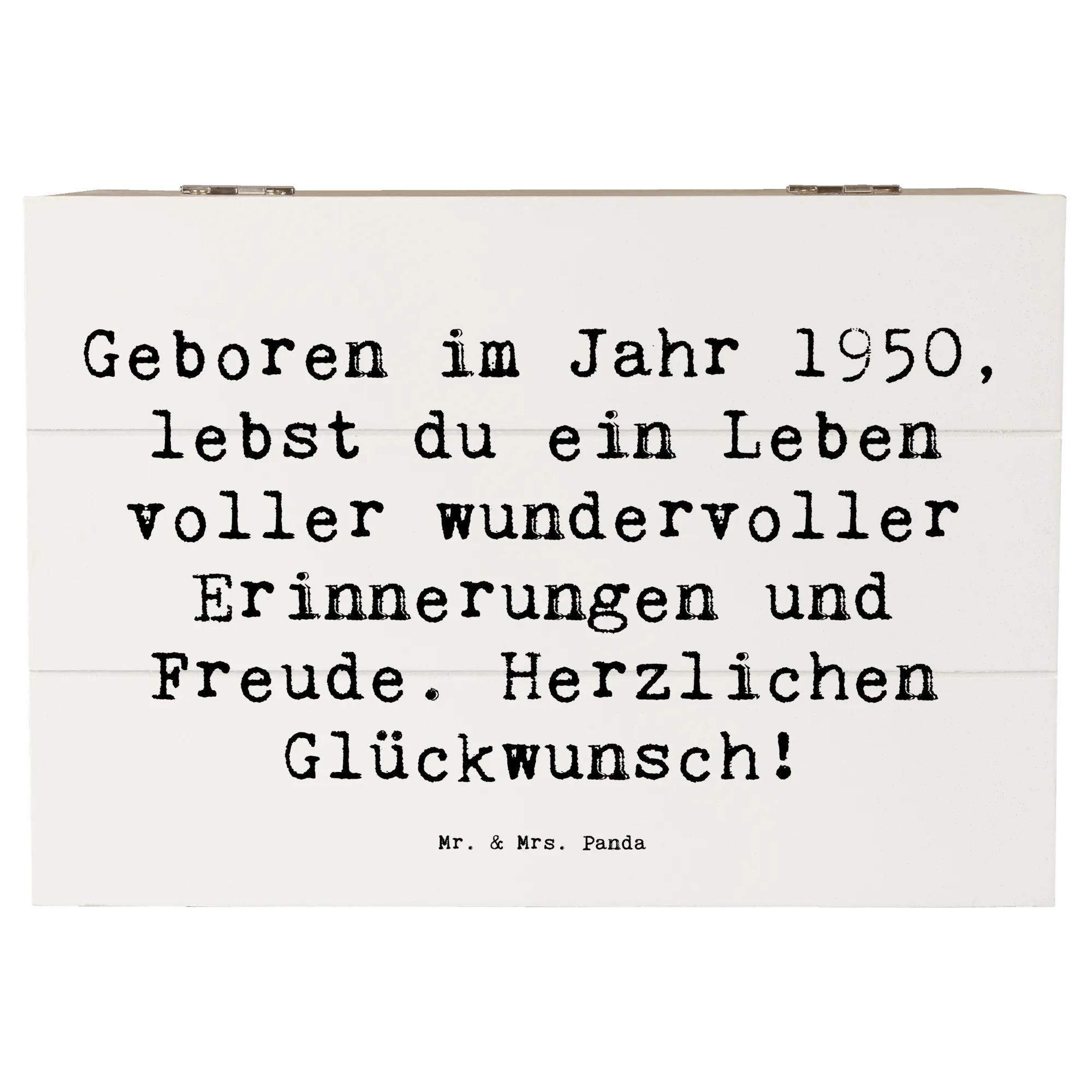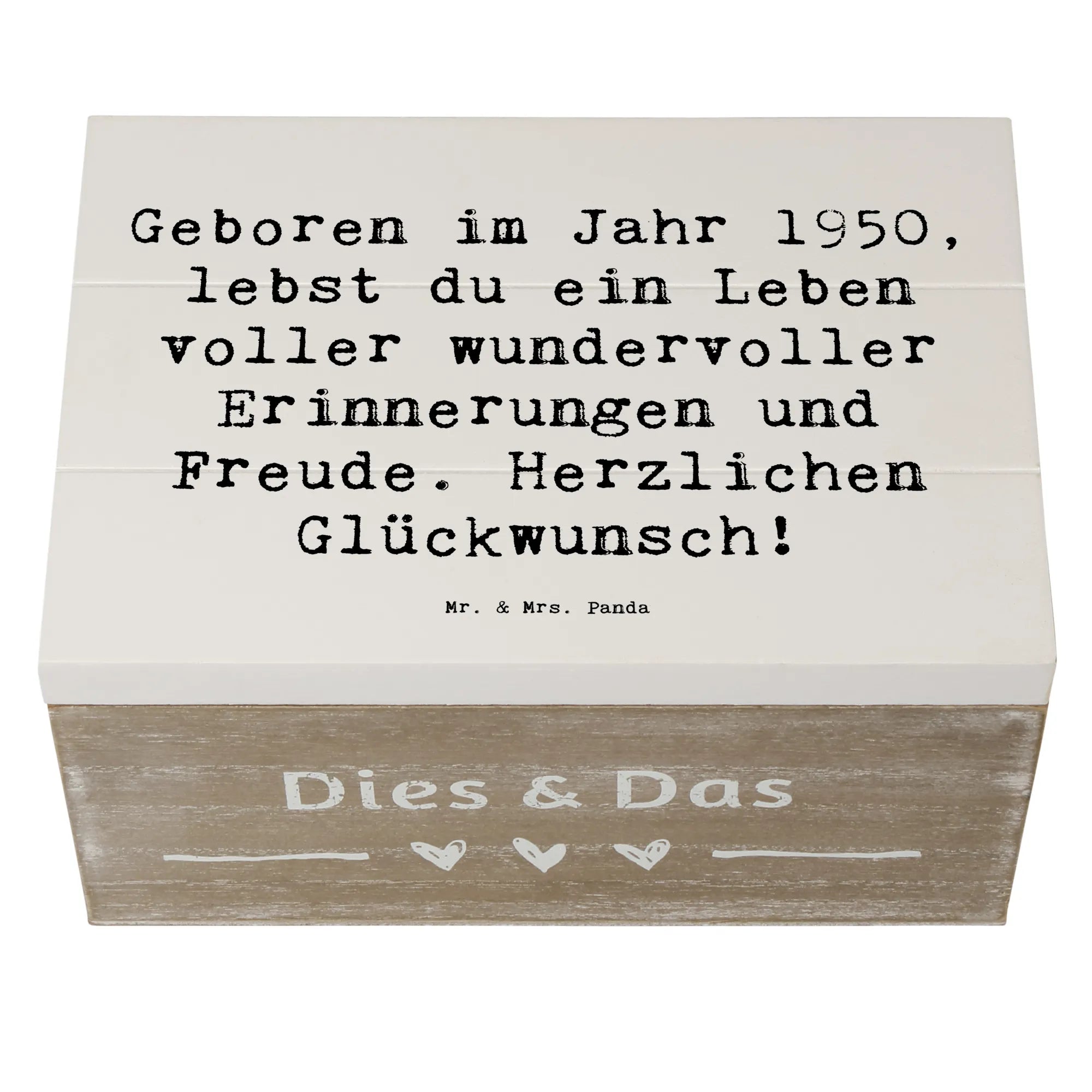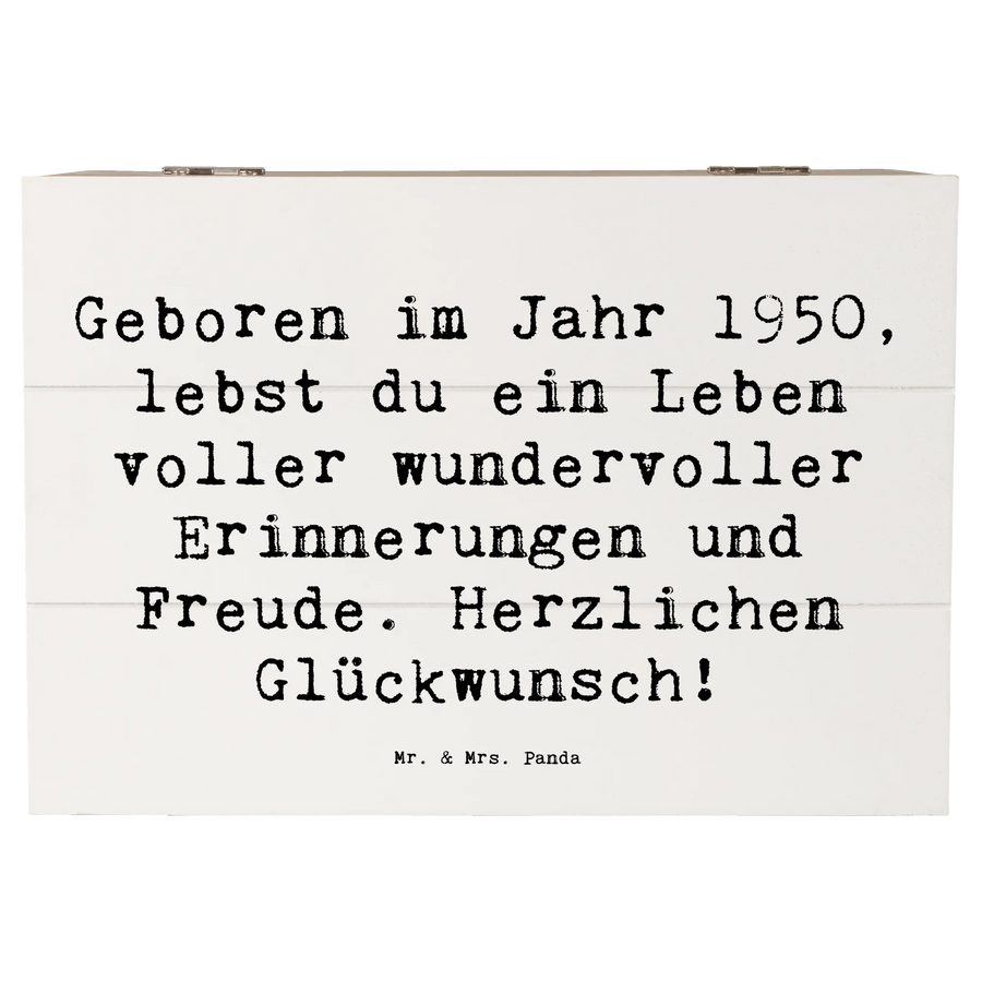 Wooden chest Saying Geboren im Jahr 1950, lebst du ein Leben voller wundervoller Erinnerungen und Freude. Herzlichen Glückwunsch! - 22 x 15 cm - White