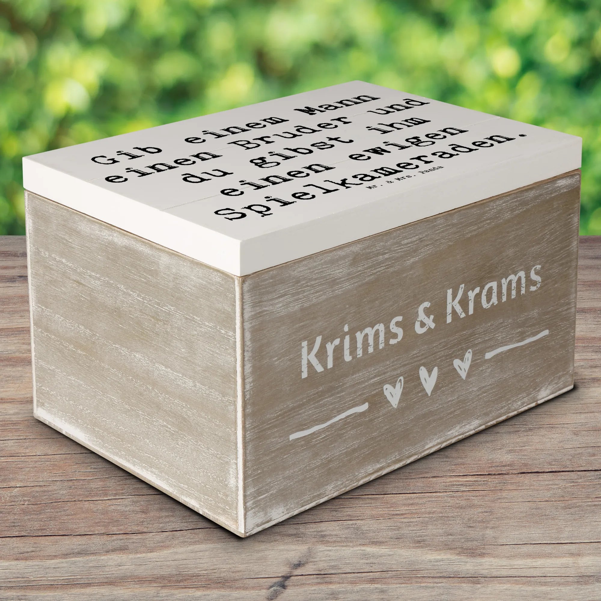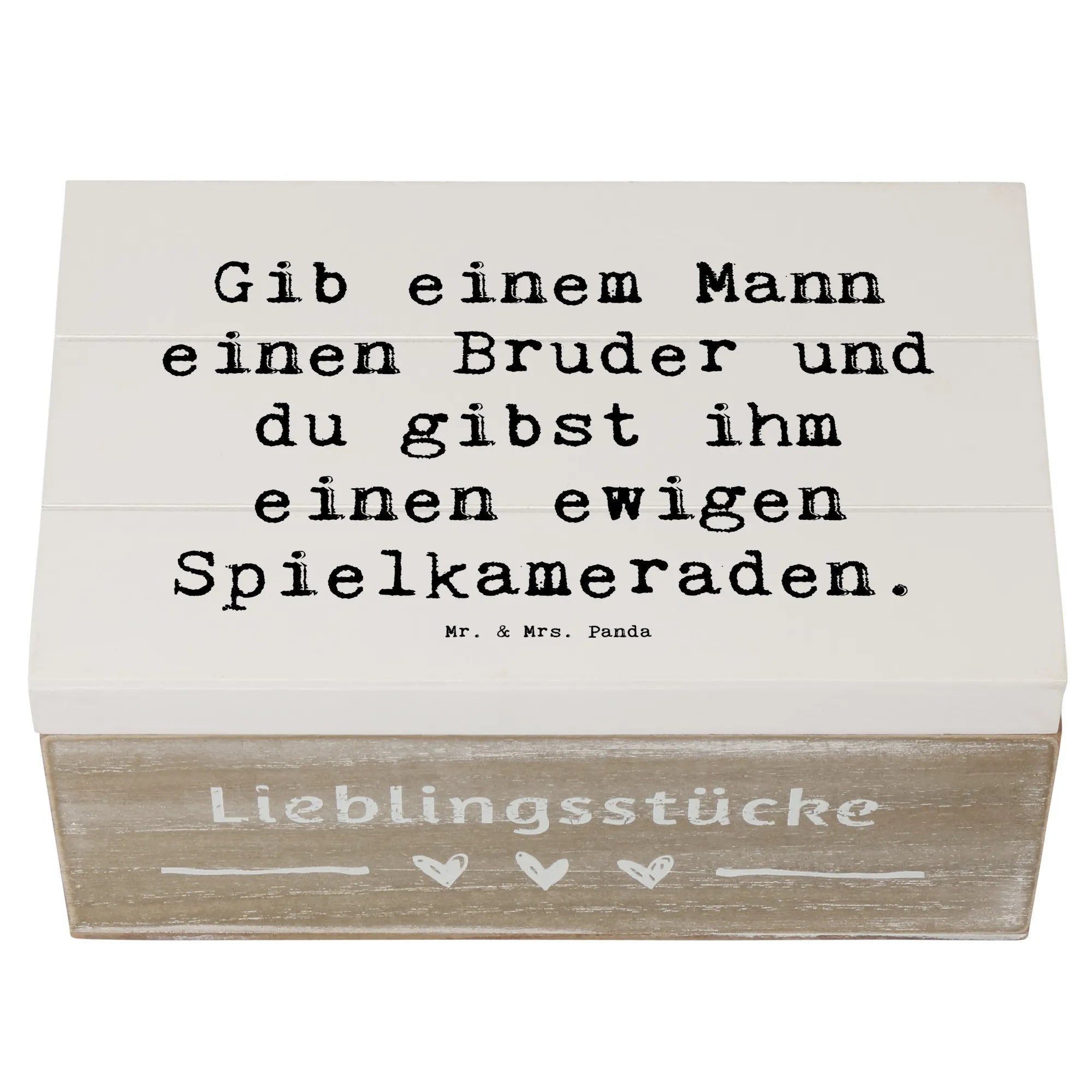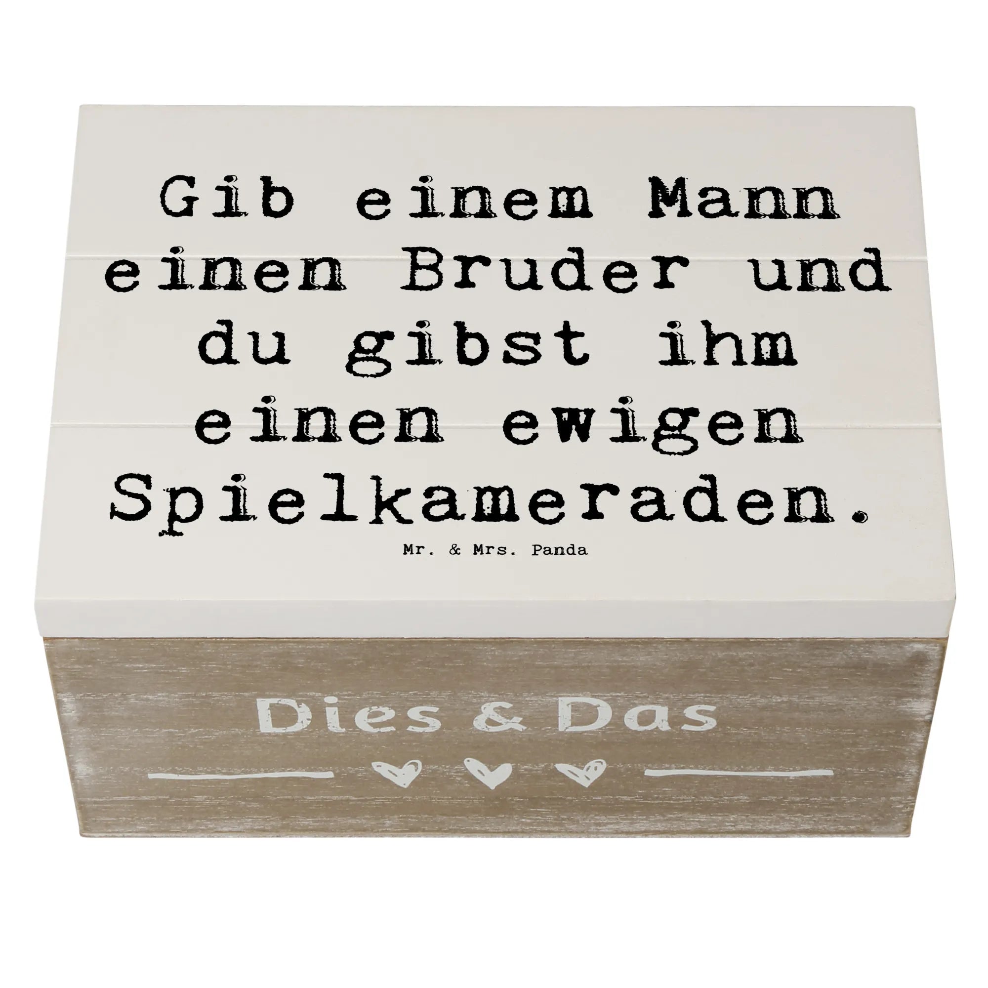 Wooden chest Saying Gib einem Mann einen Bruder und du gibst ihm einen ewigen Spielkameraden. - 22 x 15 cm - White