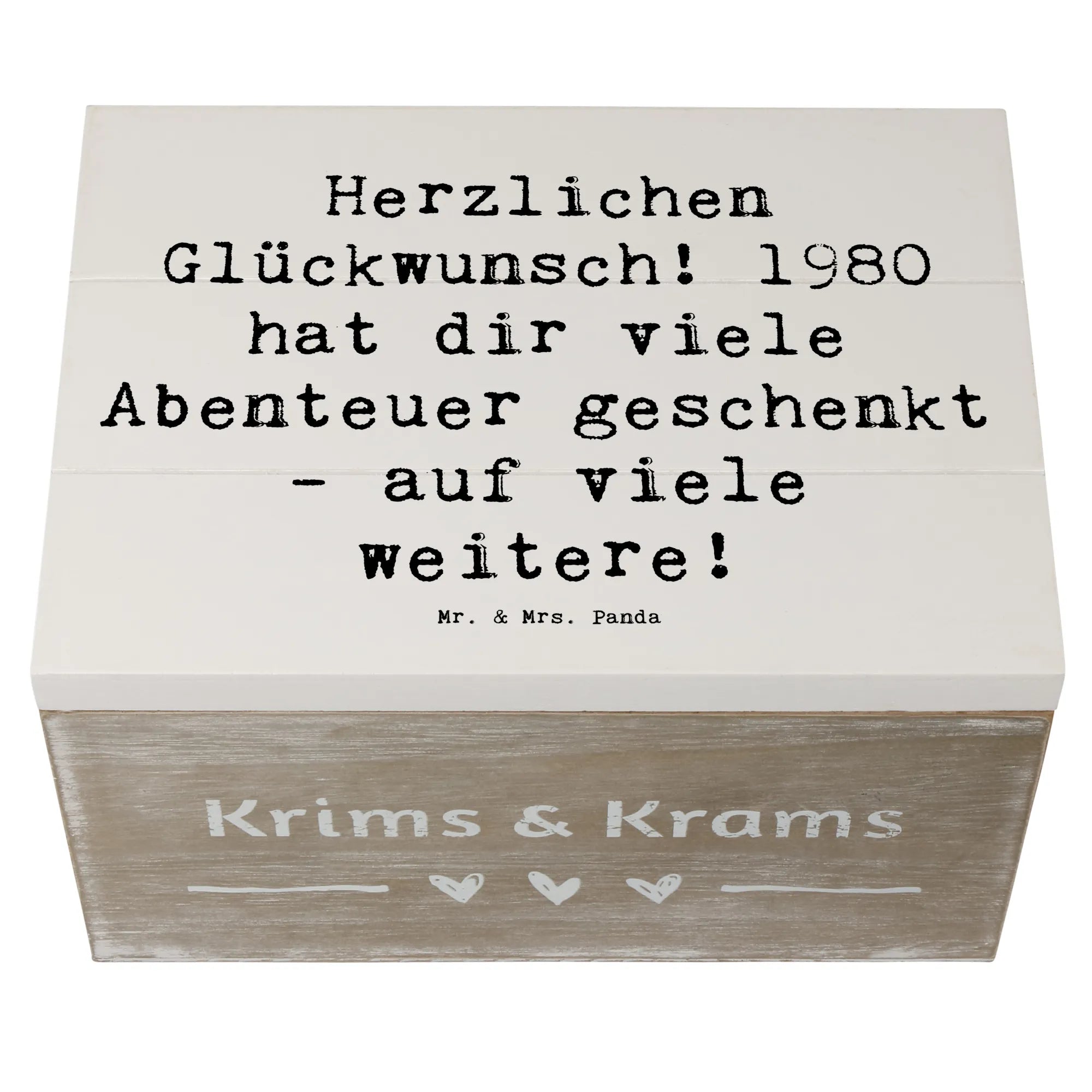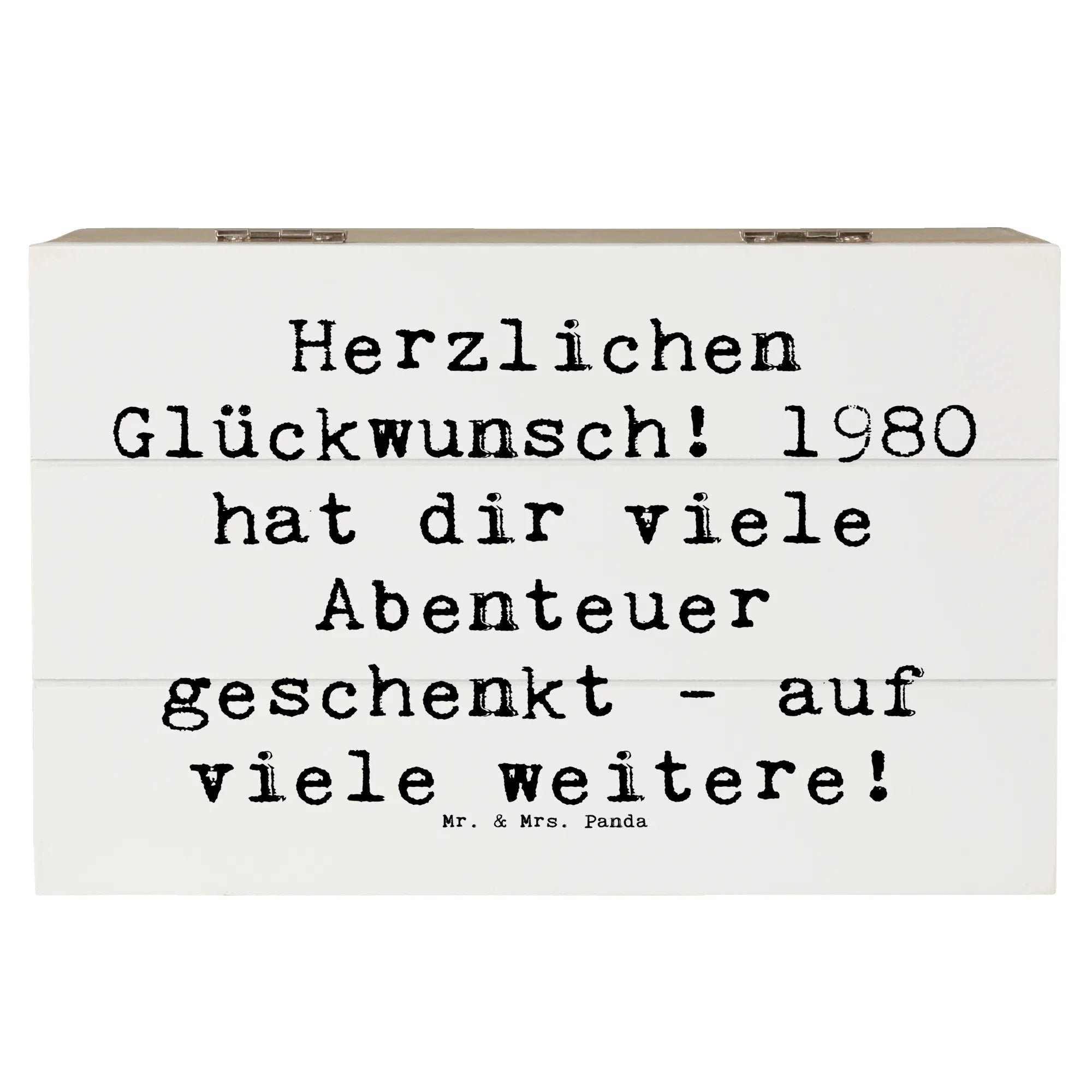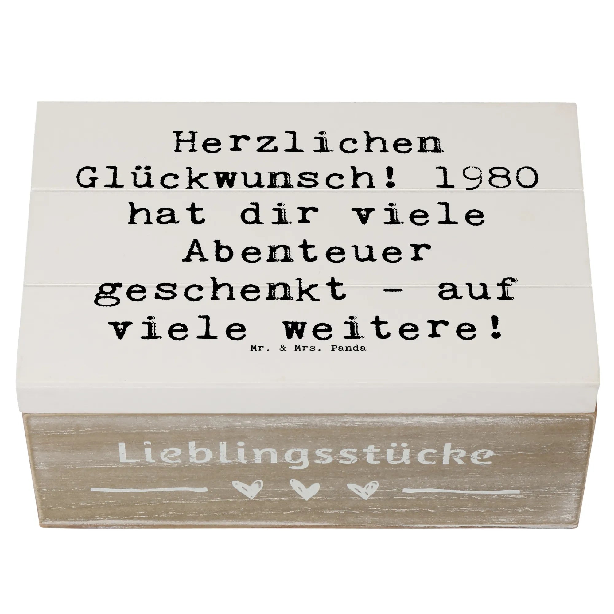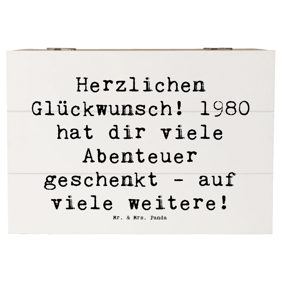 Wooden chest Saying Herzlichen Glückwunsch! 1980 hat dir viele Abenteuer geschenkt - auf viele weitere! - 22 x 15 cm - White