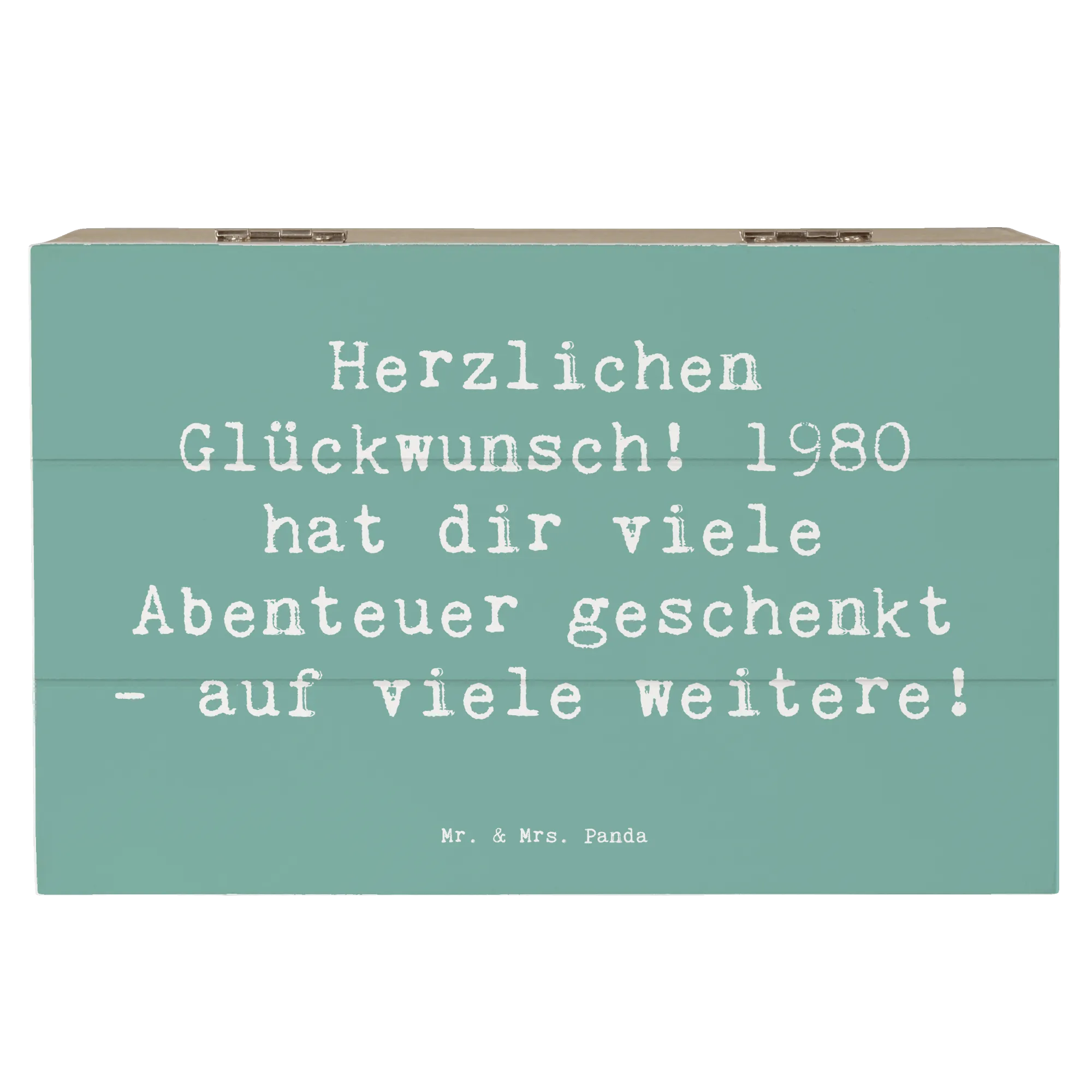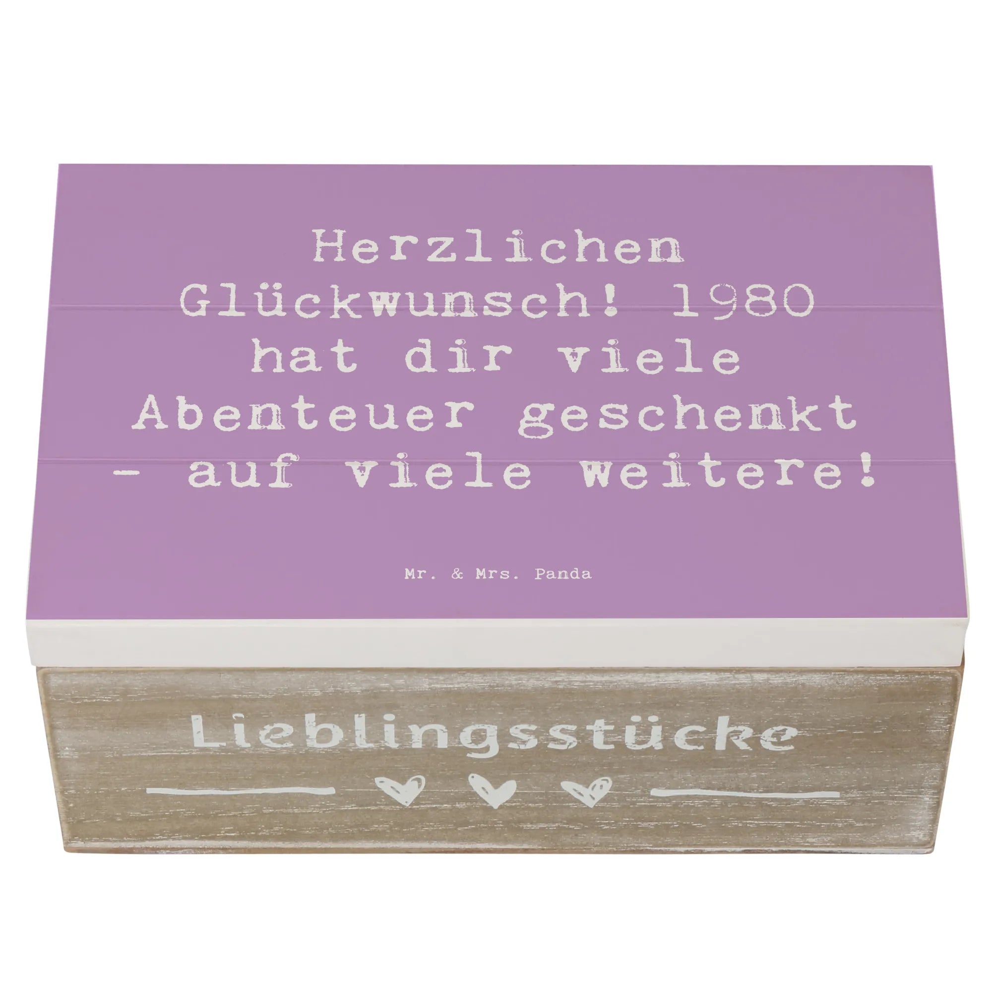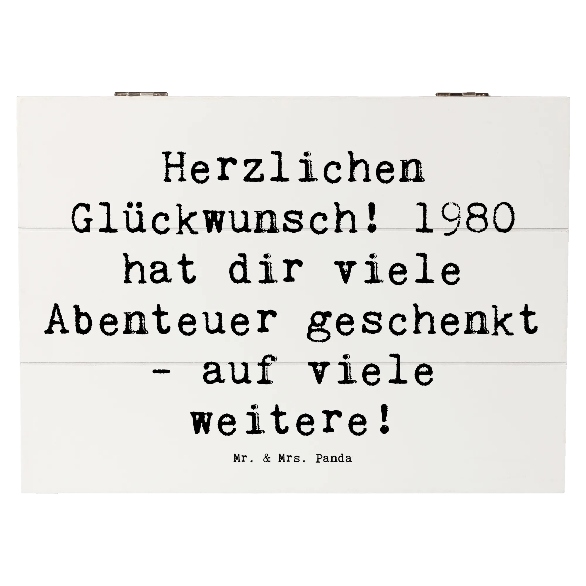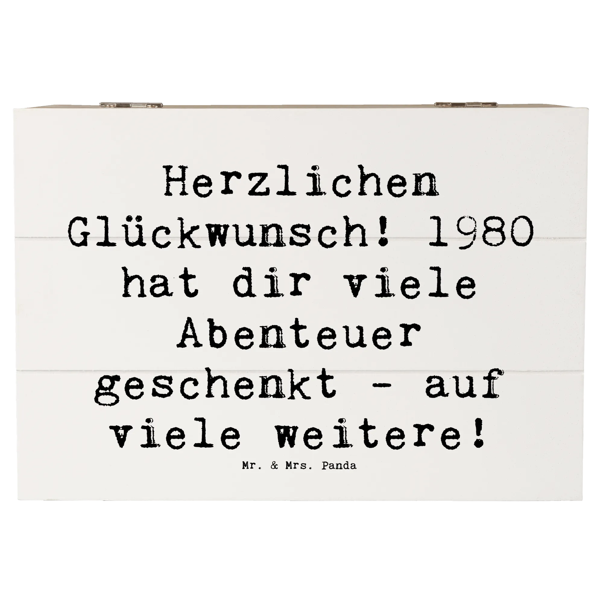Wooden chest Saying Herzlichen Glückwunsch! 1980 hat dir viele Abenteuer geschenkt - auf viele weitere! - 22 x 15 cm - White