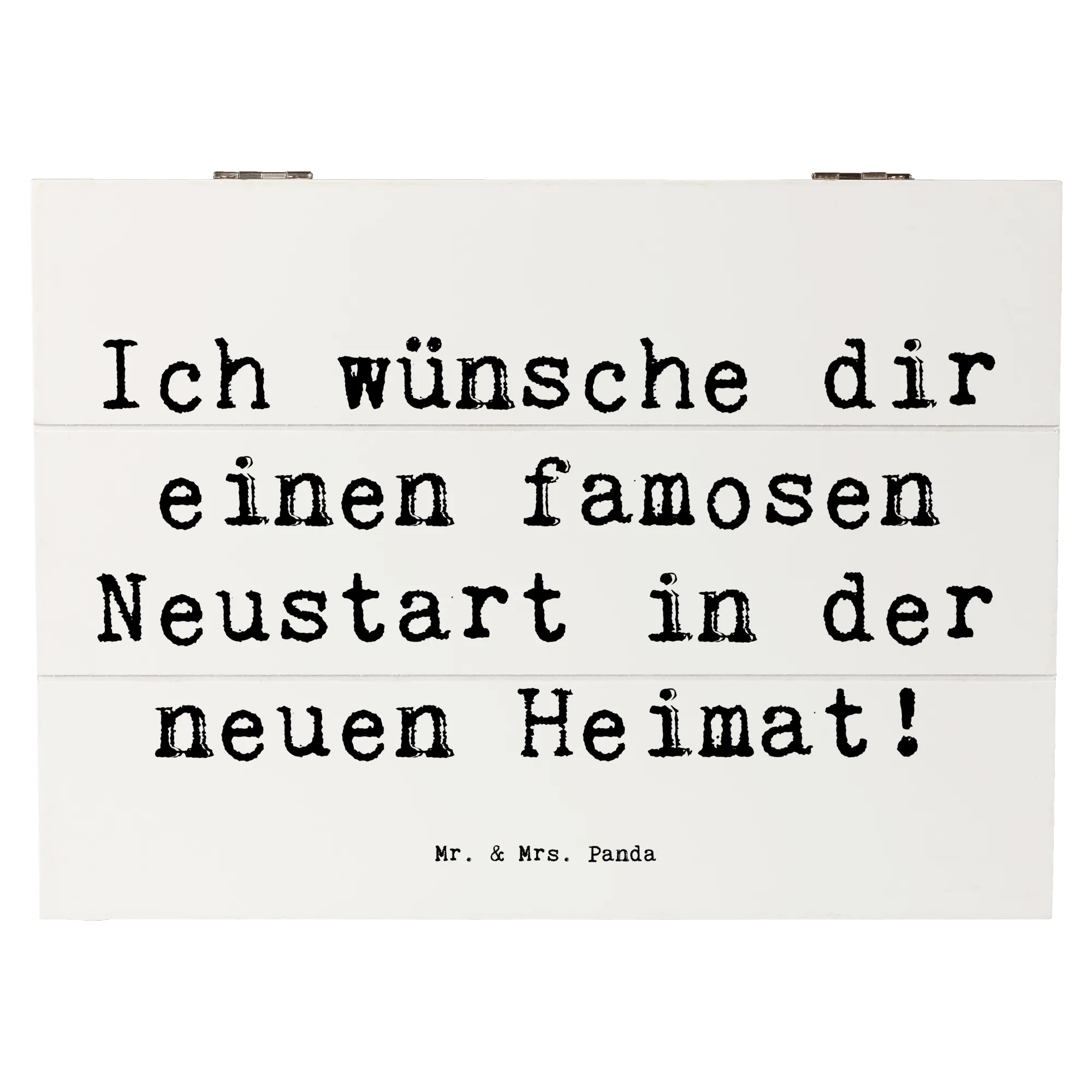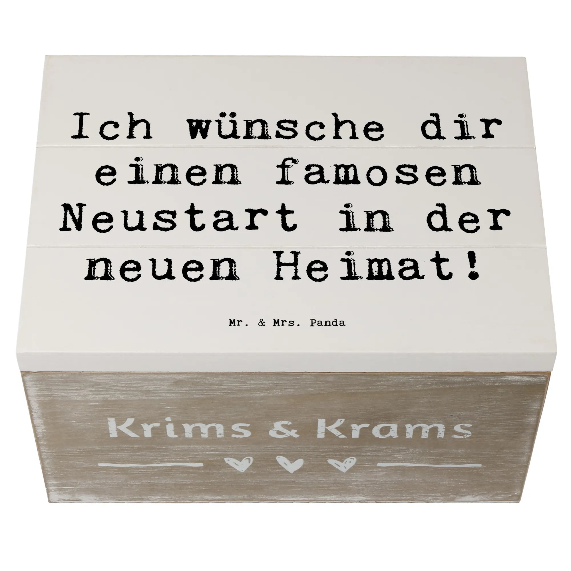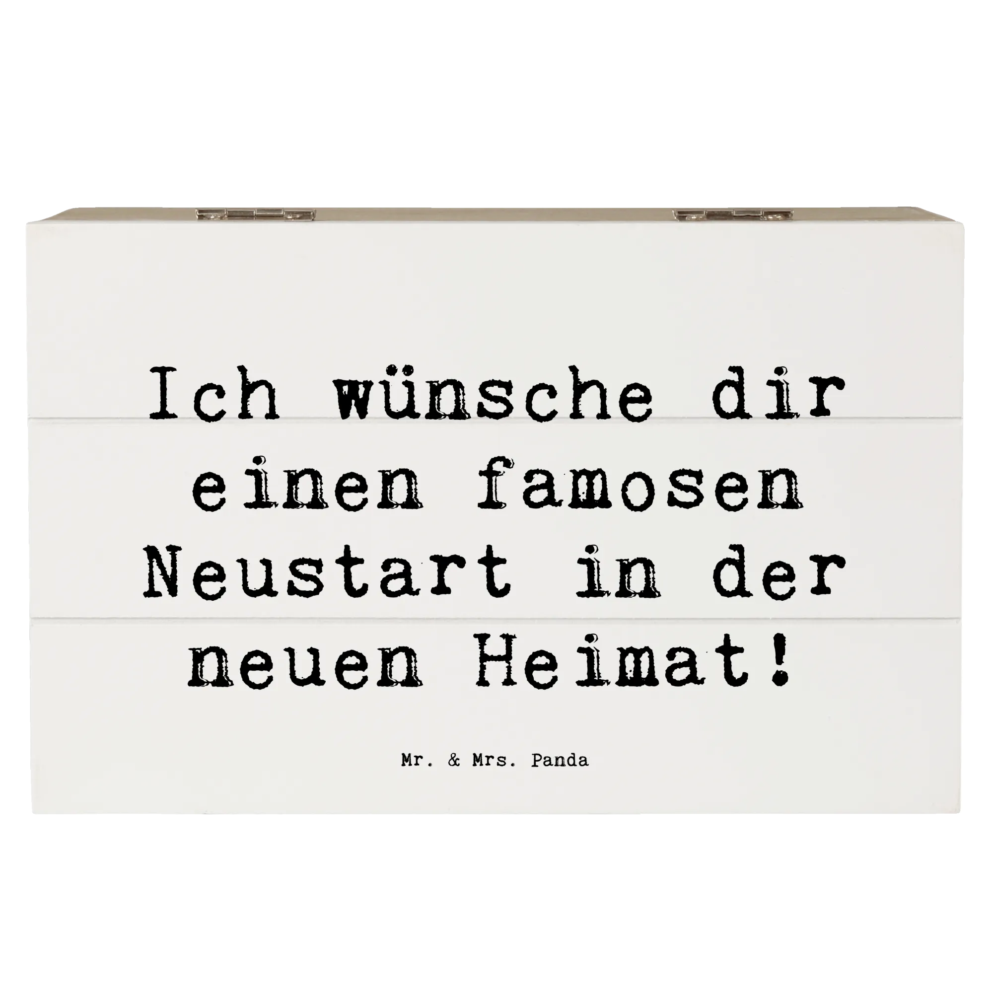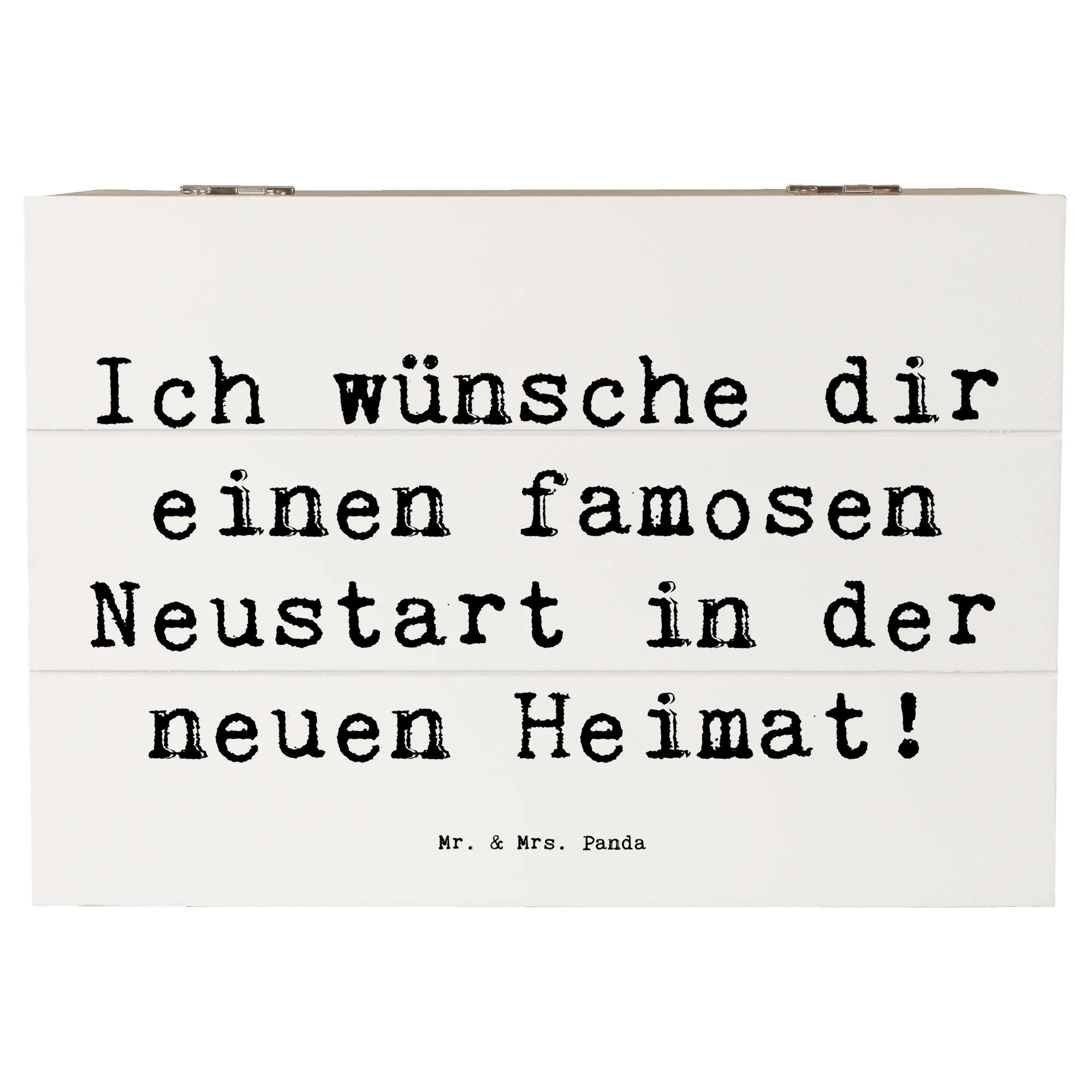 Wooden chest Saying Ich wünsche dir einen famosen Neustart in der neuen Heimat! - 22 x 15 cm - White