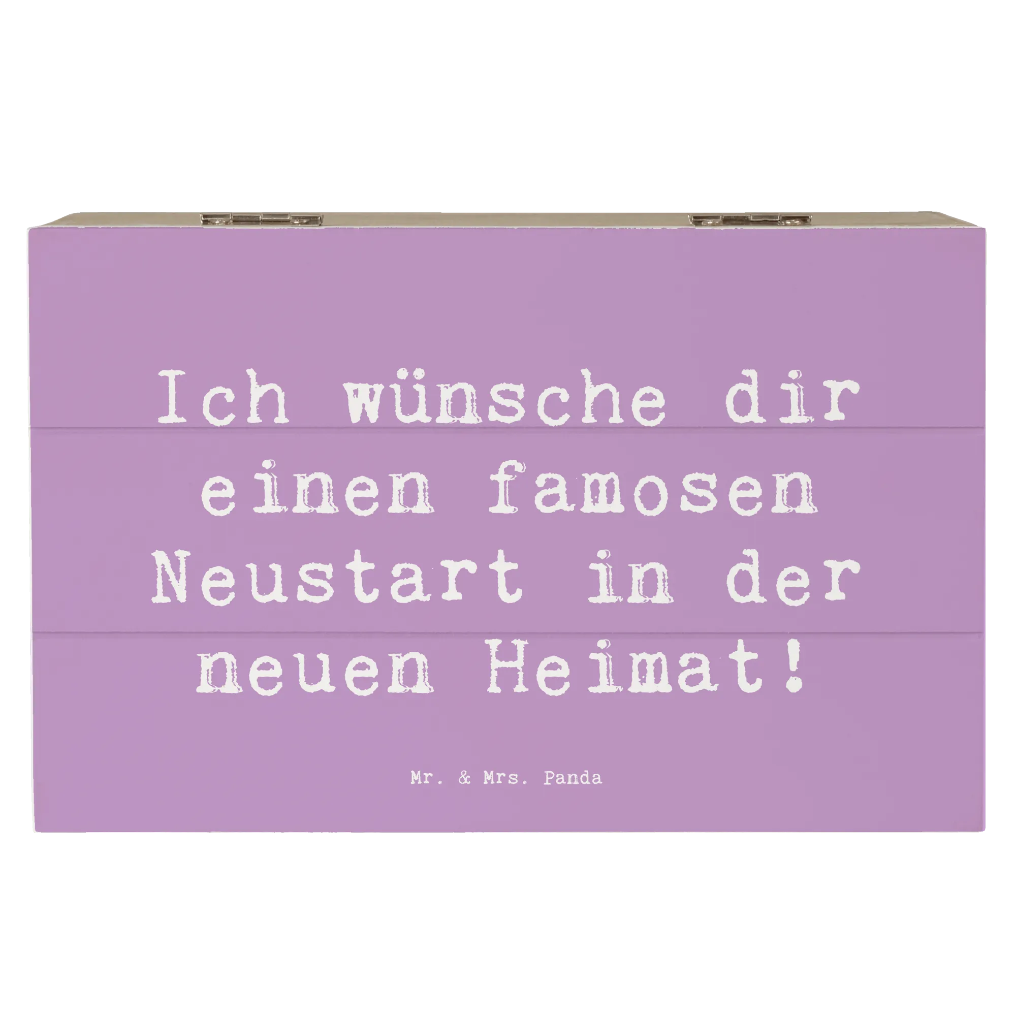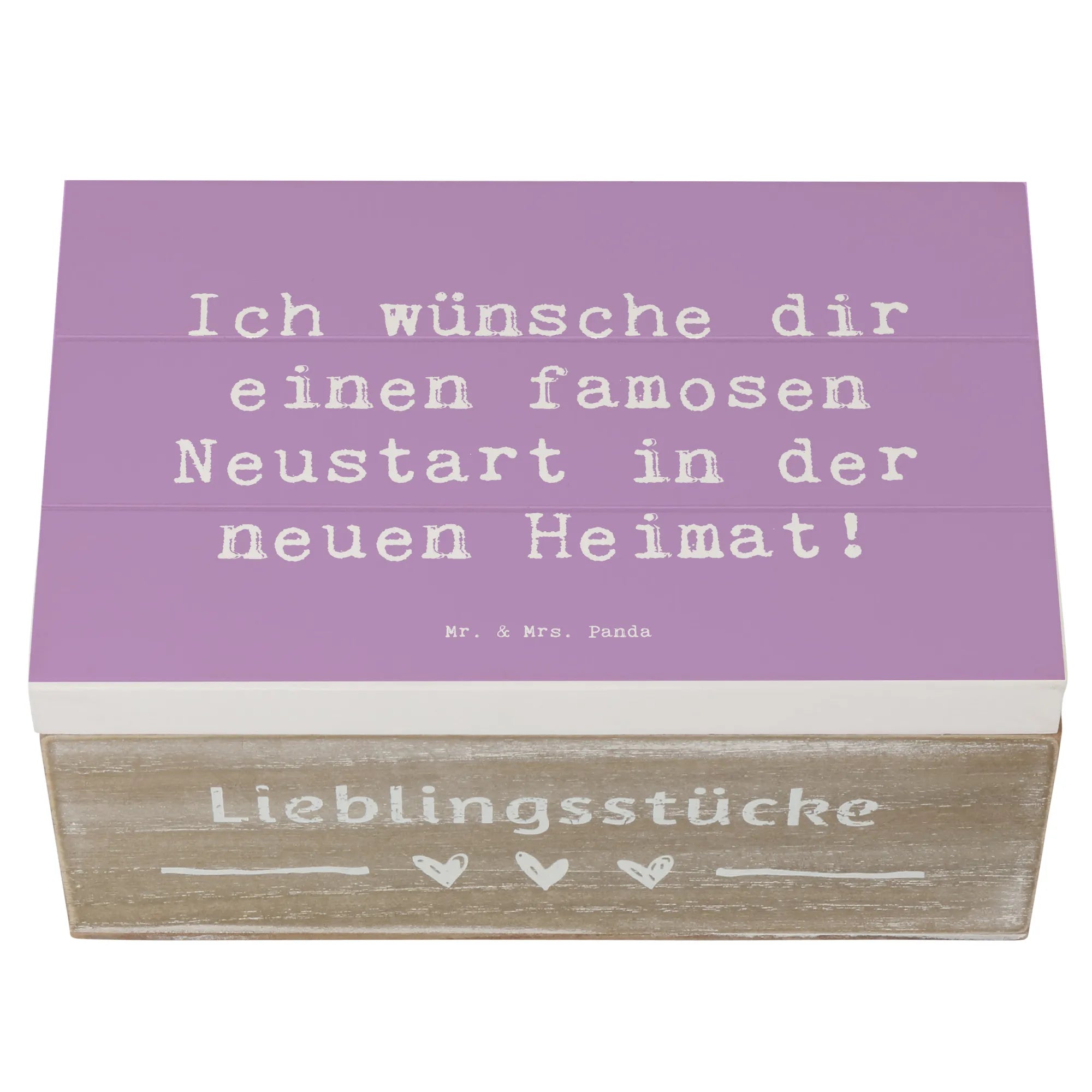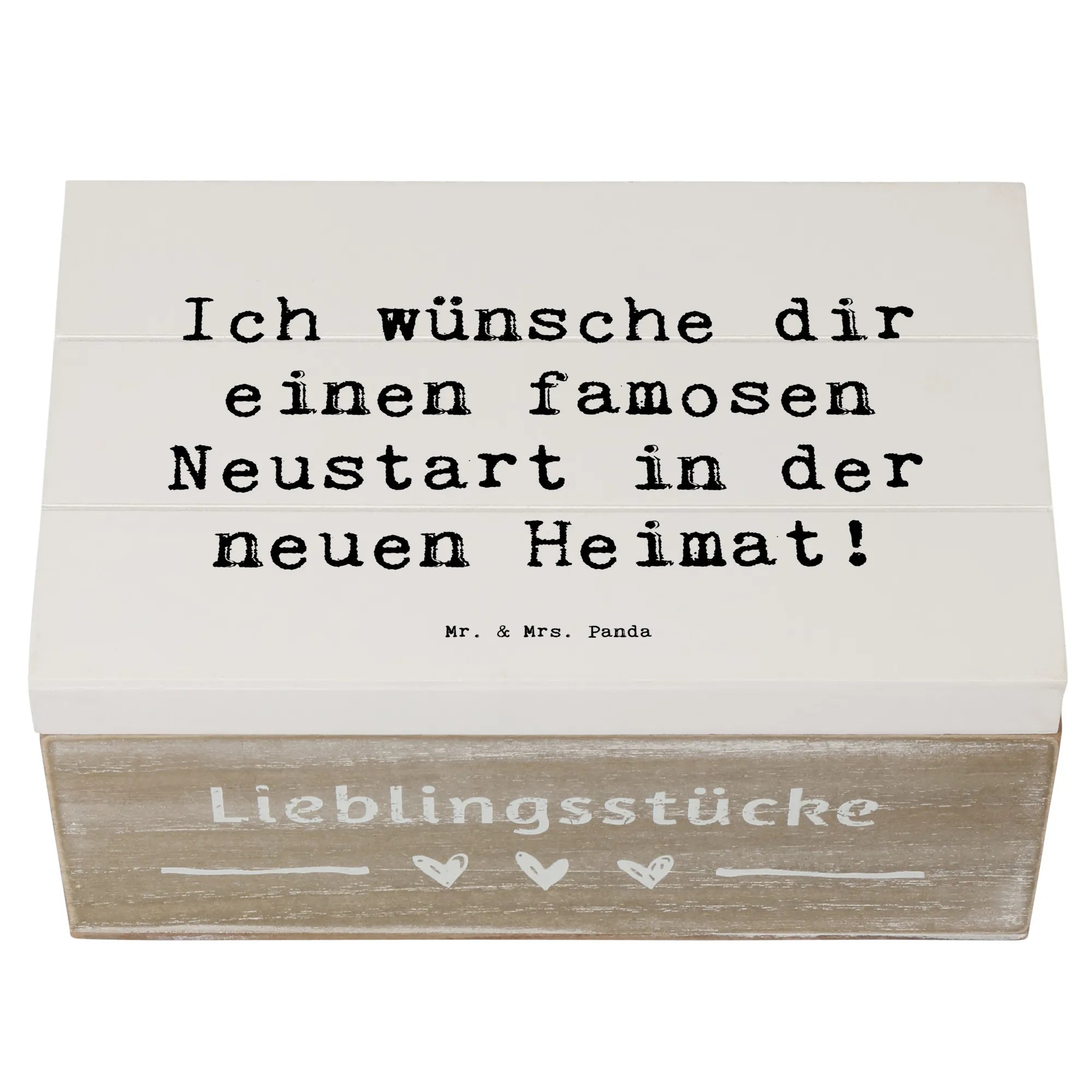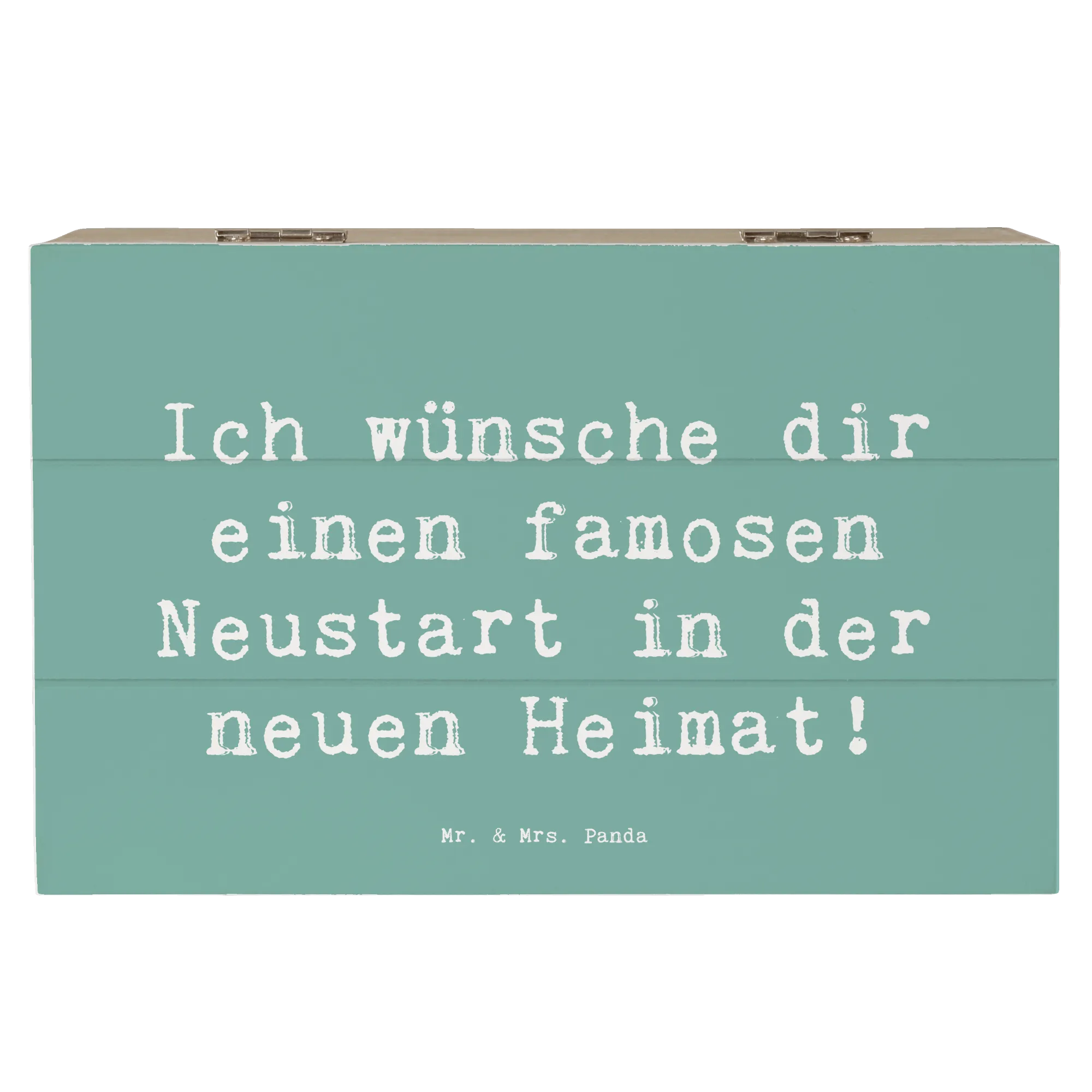 Wooden chest Saying Ich wünsche dir einen famosen Neustart in der neuen Heimat! - 22 x 15 cm - White