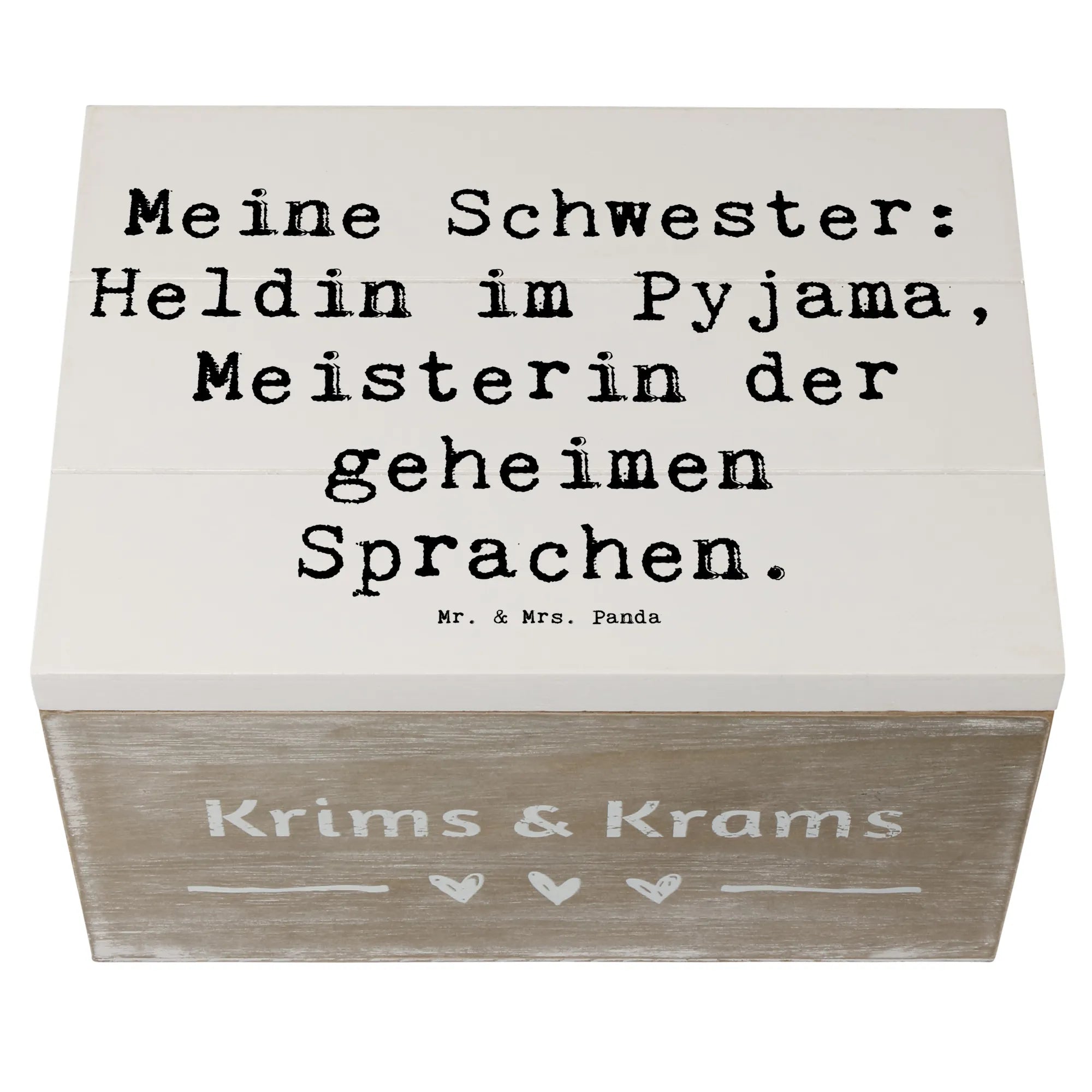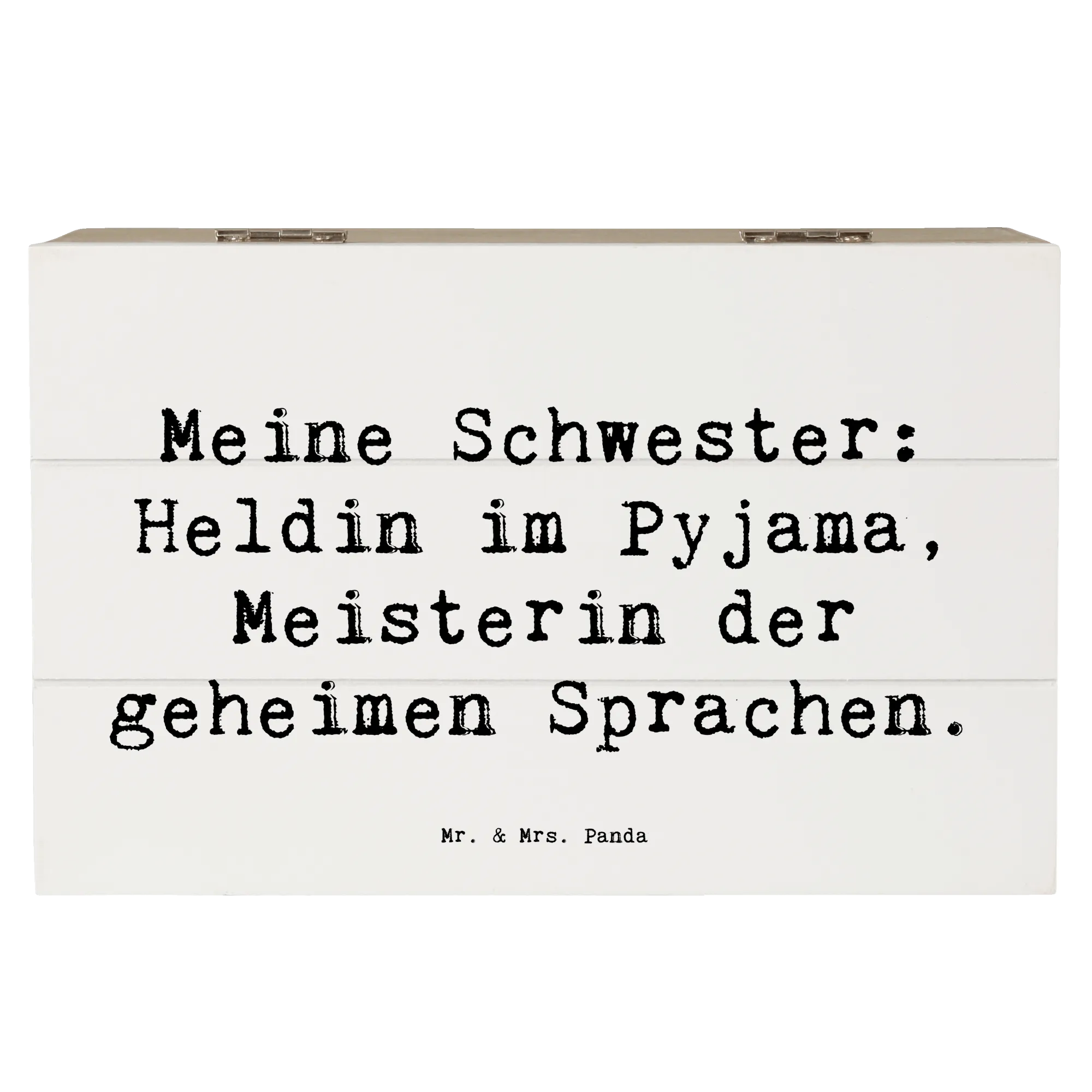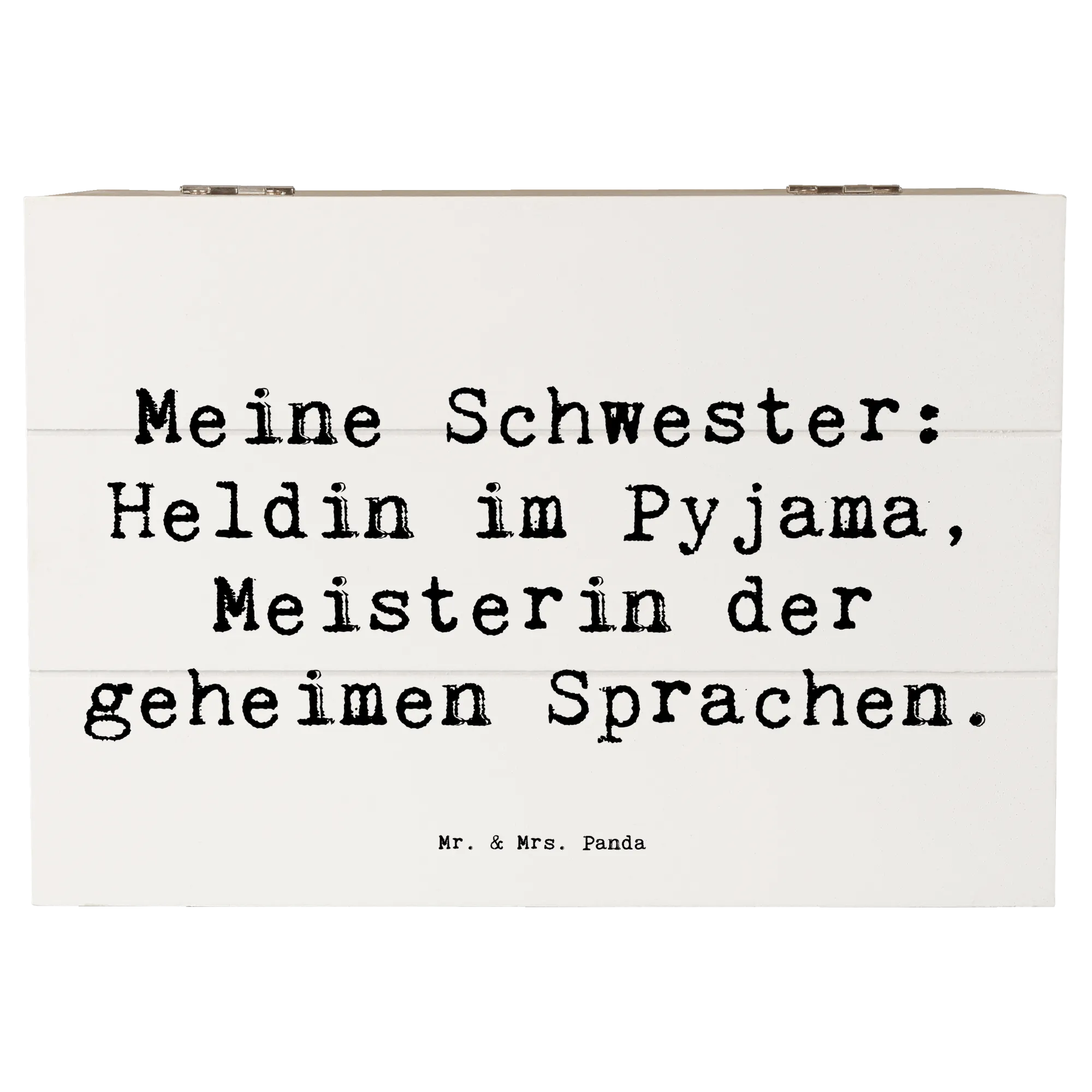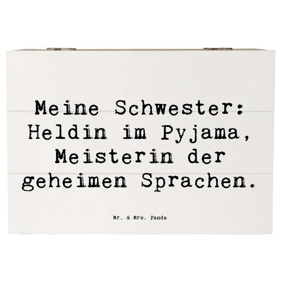 Wooden chest Saying Meine Schwester: Heldin im Pyjama, Meisterin der geheimen Sprachen. - 22 x 15 cm - White