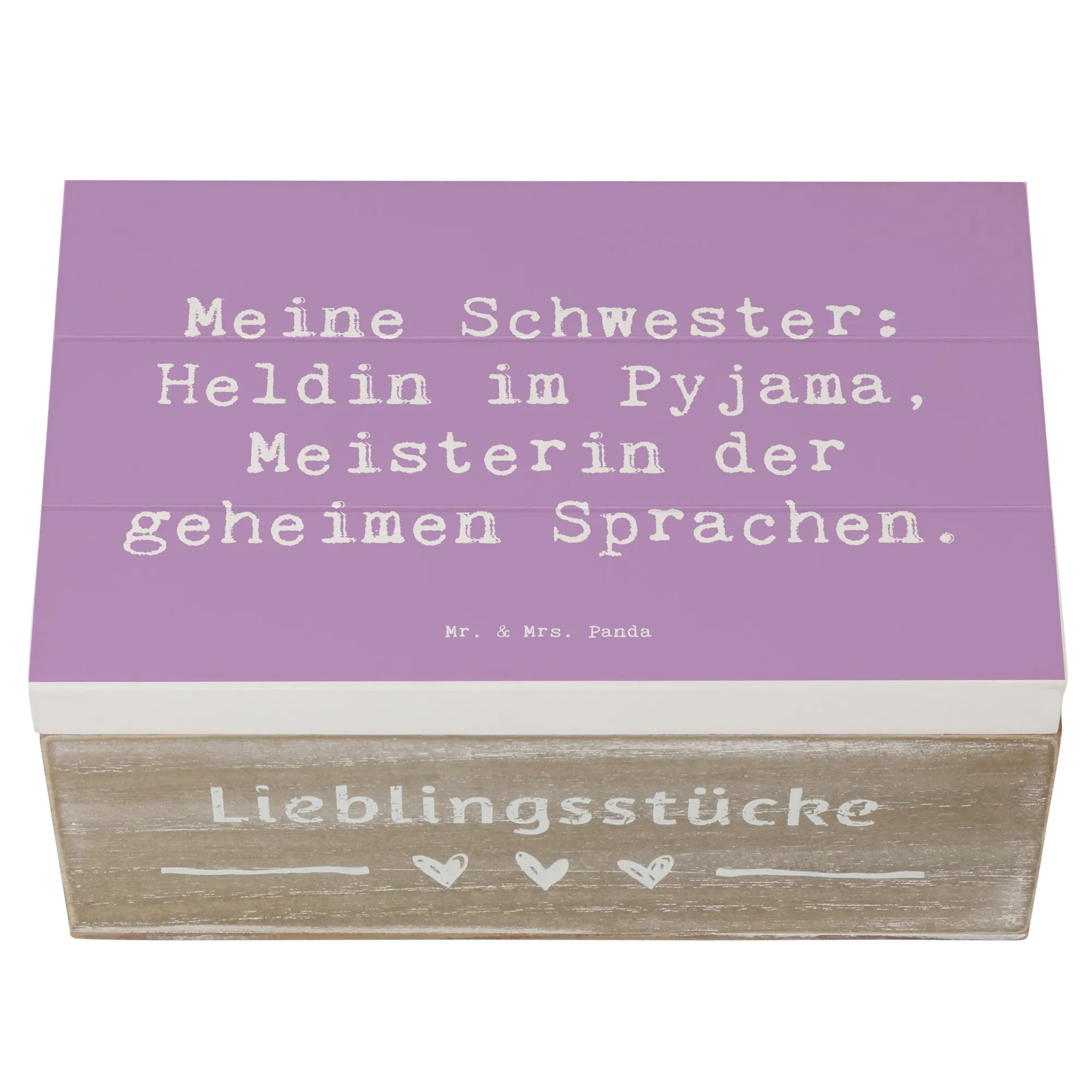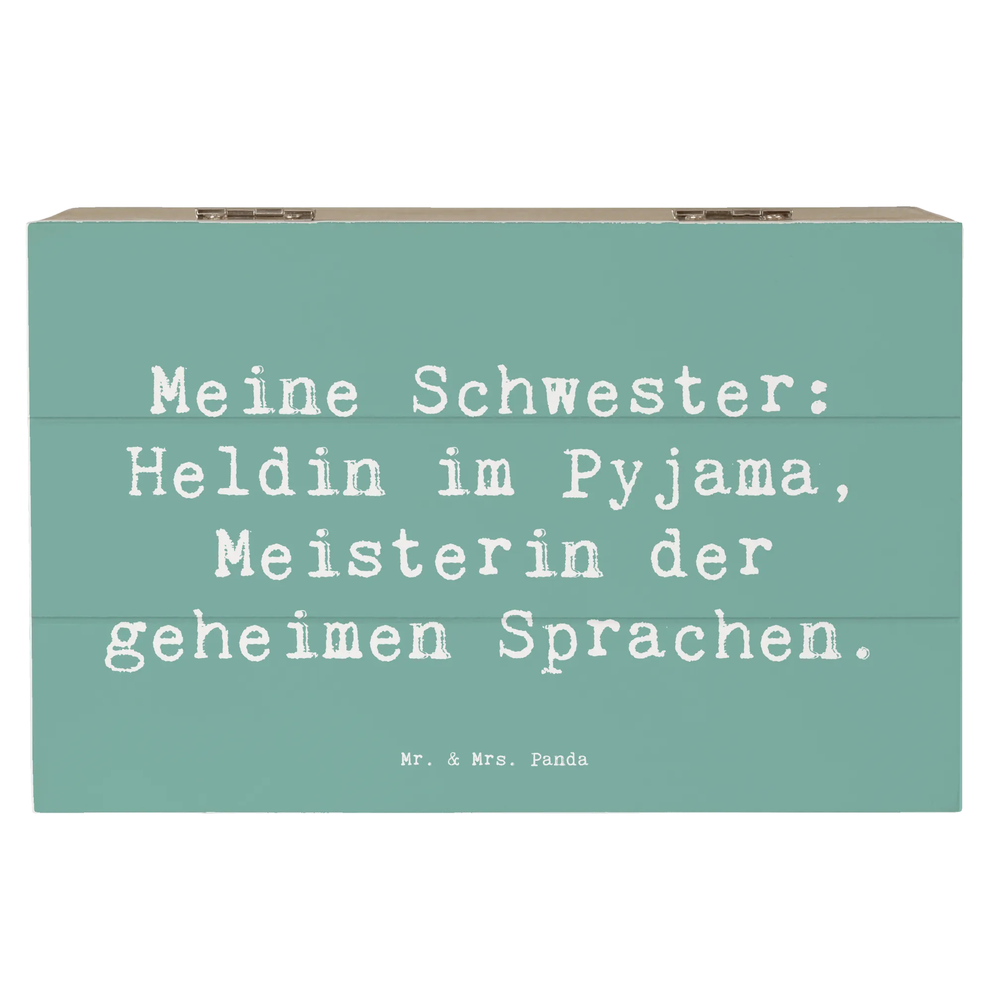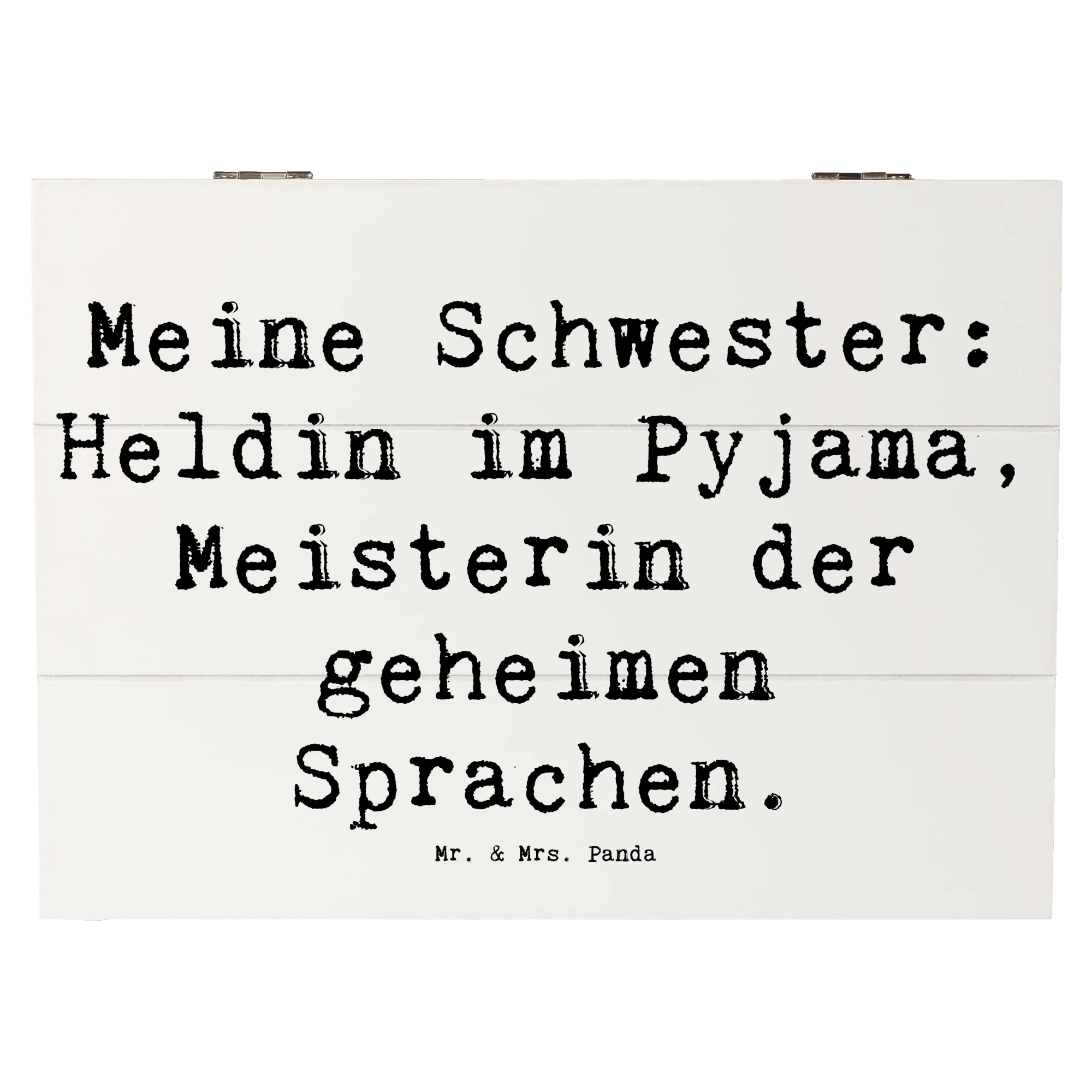 Wooden chest Saying Meine Schwester: Heldin im Pyjama, Meisterin der geheimen Sprachen. - 22 x 15 cm - White