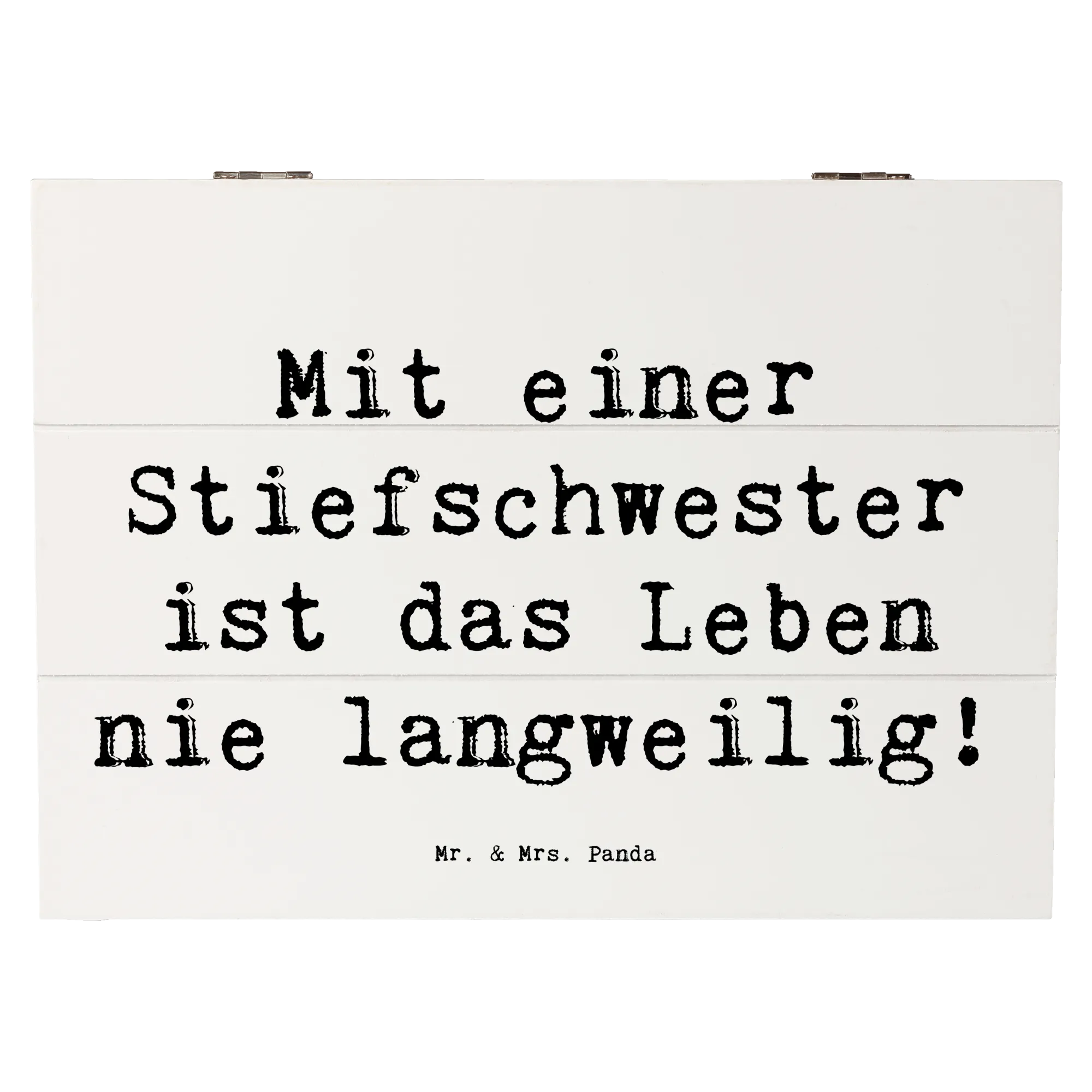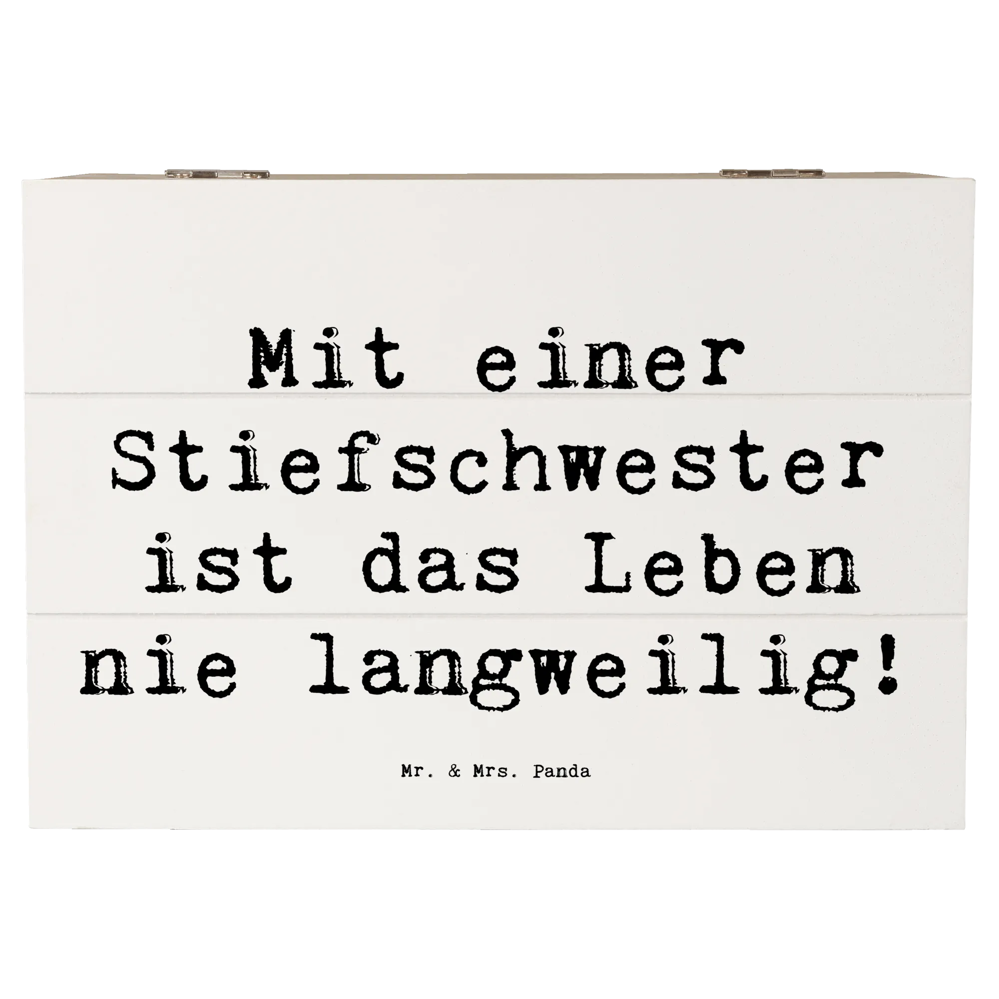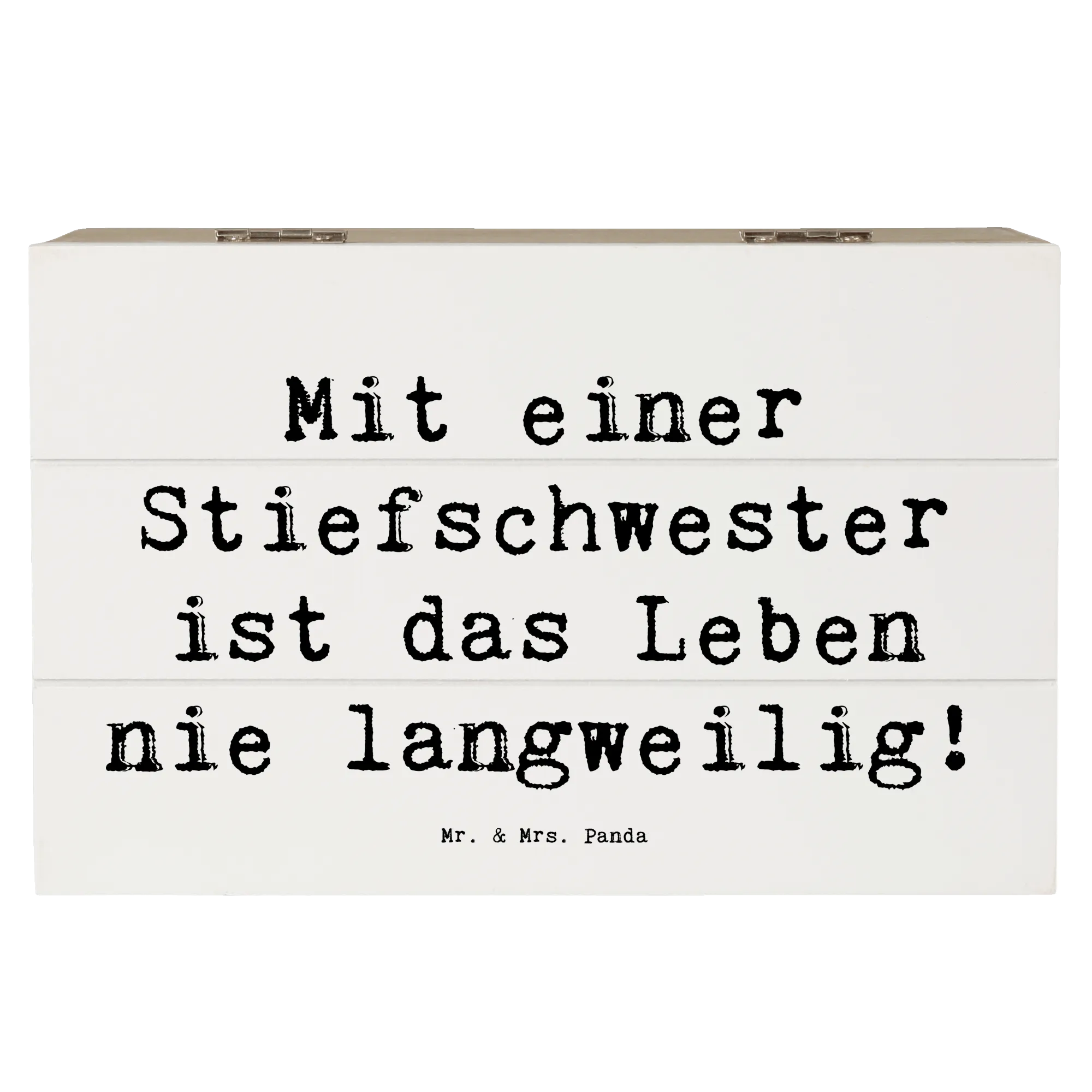 Wooden chest Saying Mit einer Stiefschwester ist das Leben nie langweilig! - 22 x 15 cm - White