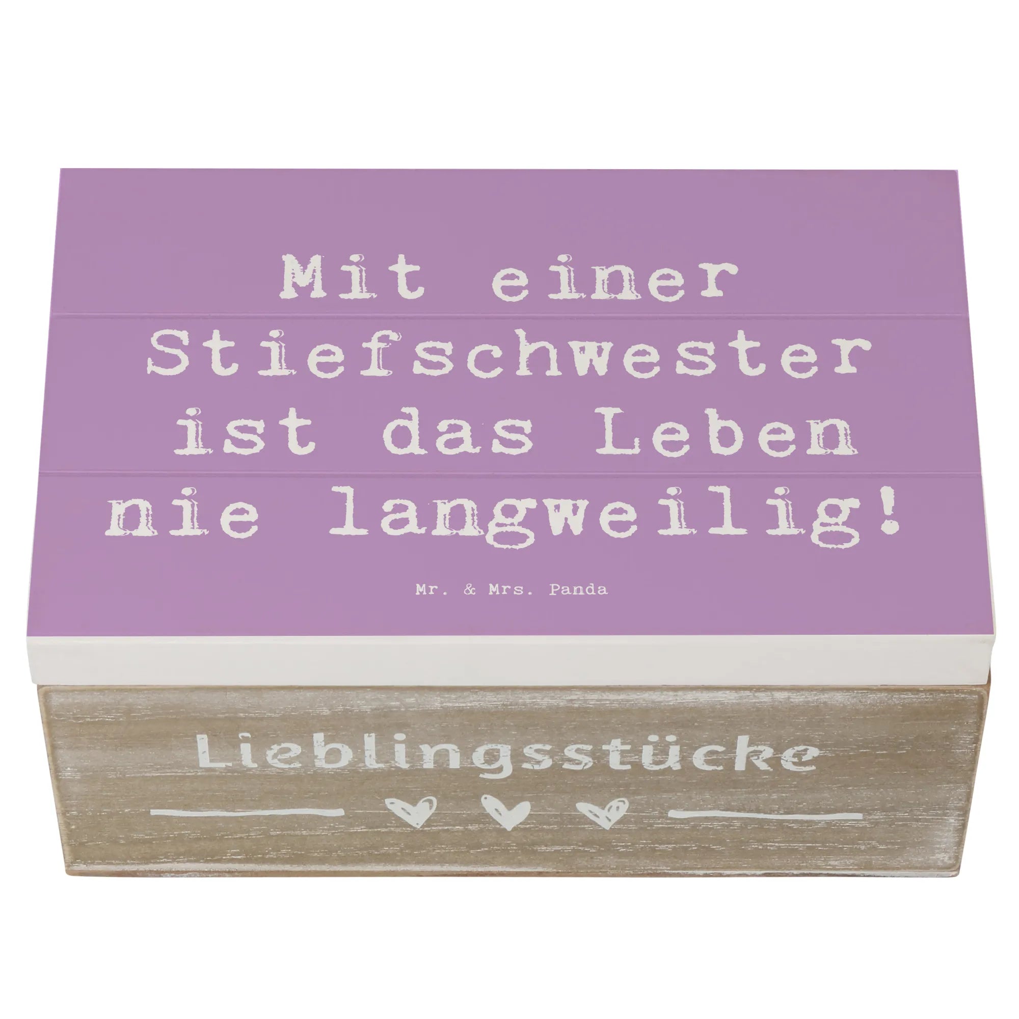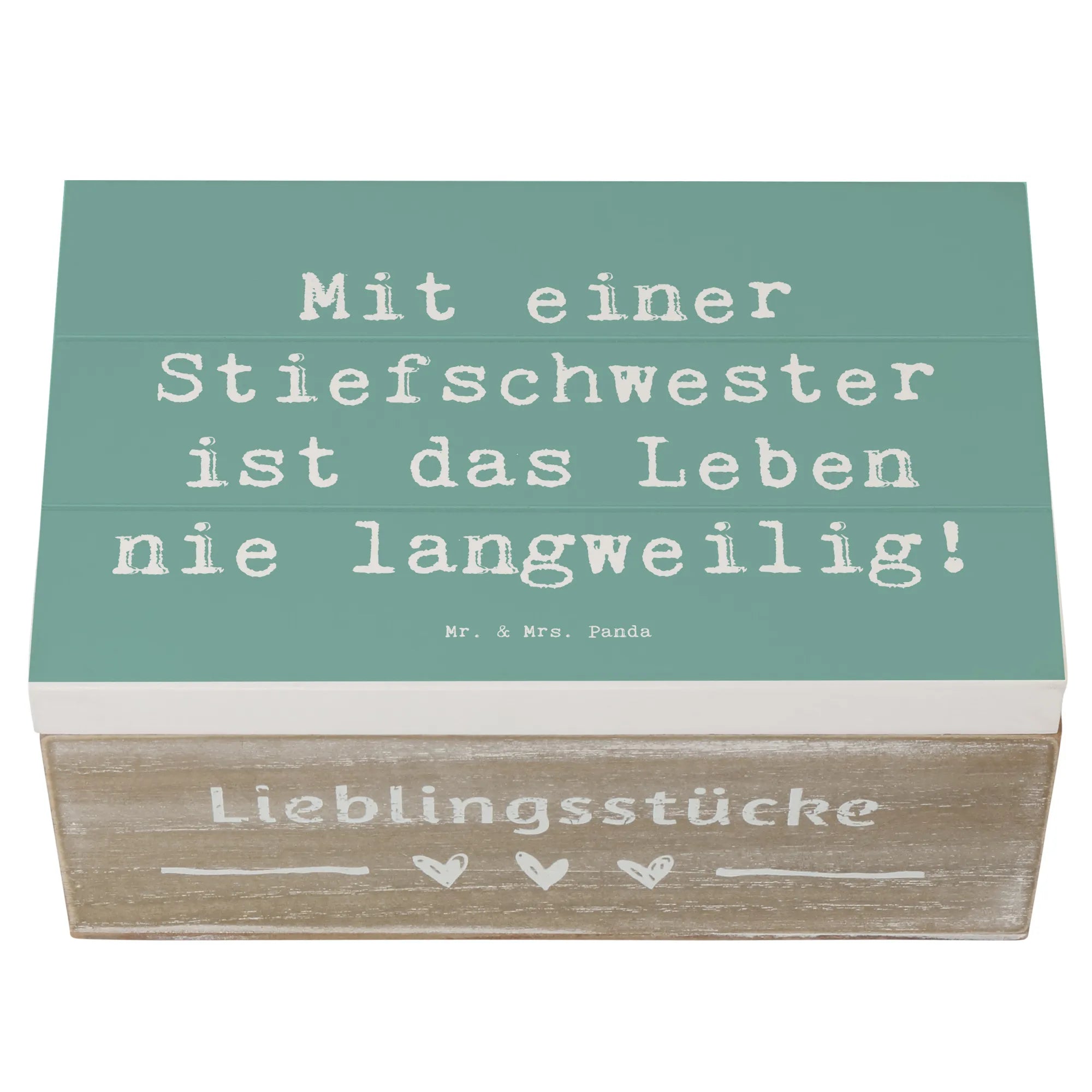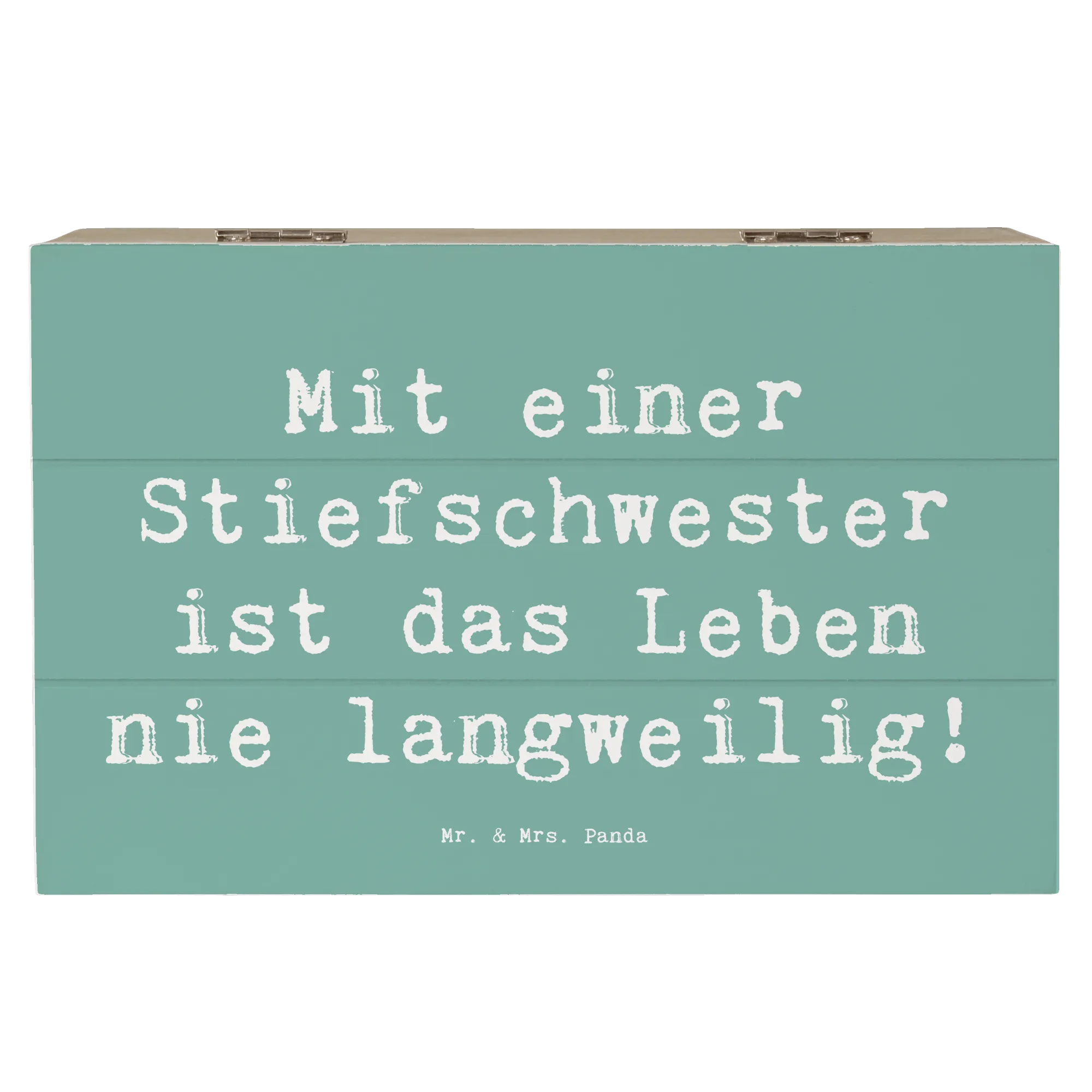 Wooden chest Saying Mit einer Stiefschwester ist das Leben nie langweilig! - 22 x 15 cm - White