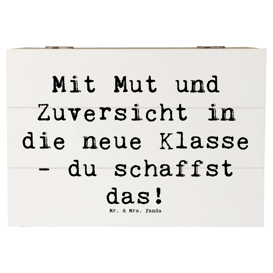 Wooden chest Saying Mit Mut und Zuversicht in die neue Klasse - du schaffst das! - 22 x 15 cm - White