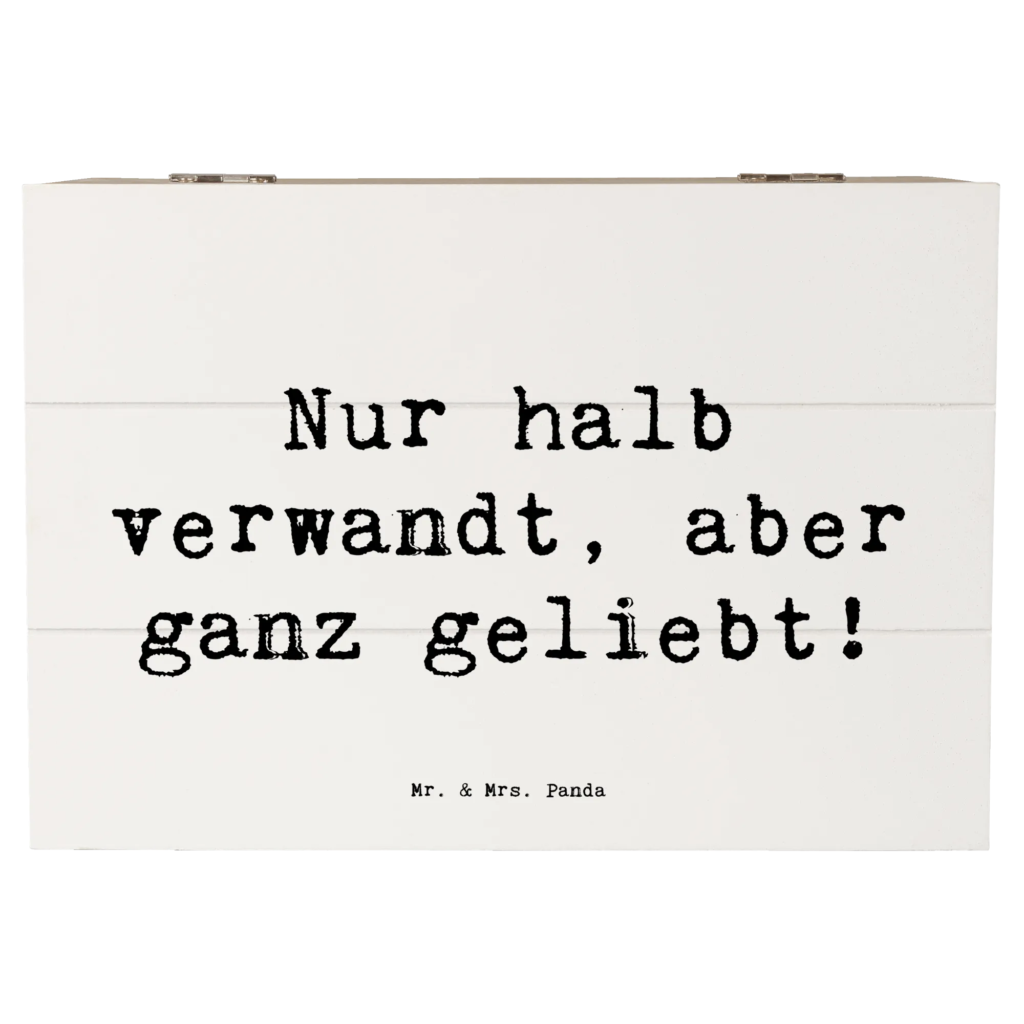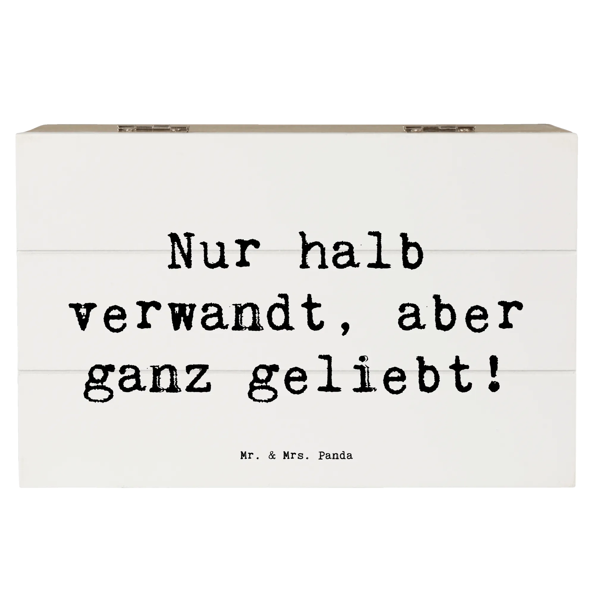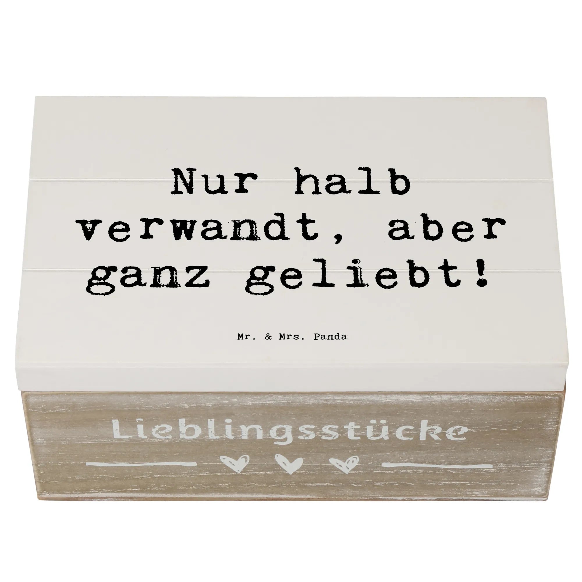 Wooden chest Saying Nur halb verwandt, aber ganz geliebt! - 22 x 15 cm - White