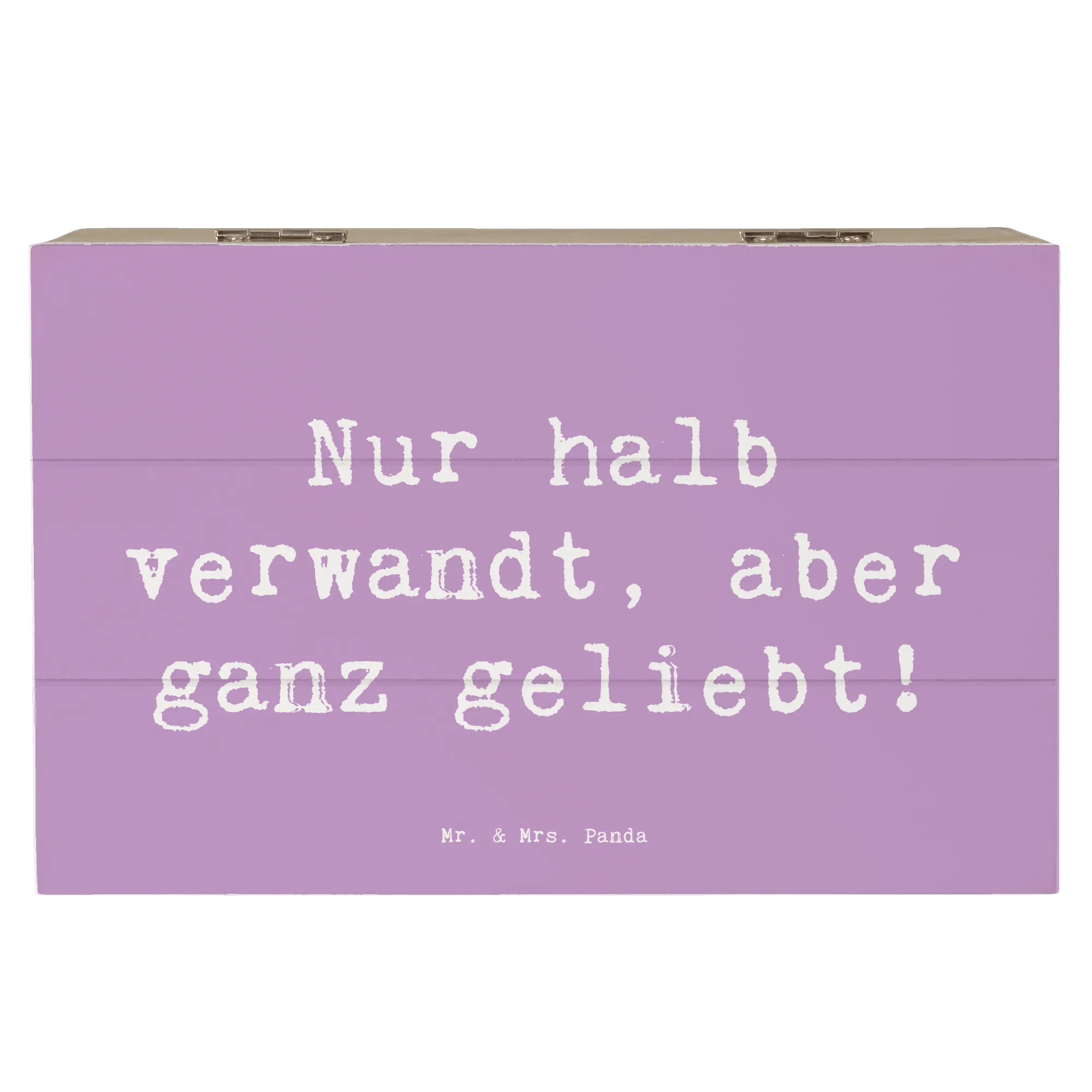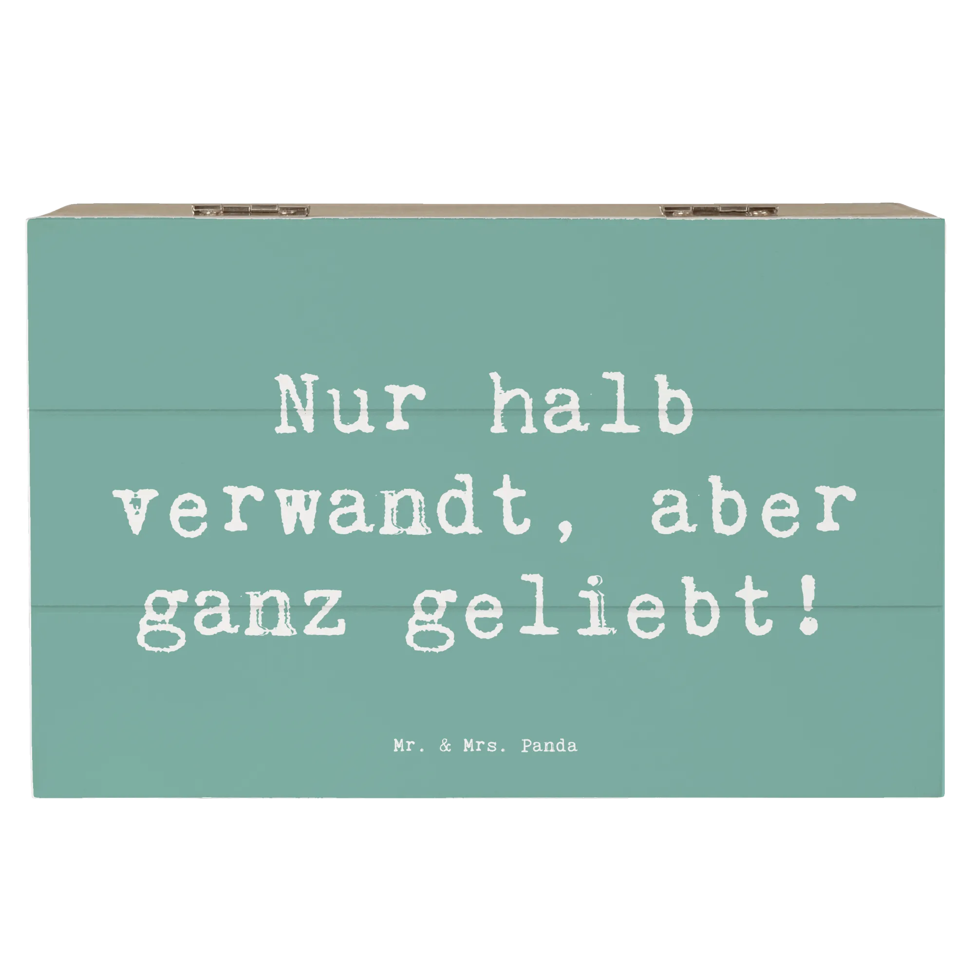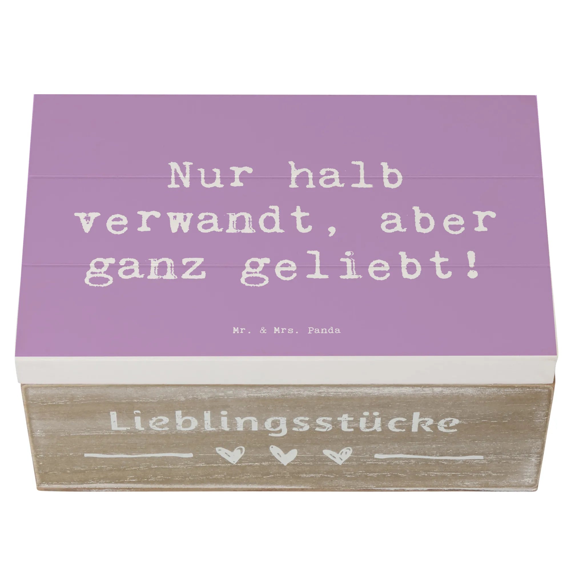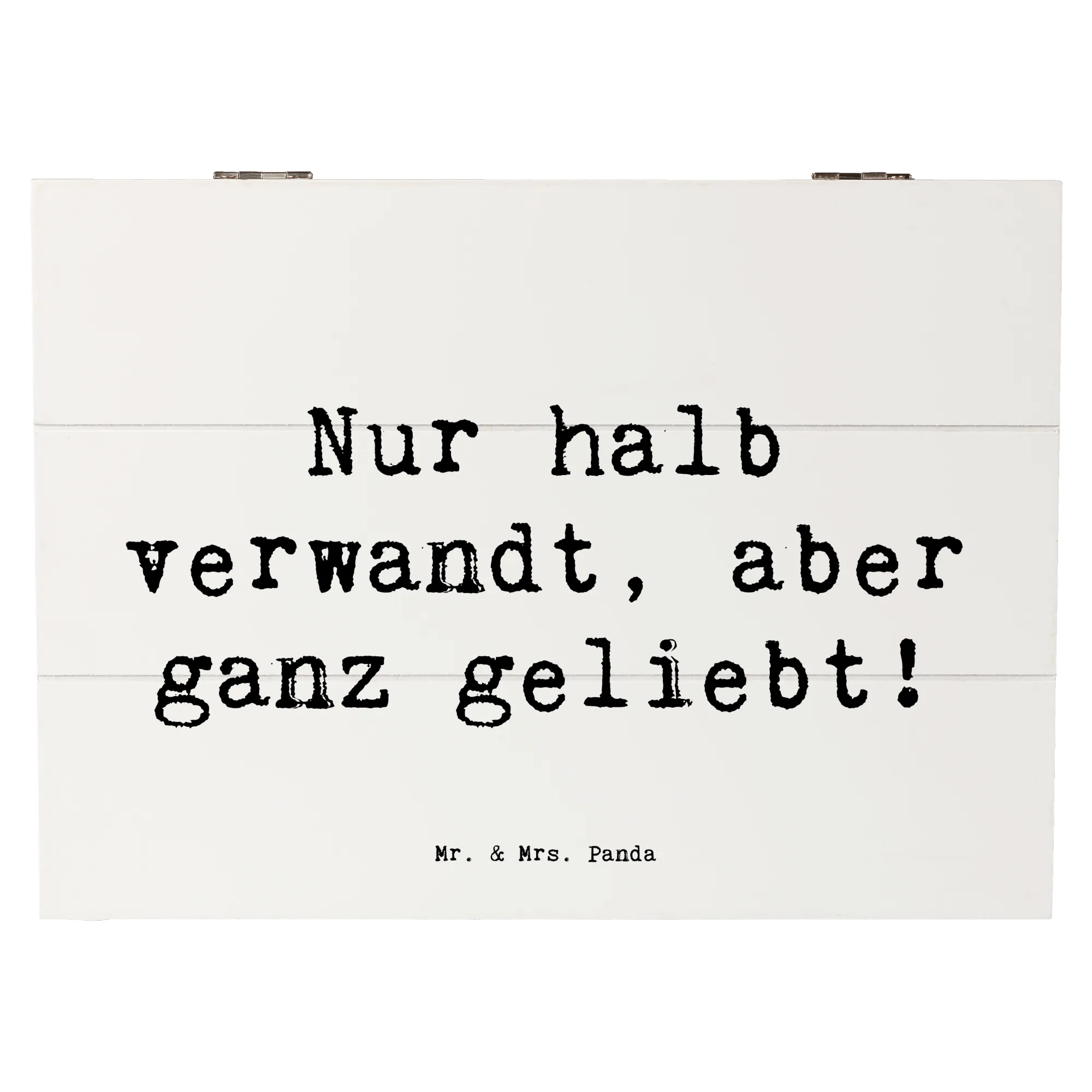 Wooden chest Saying Nur halb verwandt, aber ganz geliebt! - 22 x 15 cm - White