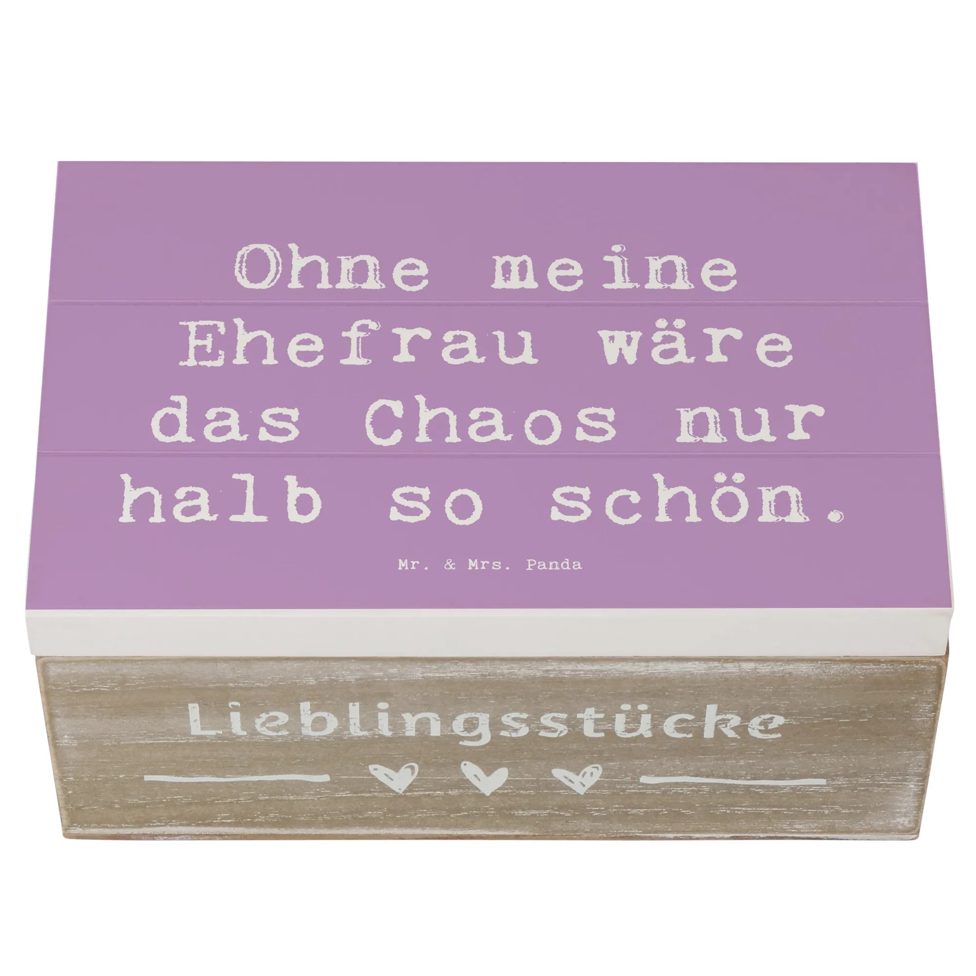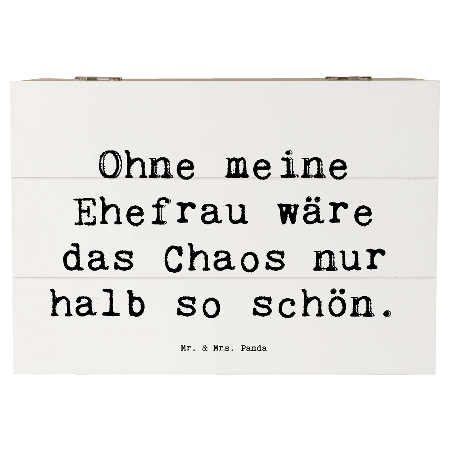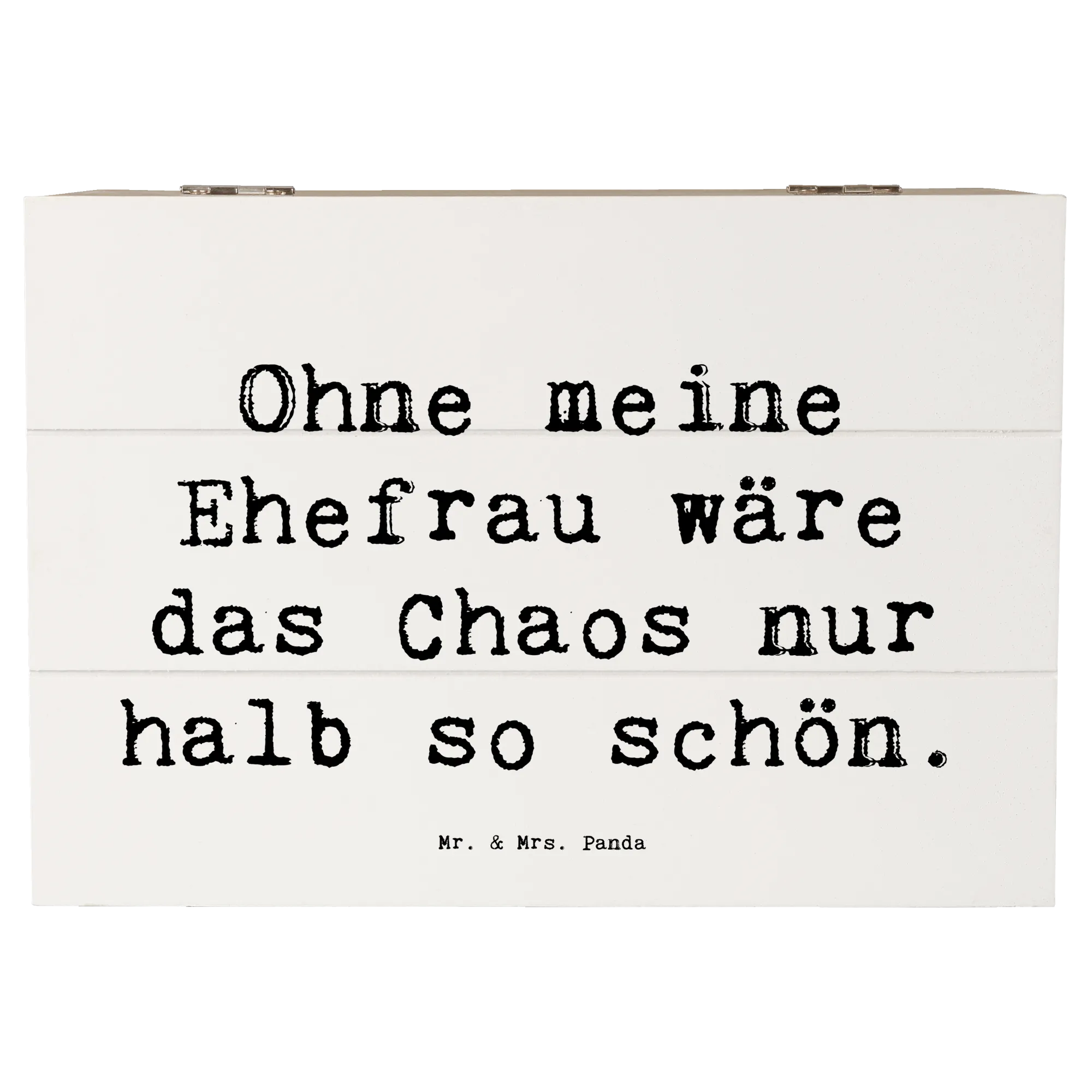 Wooden chest Saying Ohne meine Ehefrau wäre das Chaos nur halb so schön. - 22 x 15 cm - White