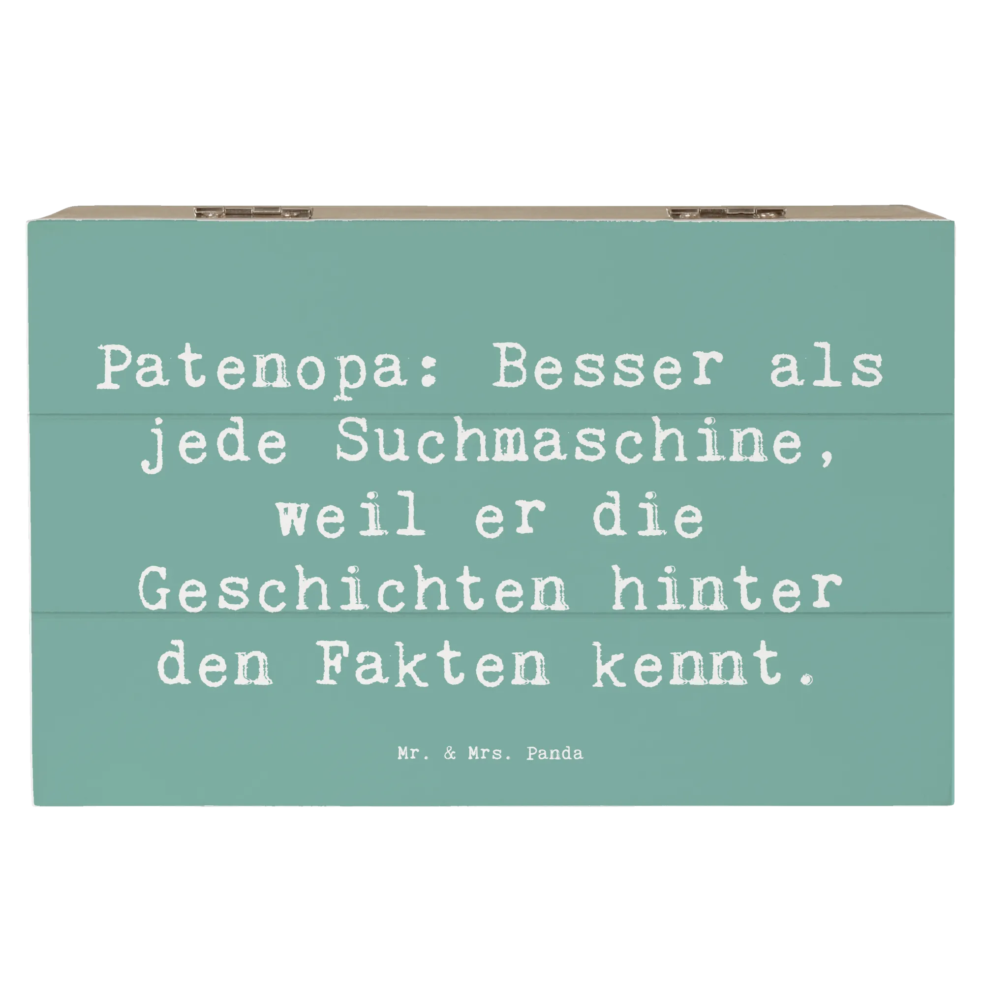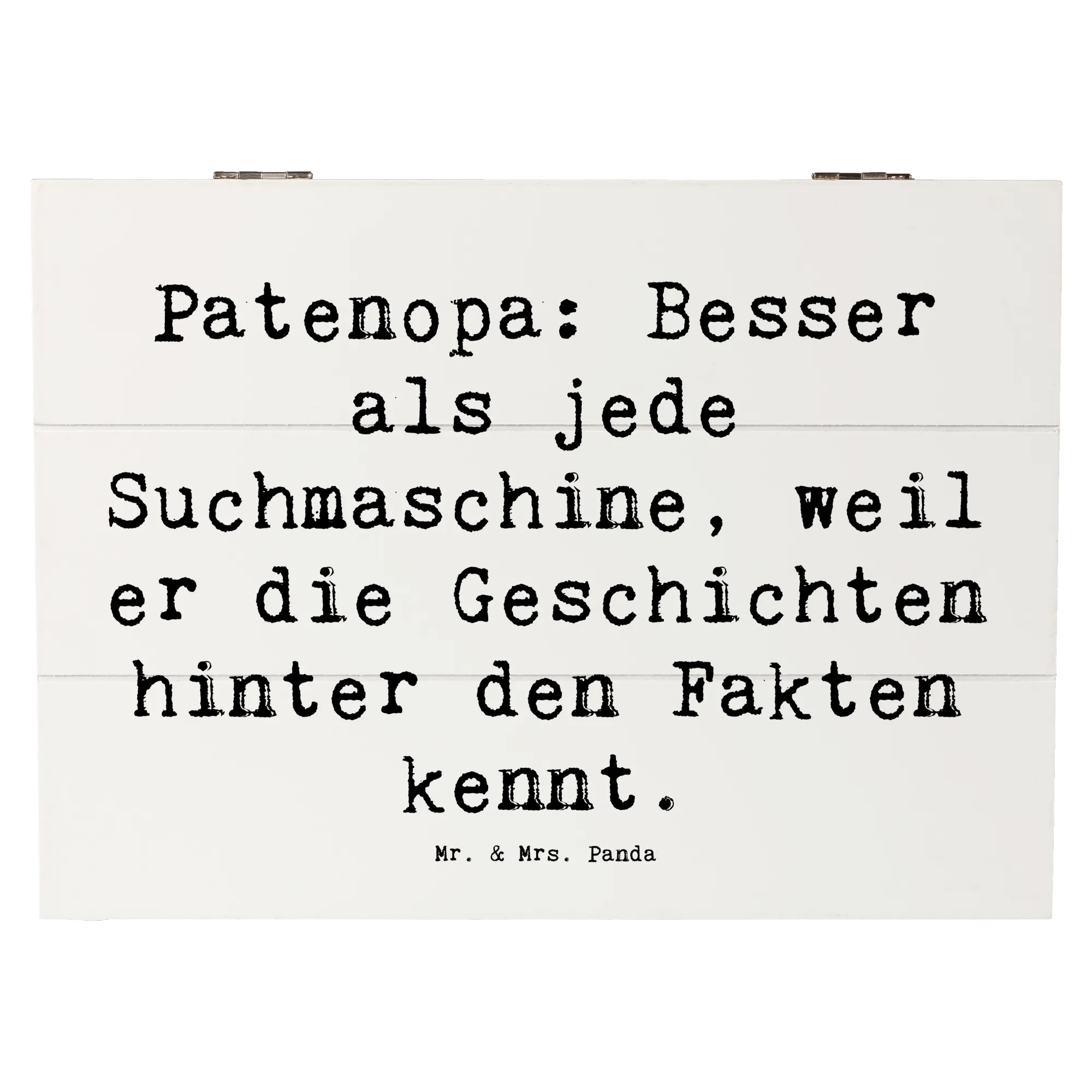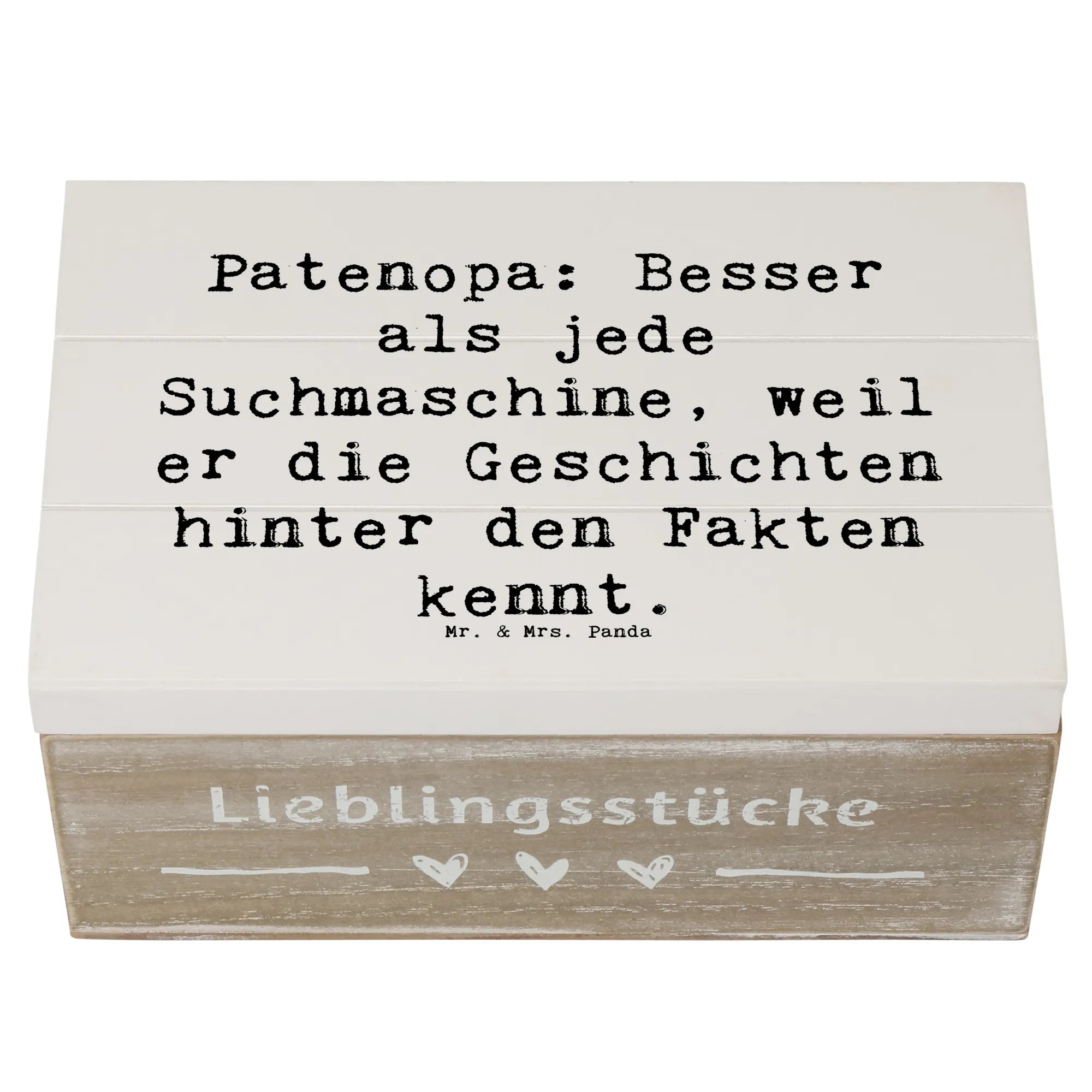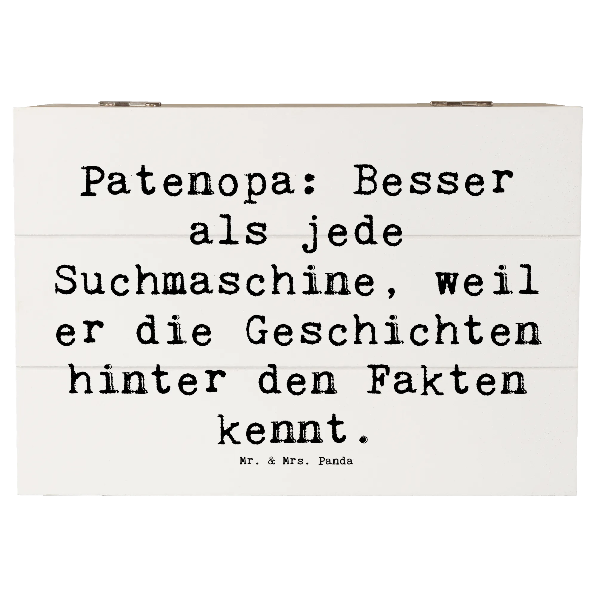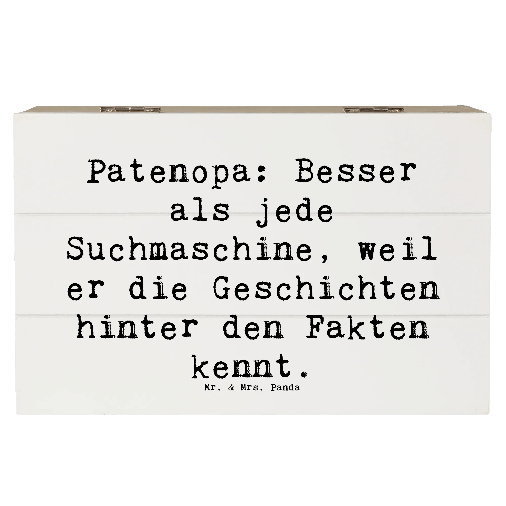 Wooden chest Saying Patenopa: Besser als jede Suchmaschine, weil er die Geschichten hinter den Fakten kennt. - 22 x 15 cm - White