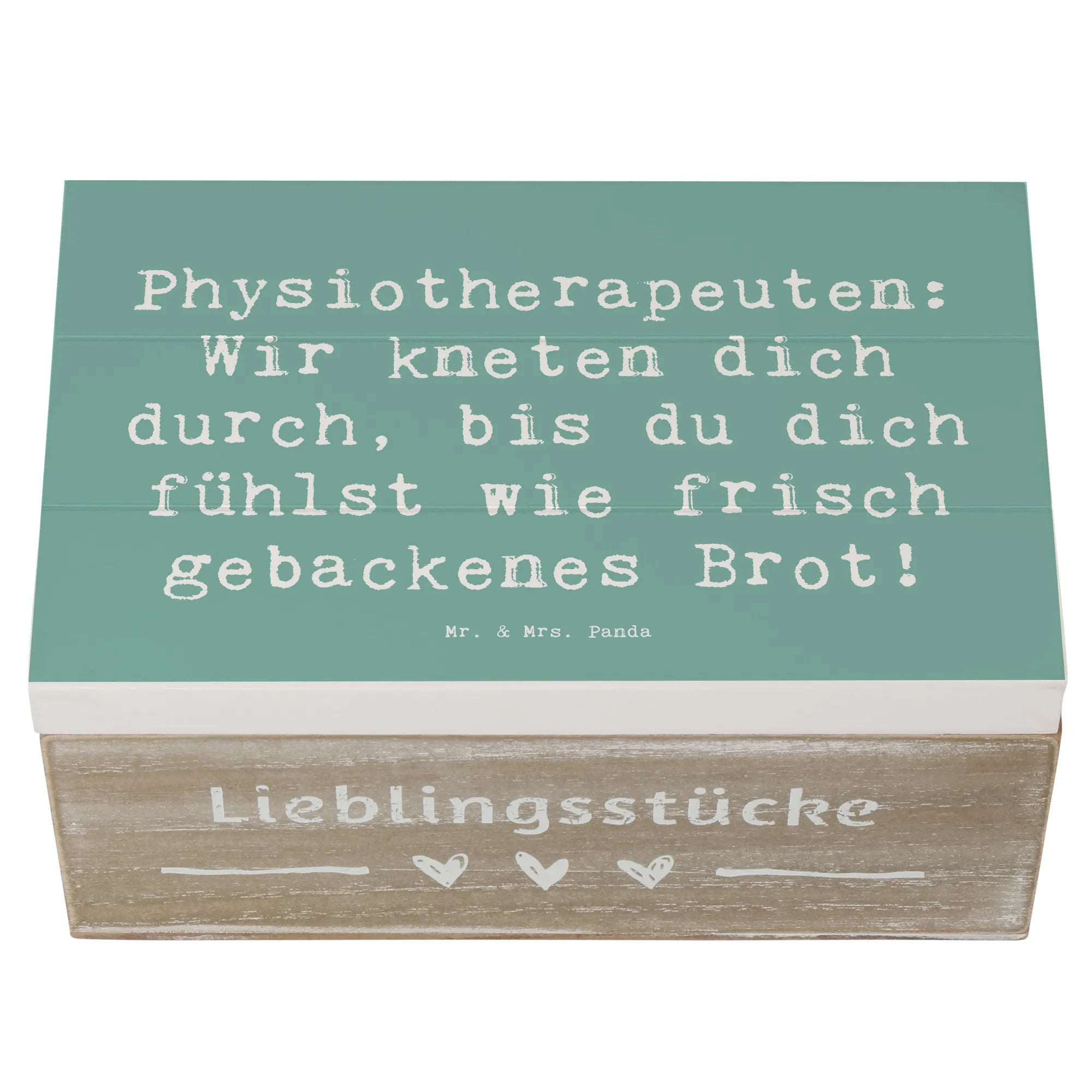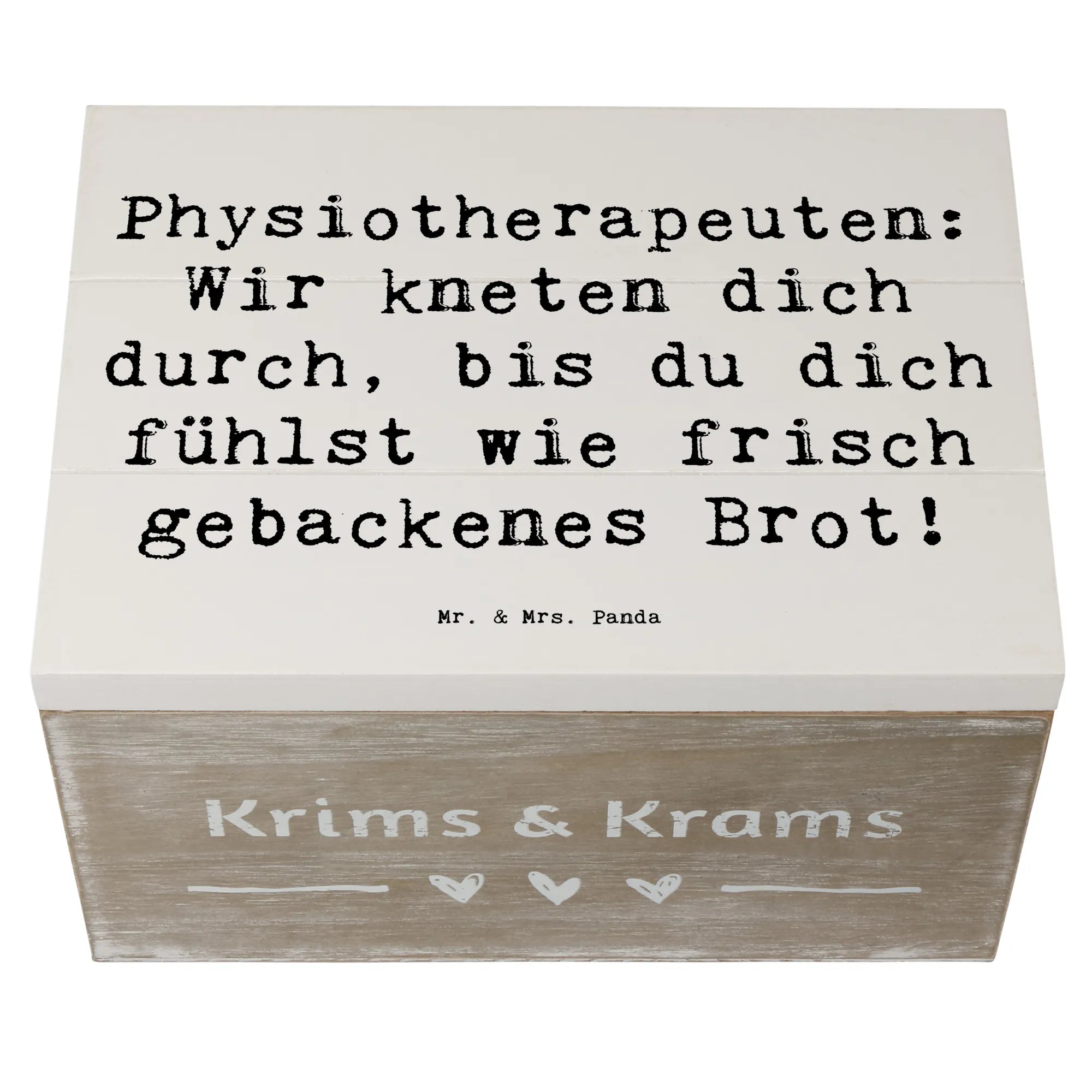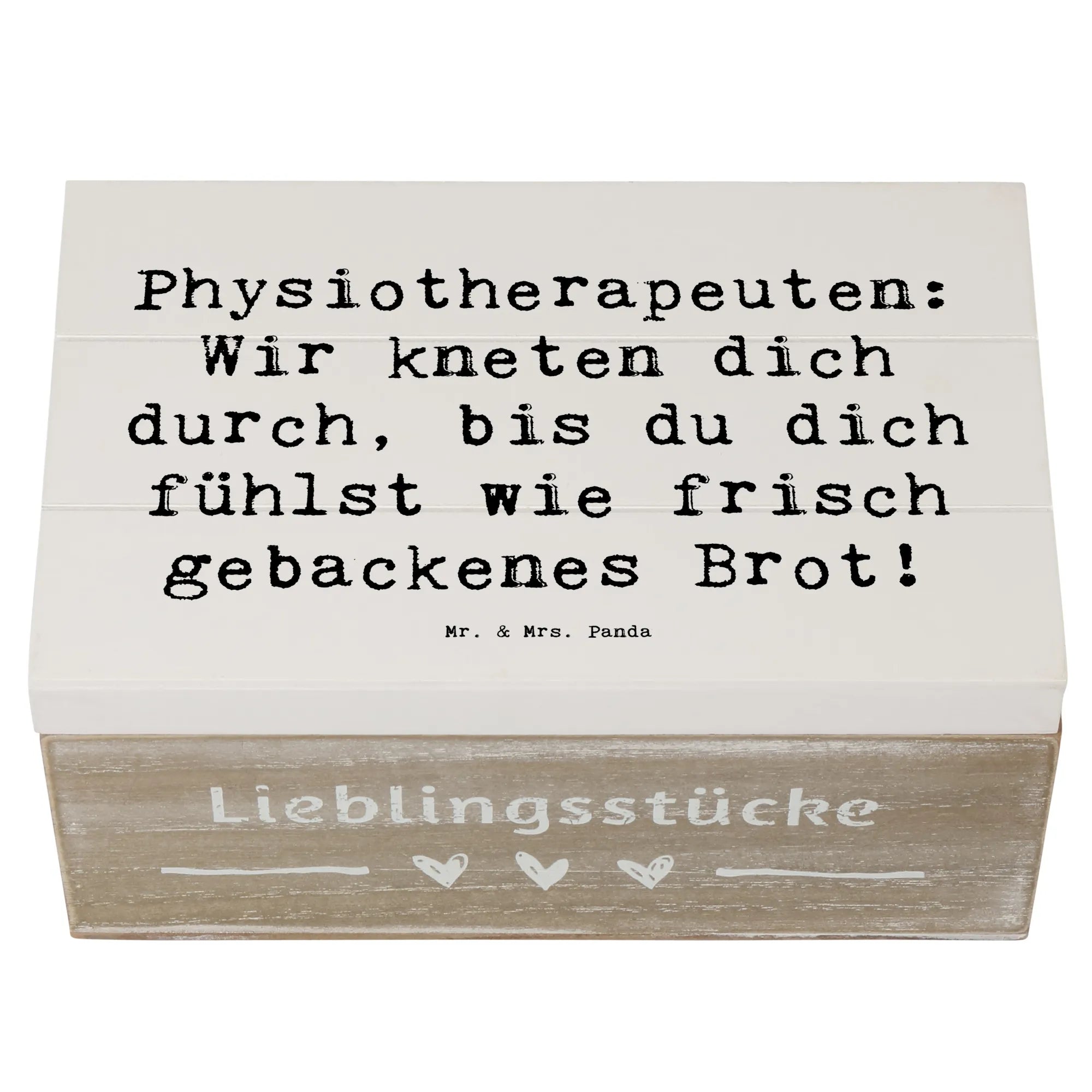 Wooden chest Saying Physiotherapeuten: Wir kneten dich durch, bis du dich fühlst wie frisch gebackenes Brot! - 22 x 15 cm - White