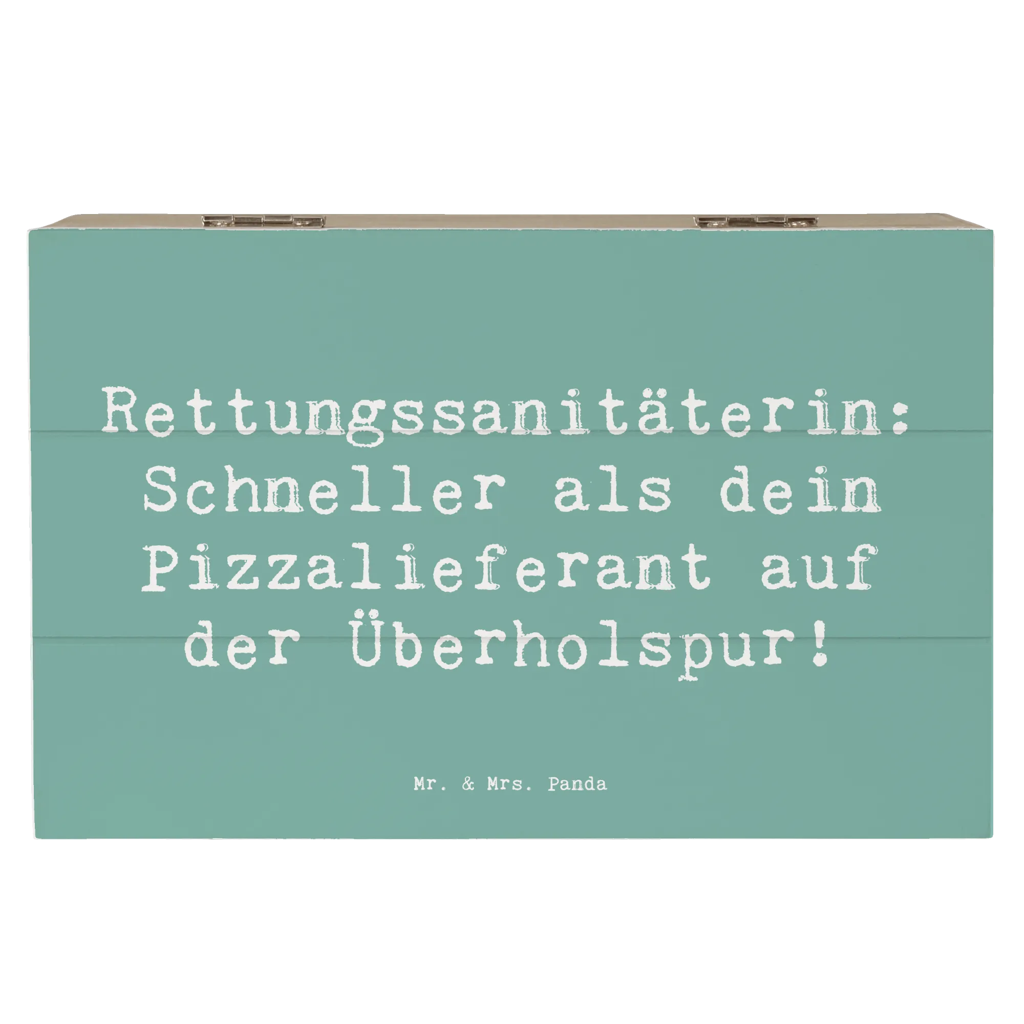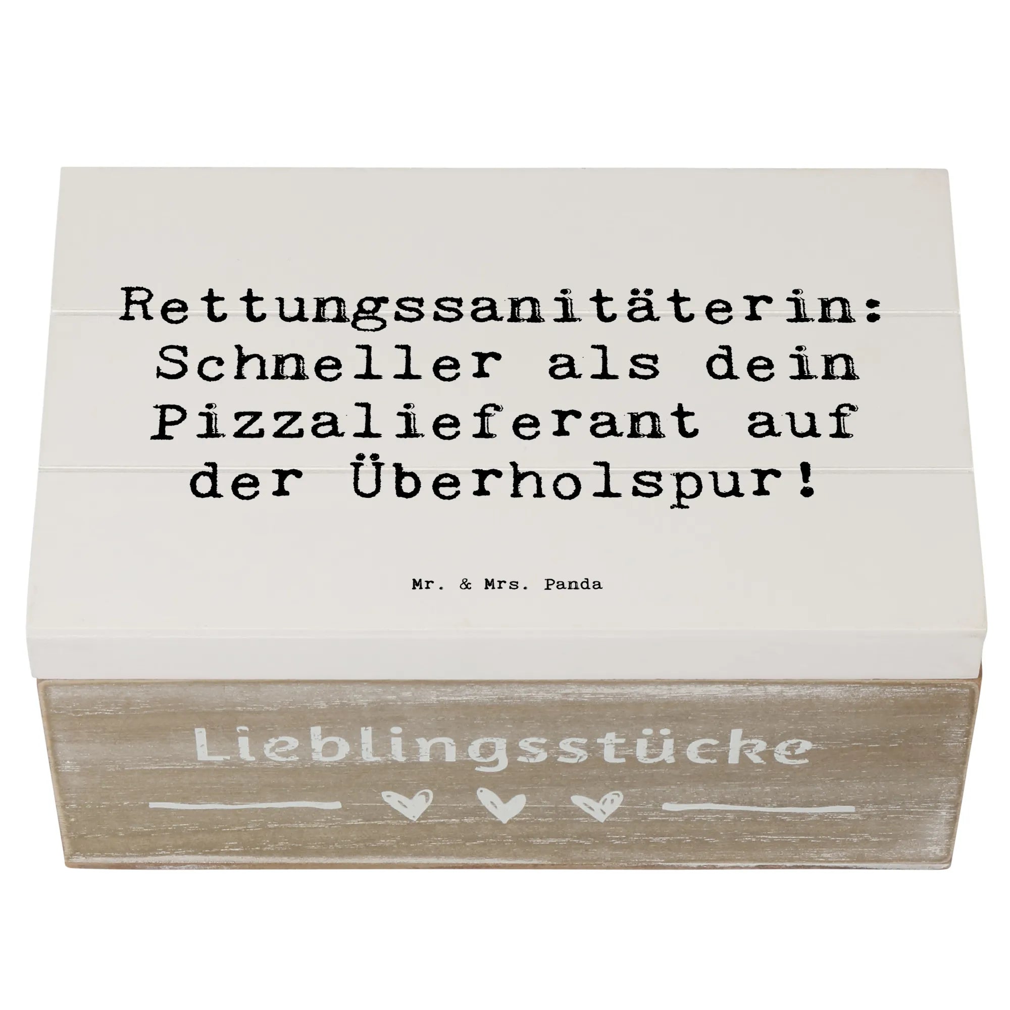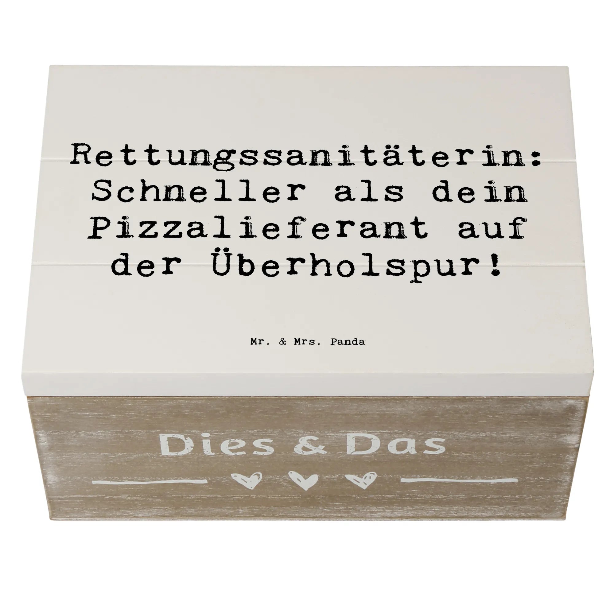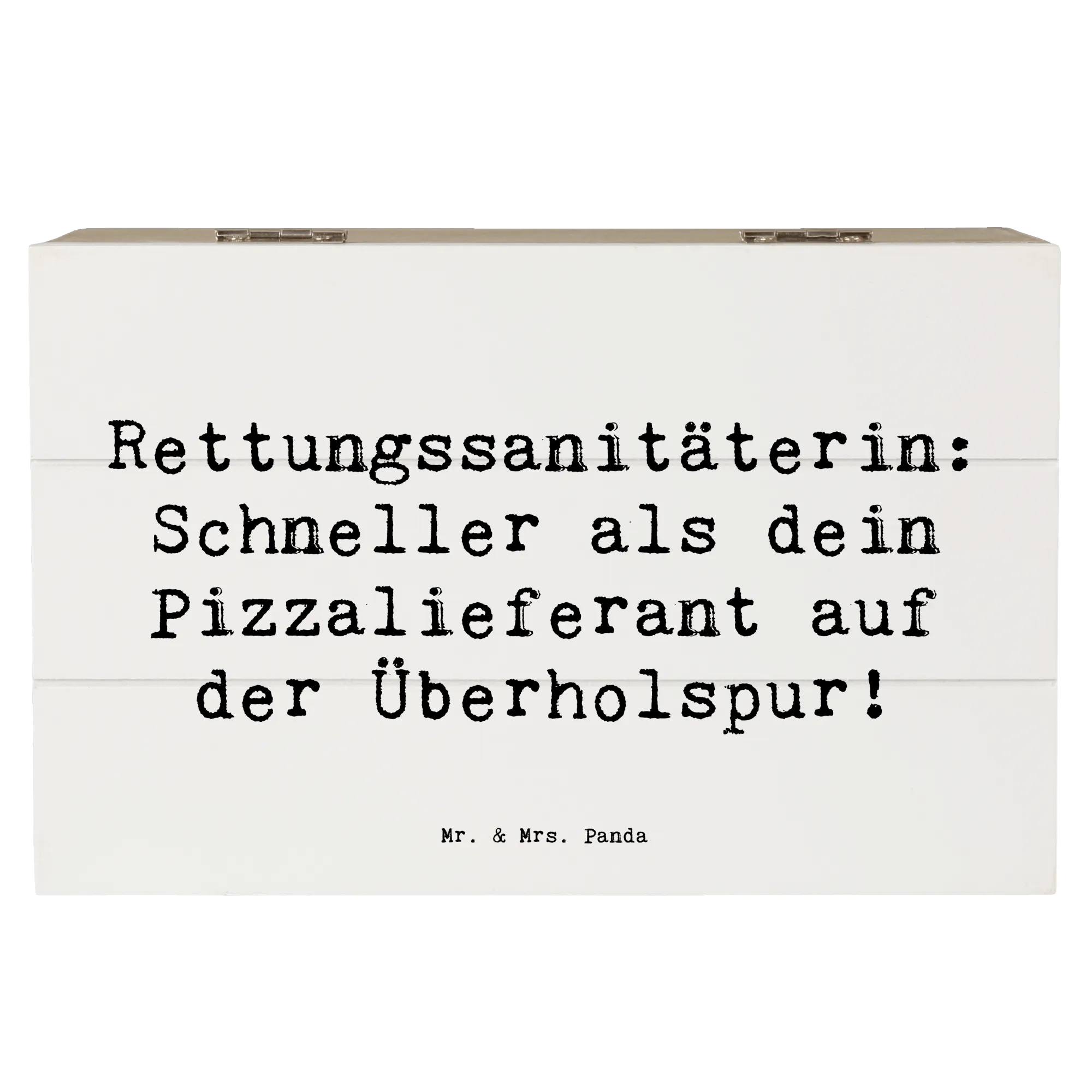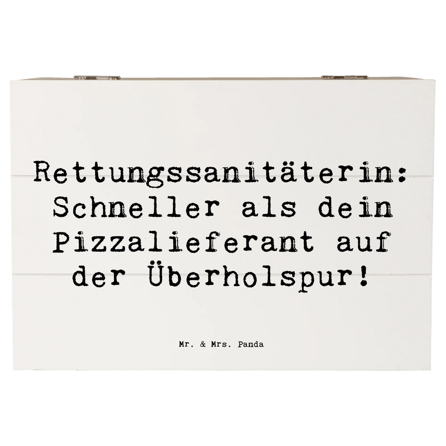Wooden chest Saying Rettungssanitäterin: Schneller als dein Pizzalieferant auf der Überholspur! - 22 x 15 cm - White