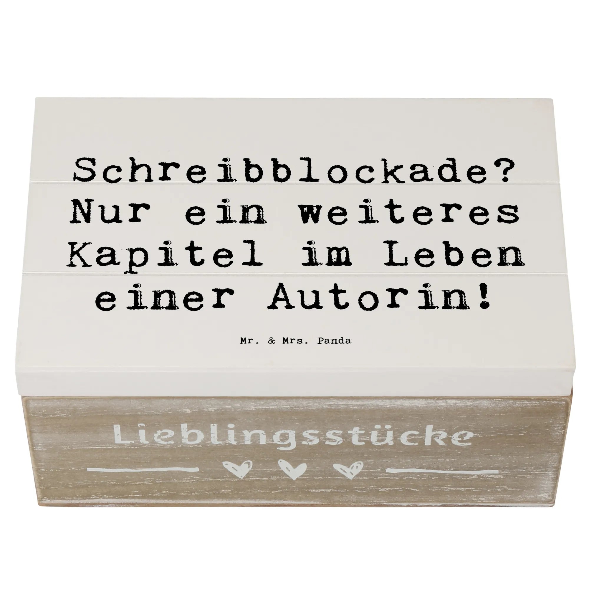Wooden chest Saying Schreibblockade? Nur ein weiteres Kapitel im Leben – Mr. & Mrs. Panda