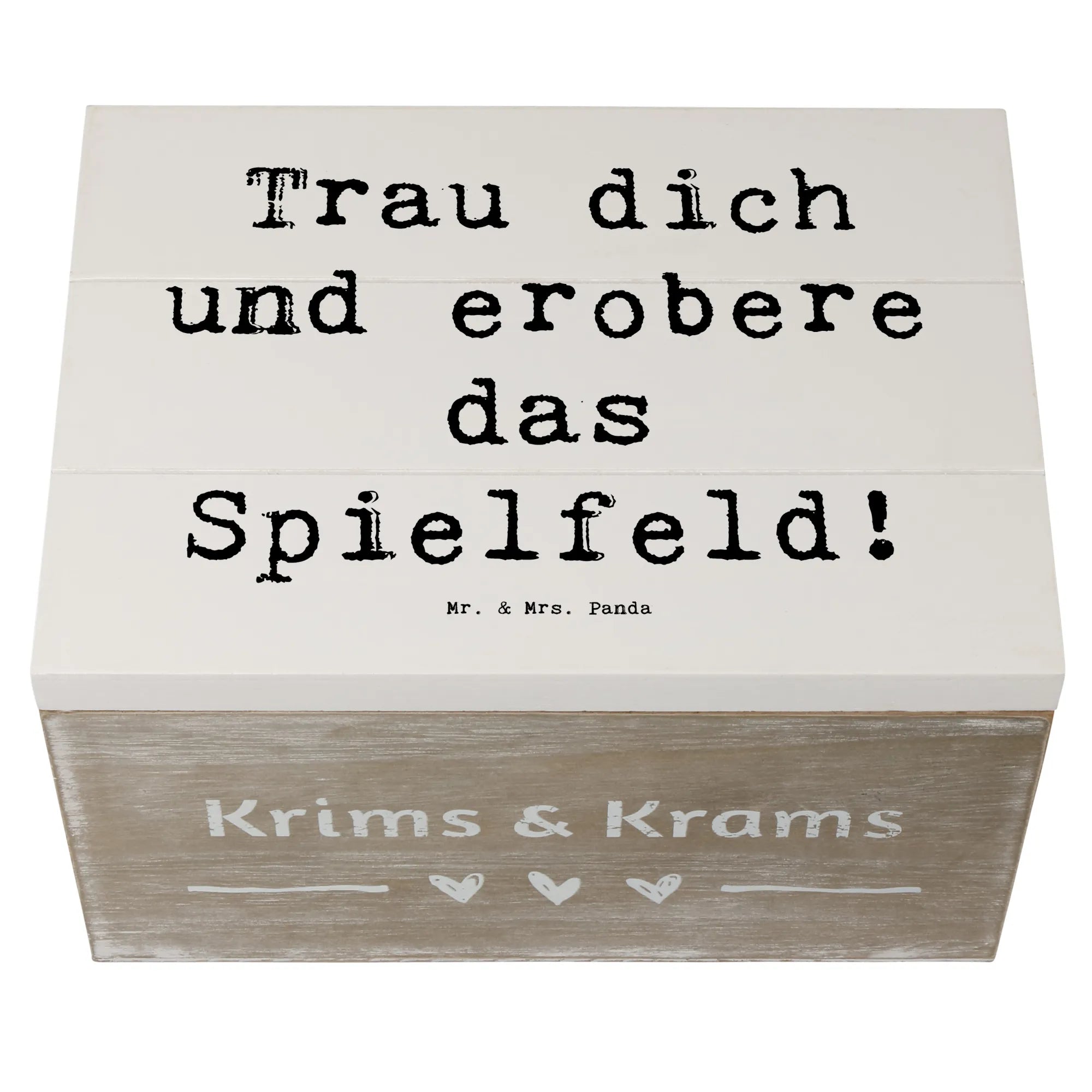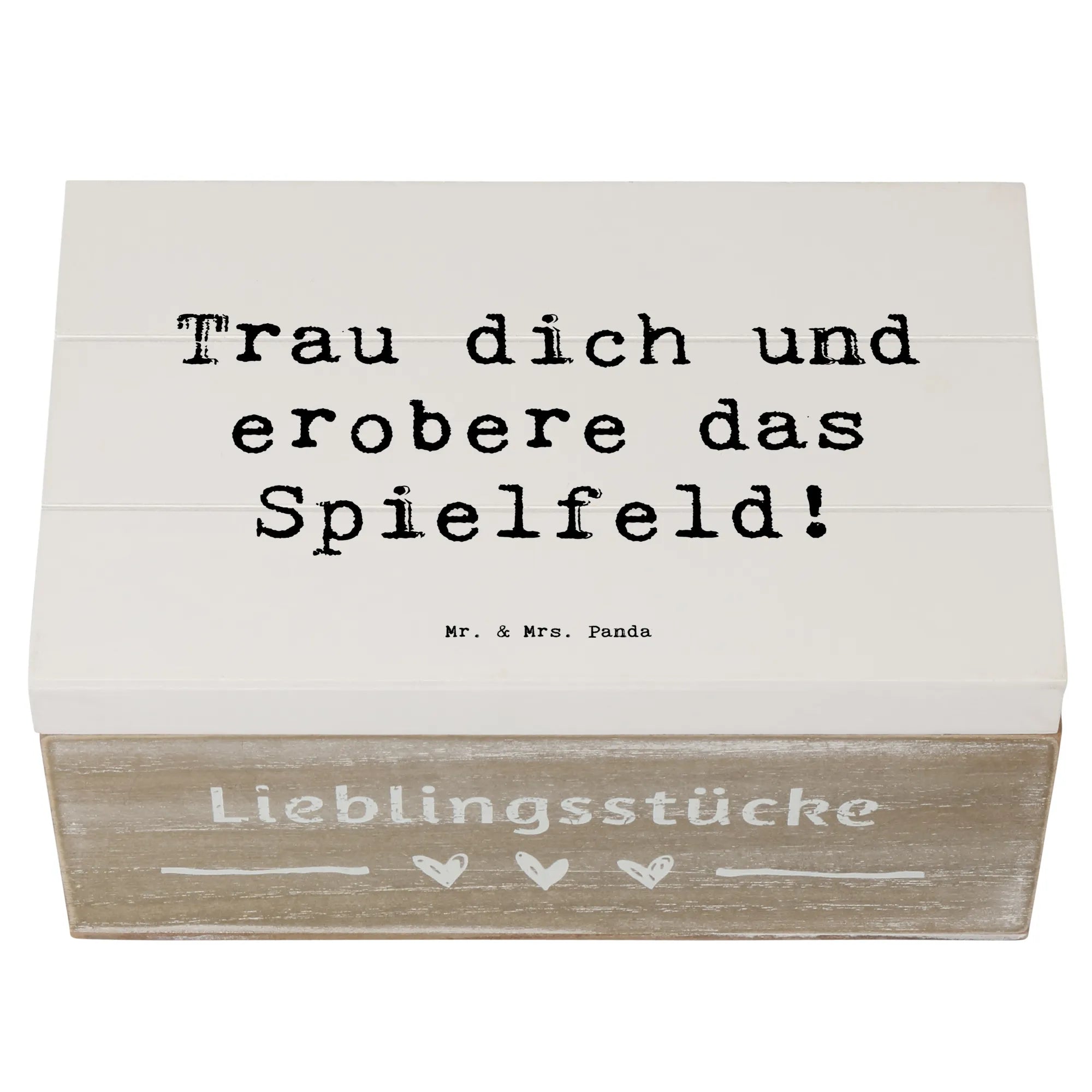 Wooden chest Saying Trau dich und erobere das Spielfeld! - 22 x 15 cm - White