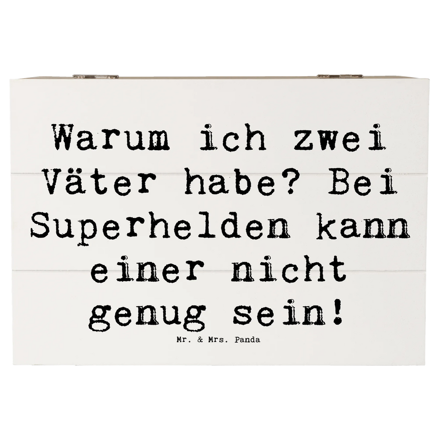 Wooden chest Saying Warum ich zwei Väter habe? Bei Superhelden kann einer nicht genug sein! - 22 x 15 cm - White