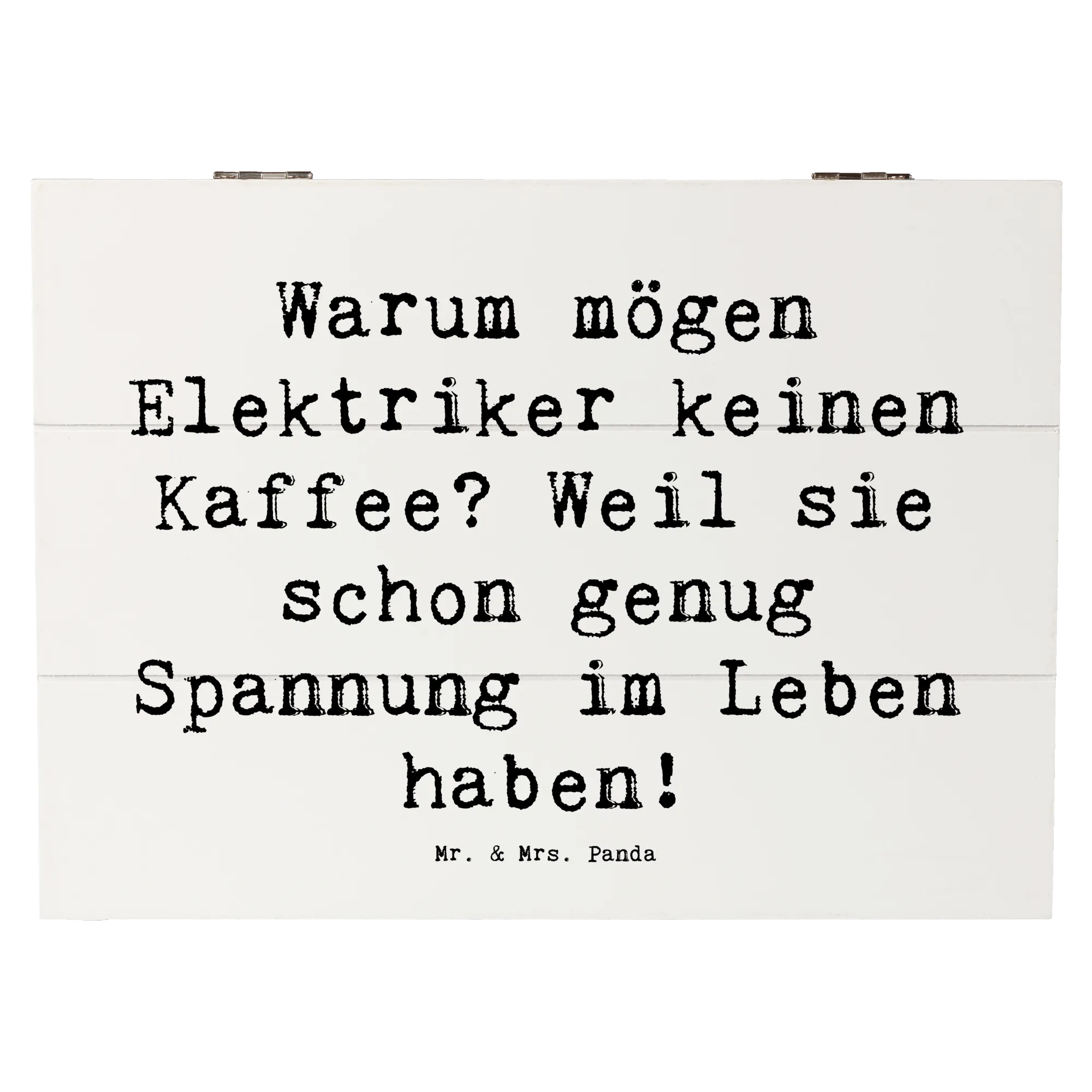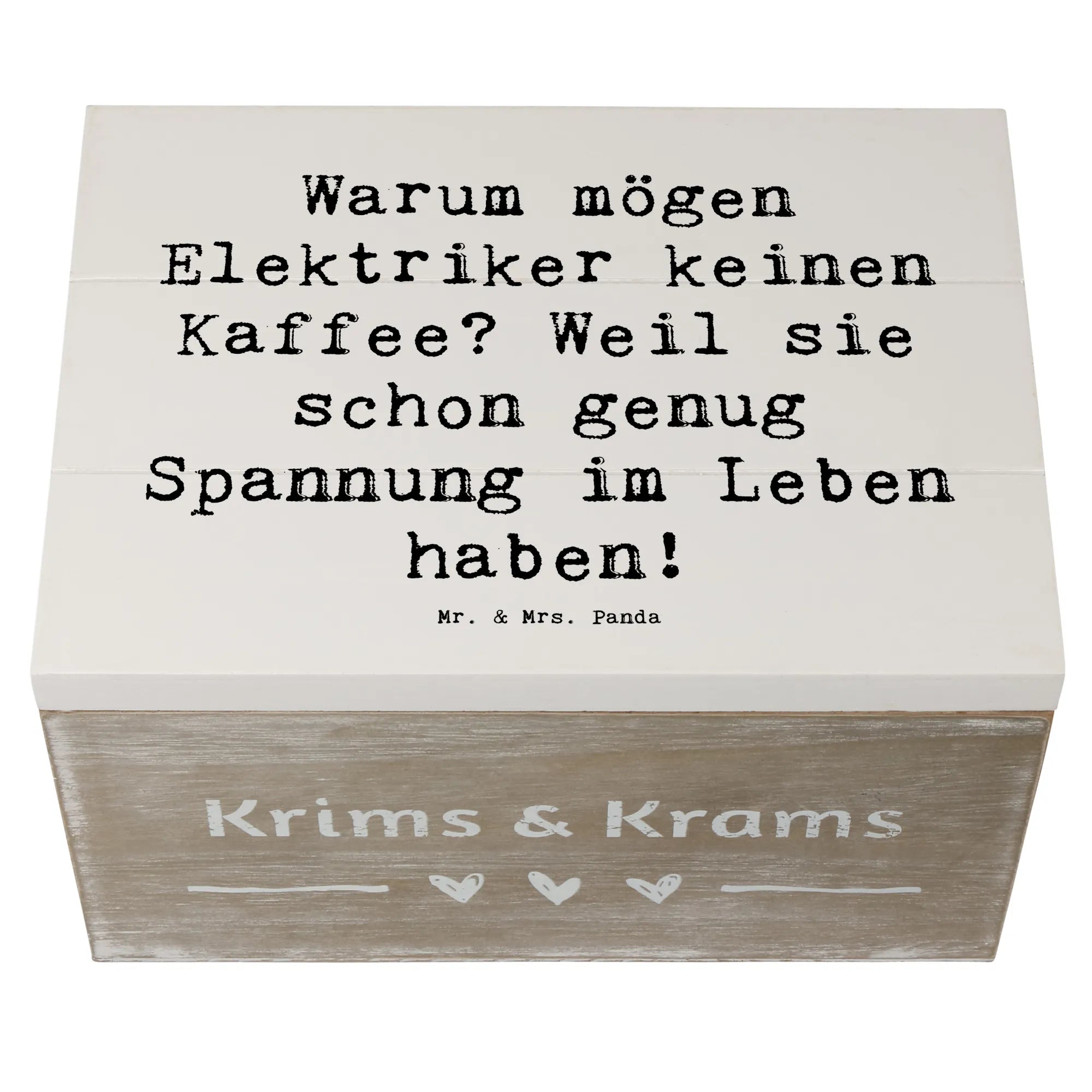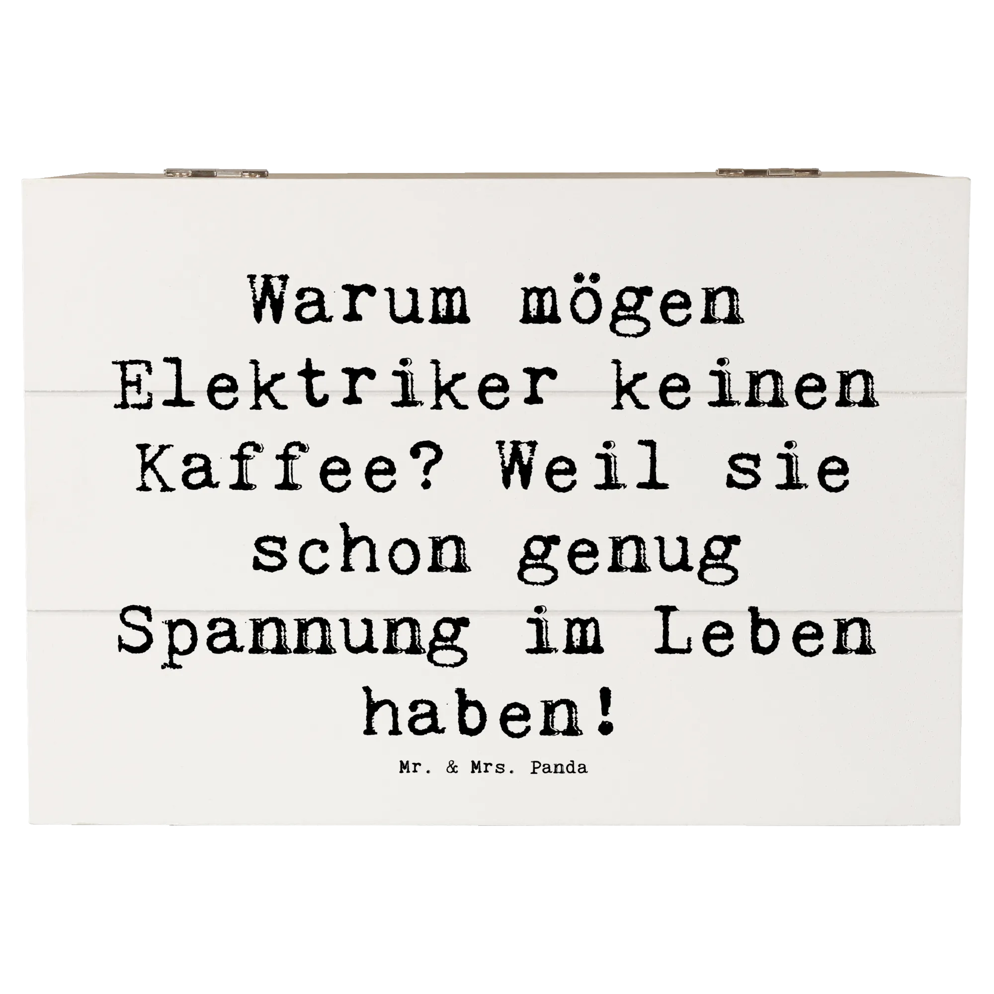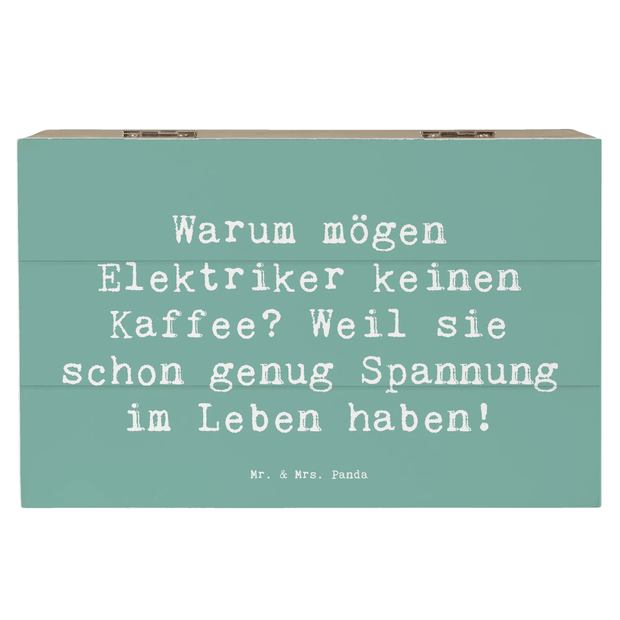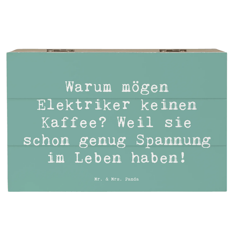 Wooden chest Saying Warum mögen Elektriker keinen Kaffee? Weil sie schon genug Spannung im Leben haben! - 19 x 12 cm - Meeresbrise