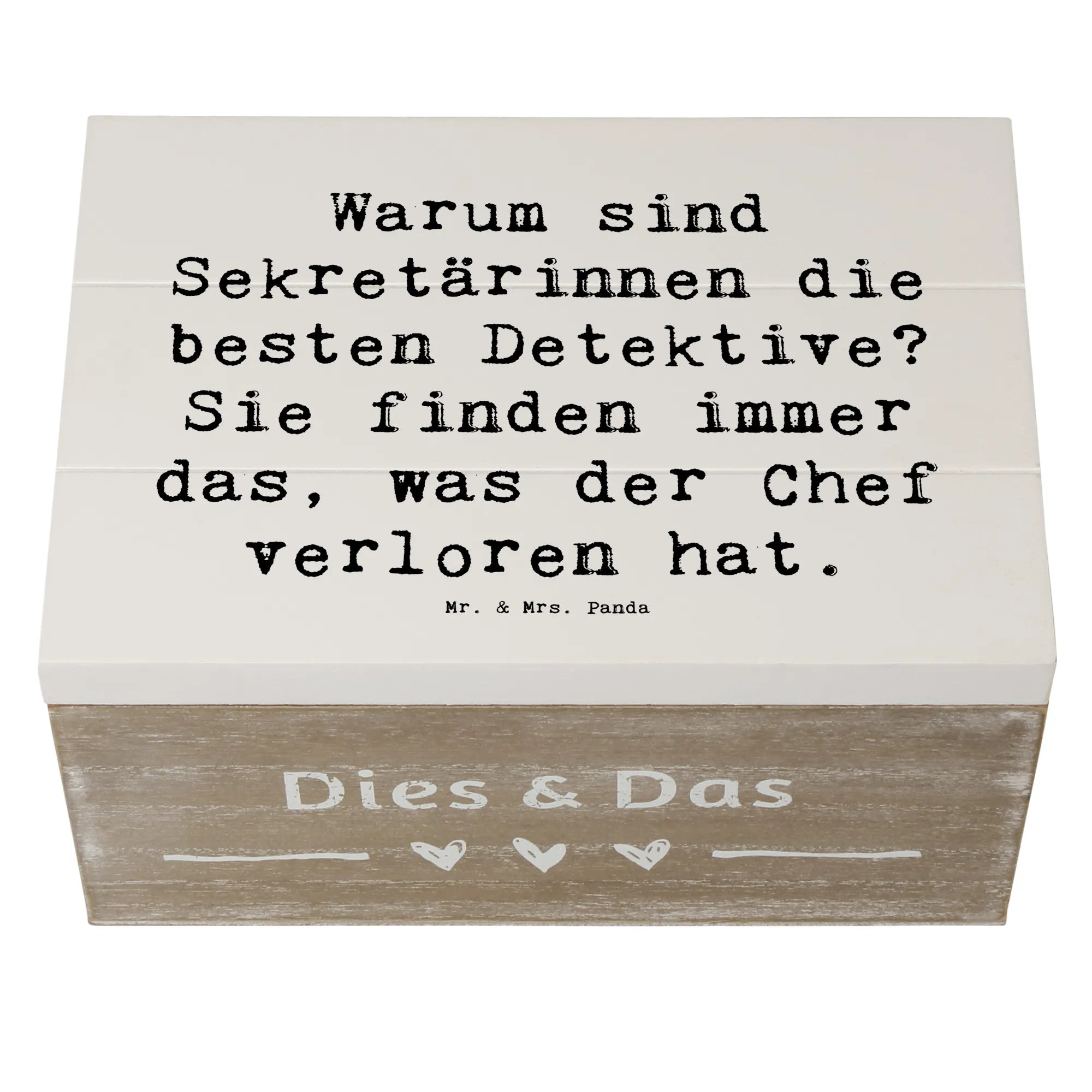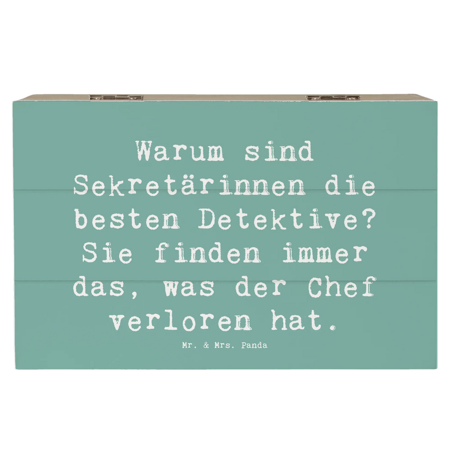 Wooden chest Saying Warum sind Sekretärinnen die besten Detektive? Sie finden immer das, was der Chef verloren hat. - 19 x 12 cm - Meeresbrise