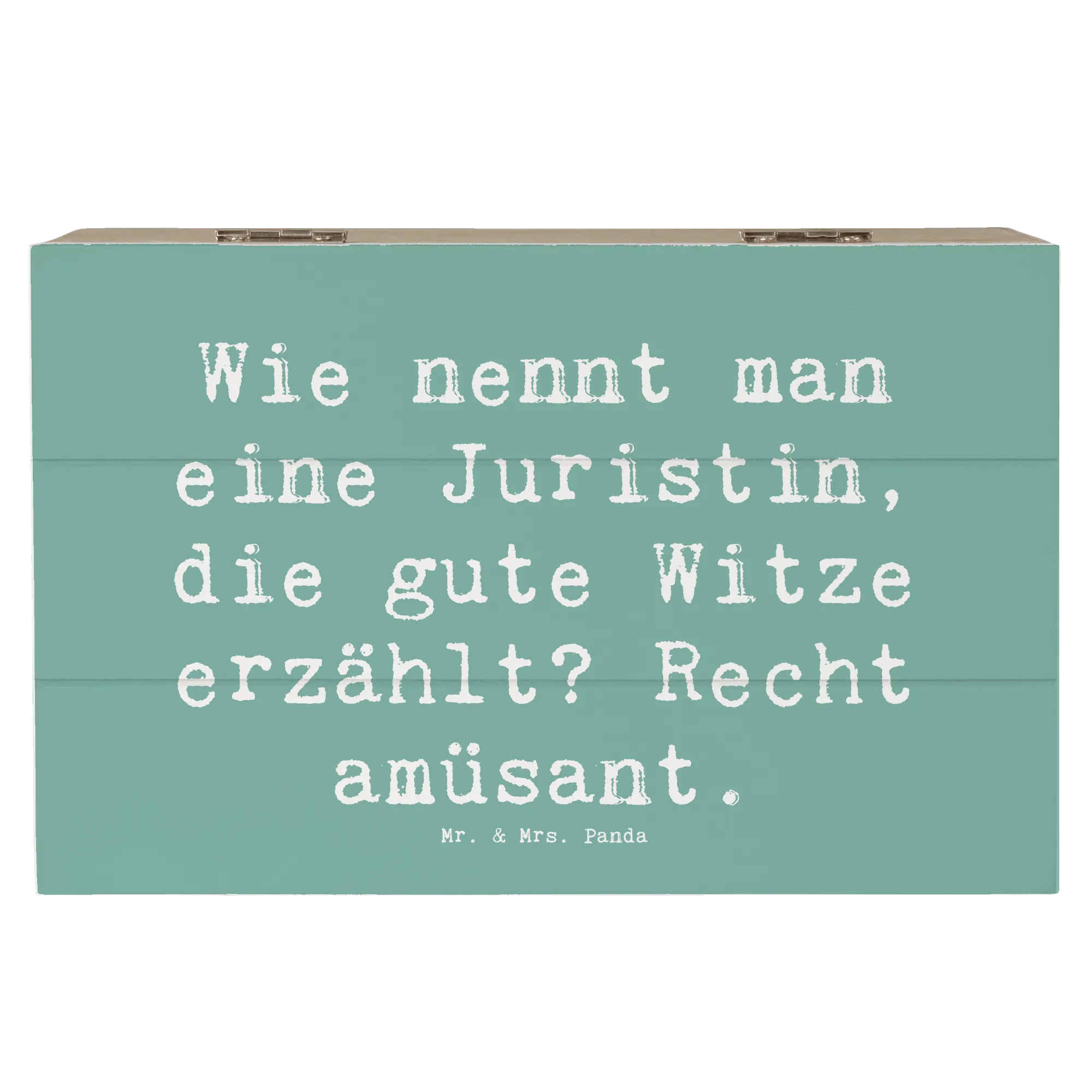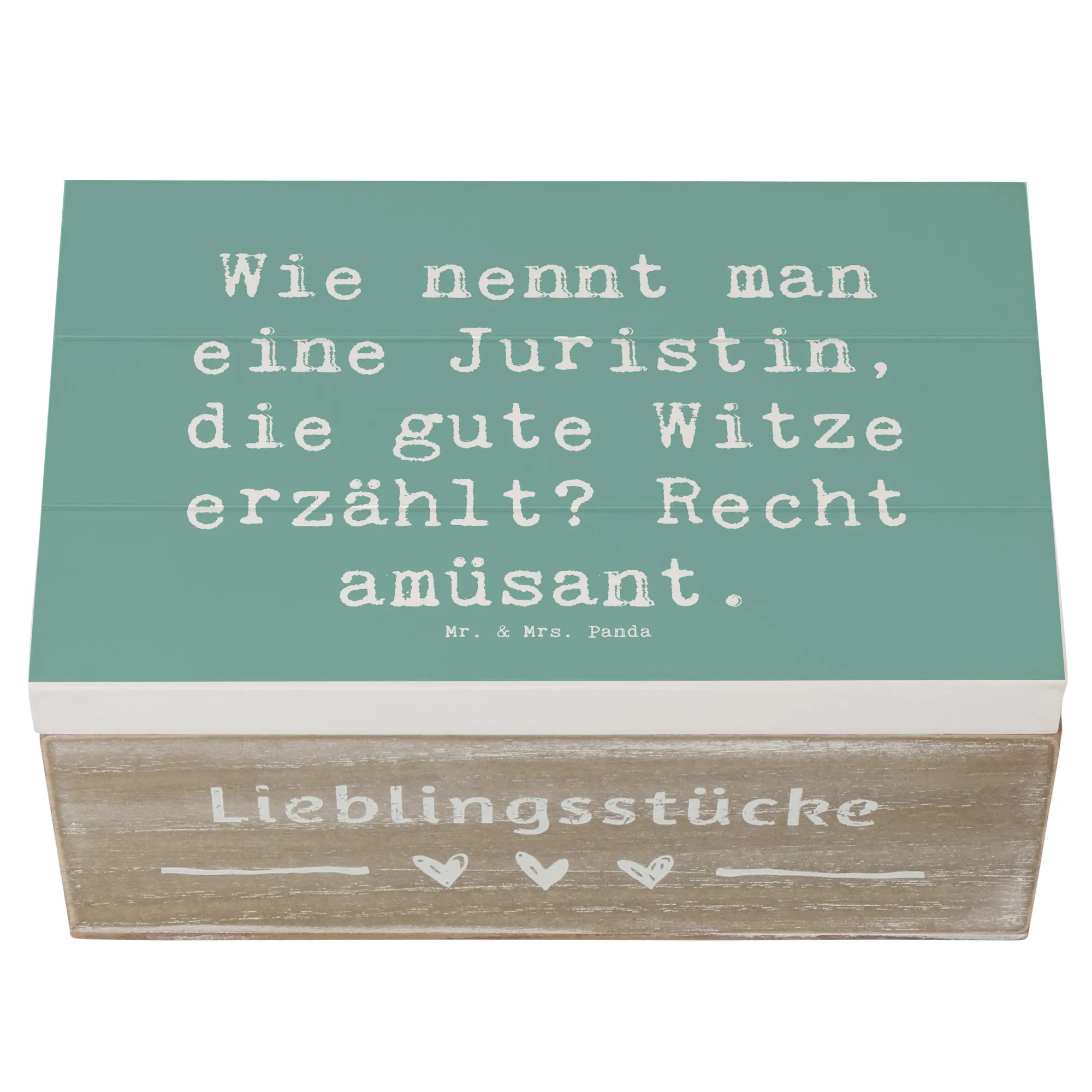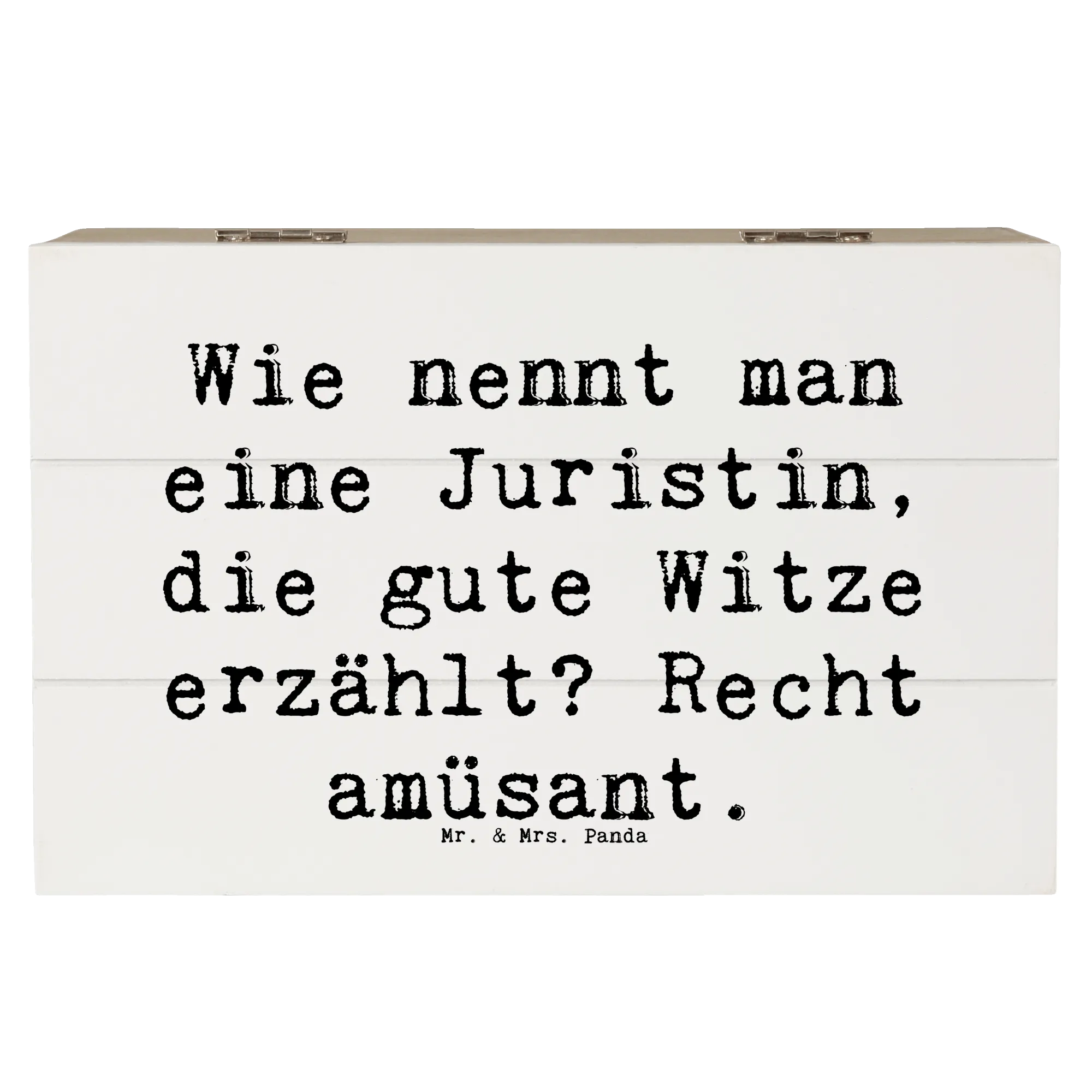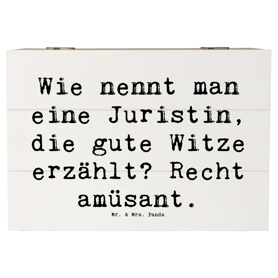 Wooden chest Saying Wie nennt man eine Juristin, die gute Witze erzählt? Recht amüsant. - 22 x 15 cm - White