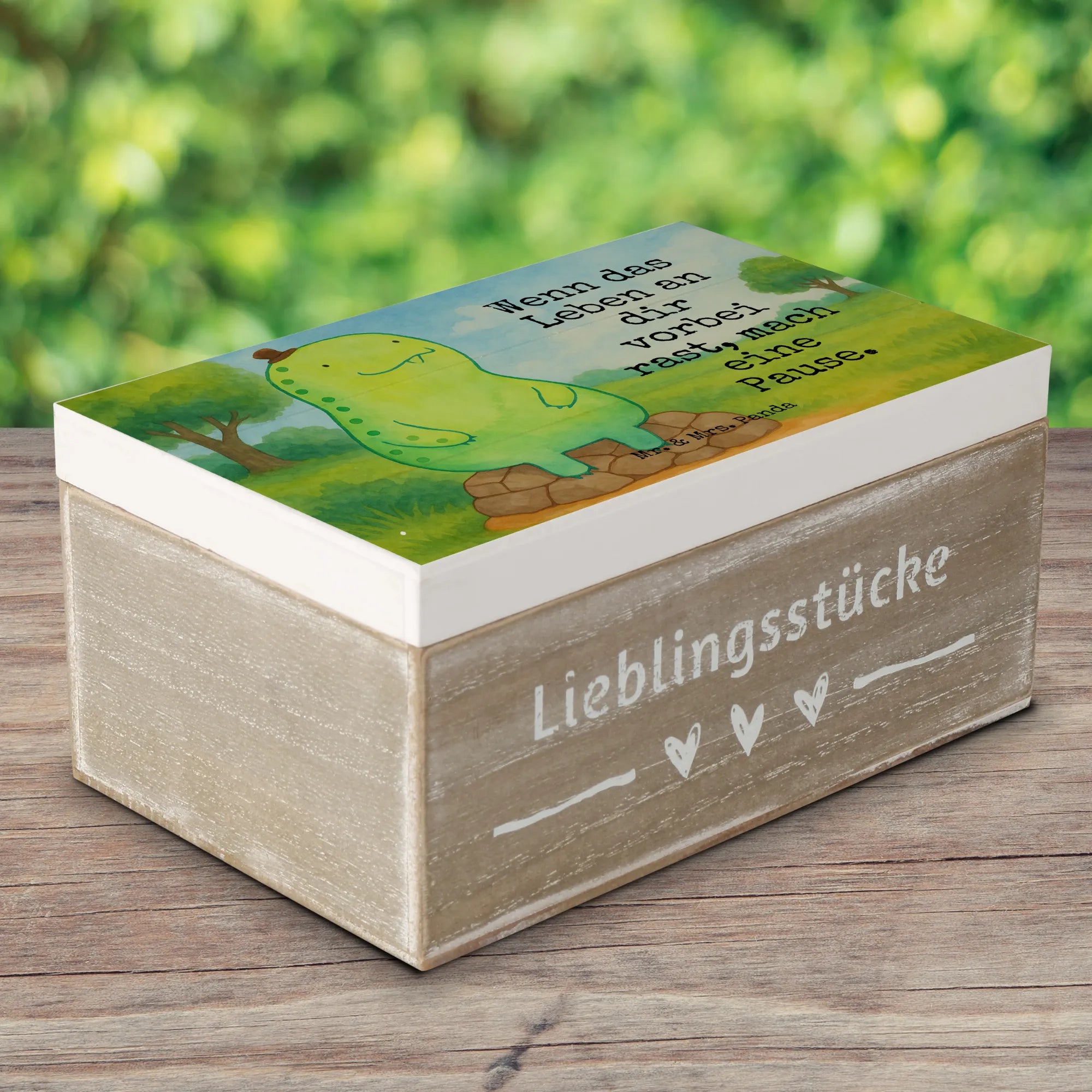Wooden chest tortoise Break Design - 19 x 12 cm - with saying