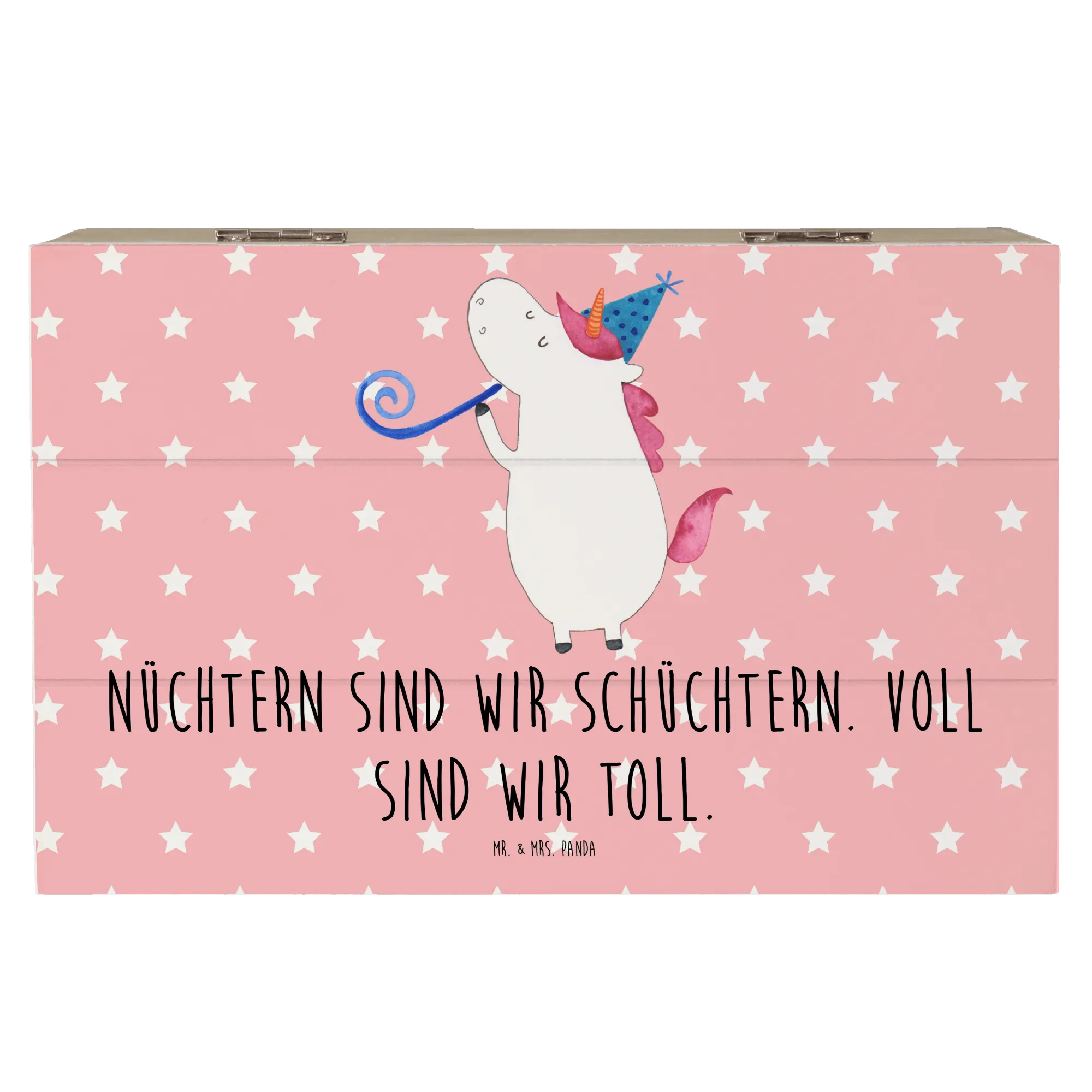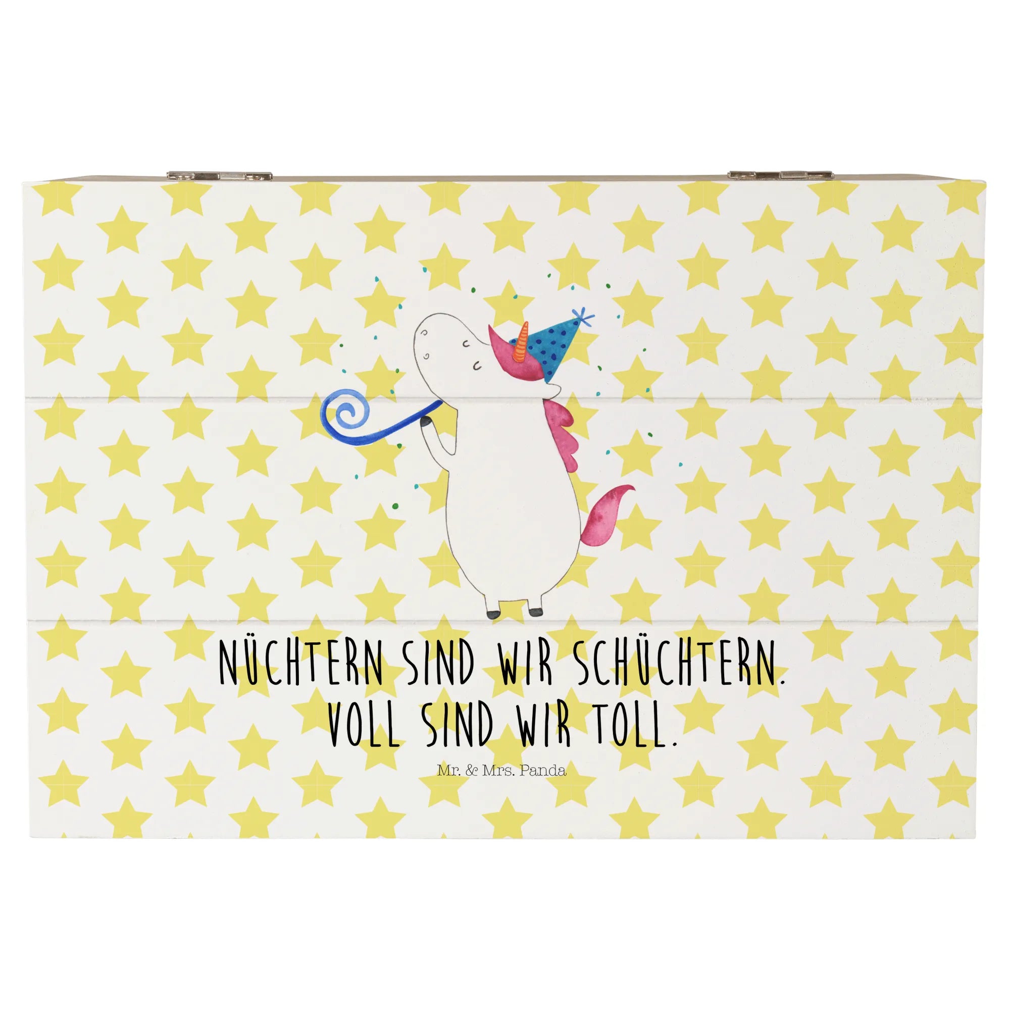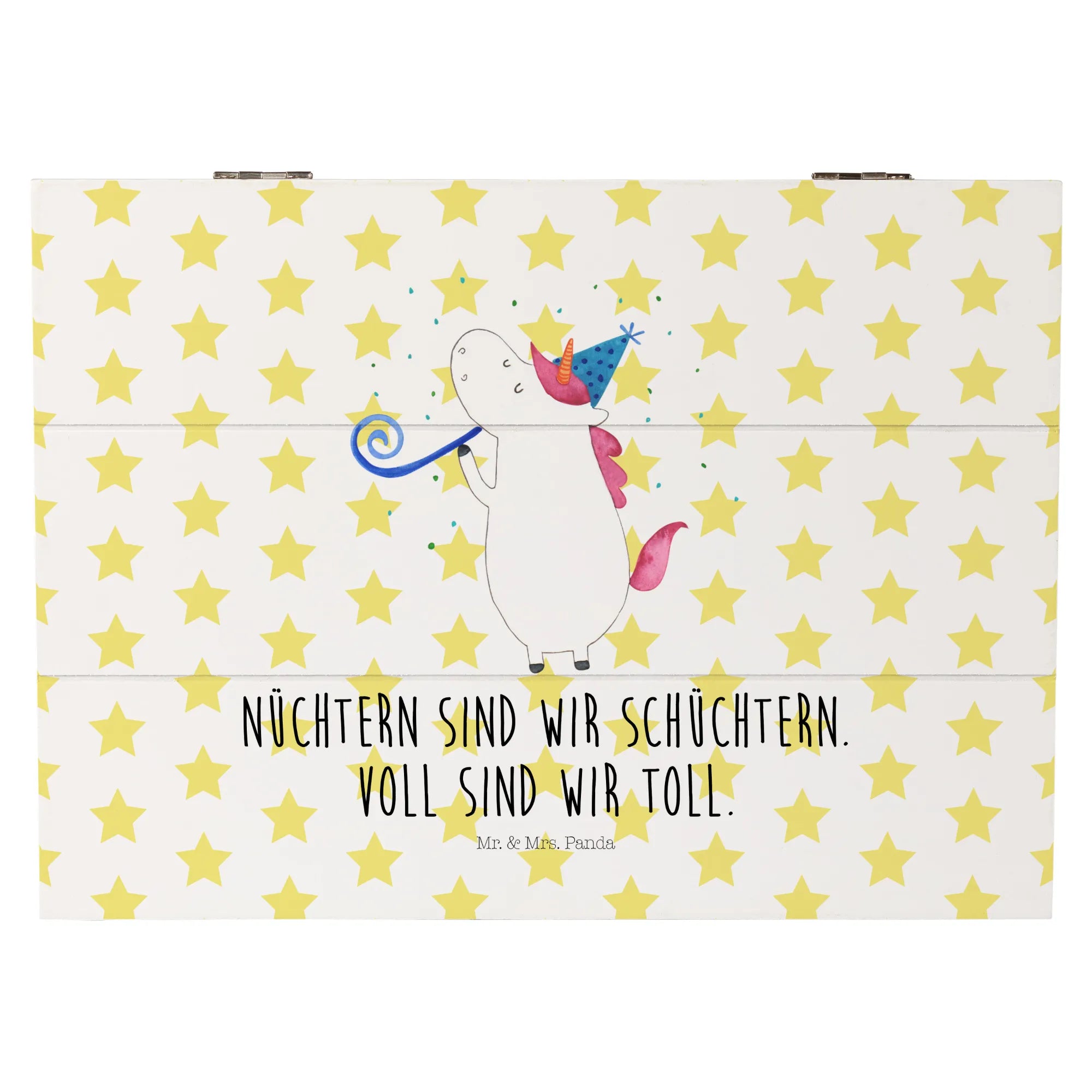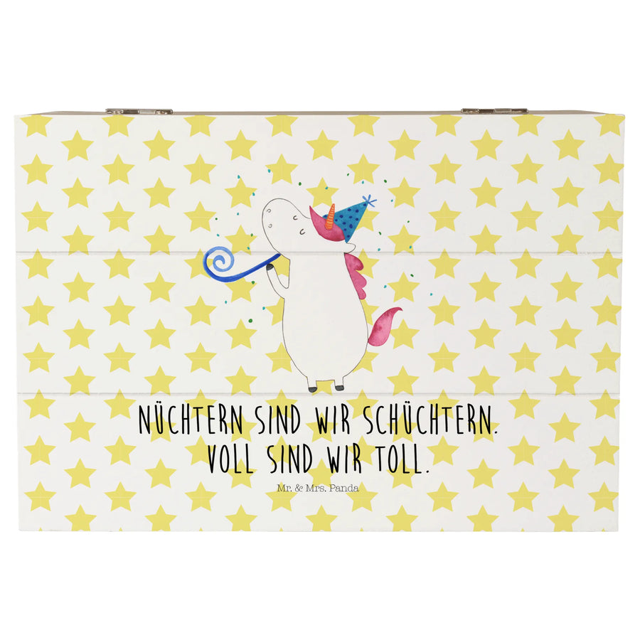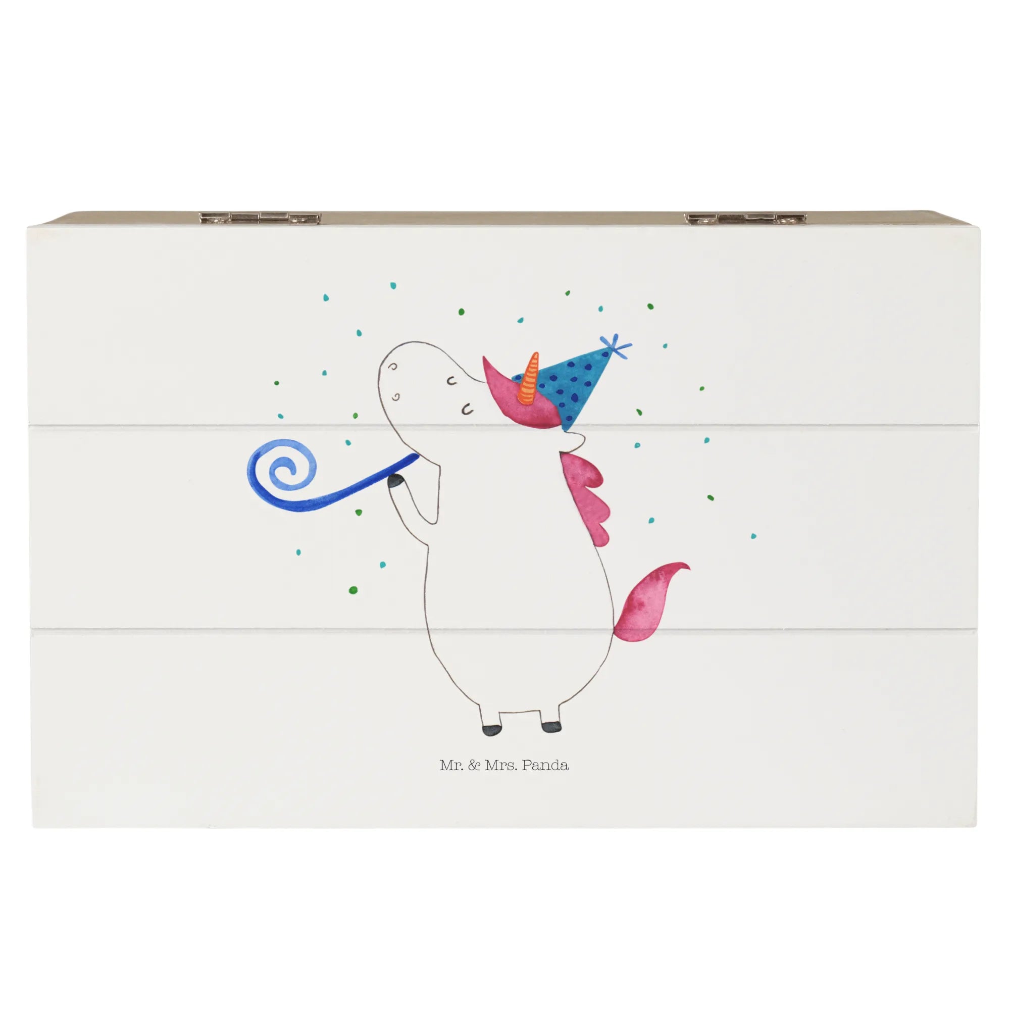 Wooden chest unicorn party - 22 x 15 cm - with saying - White