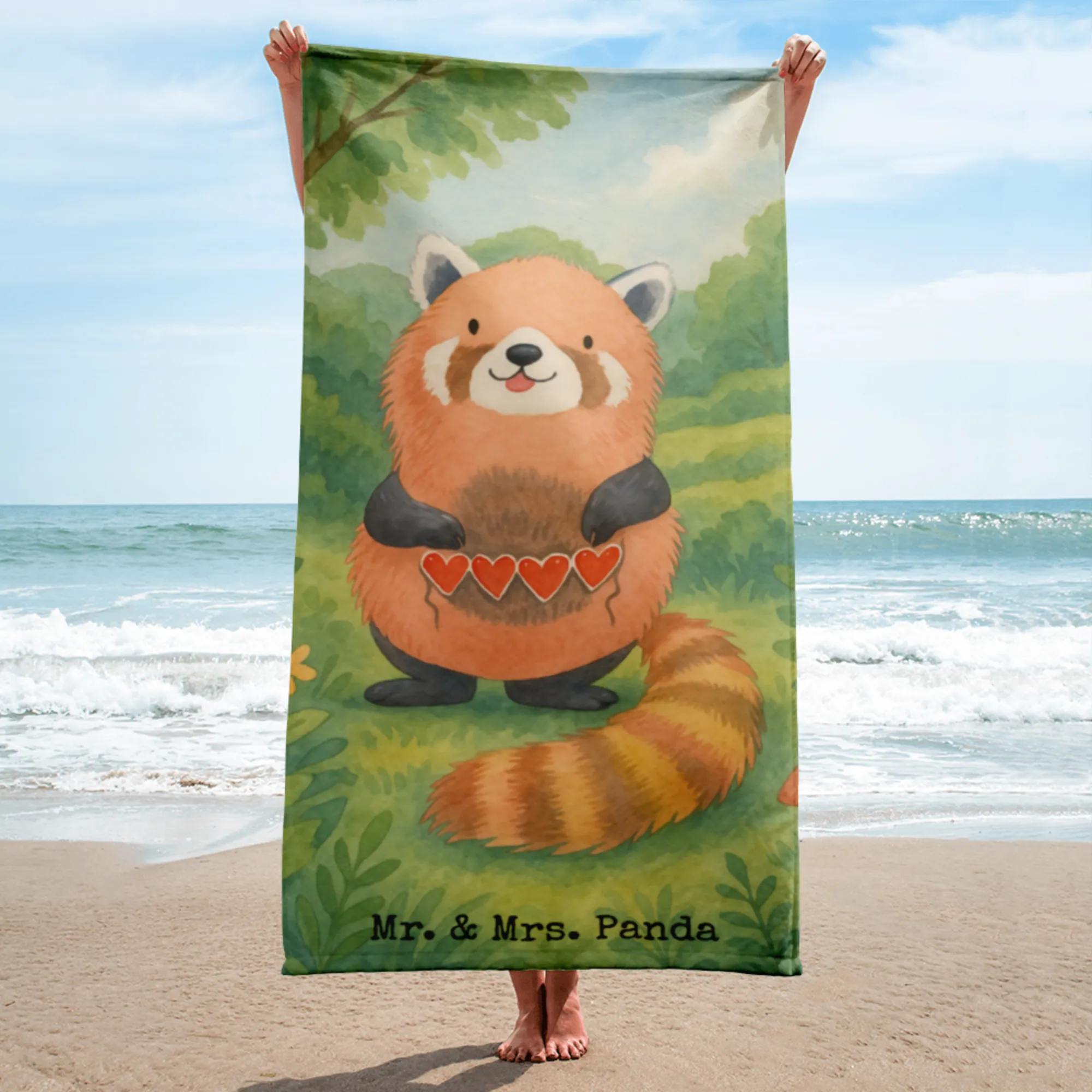 XL Badehandtuch Roter Panda Design Handtuch, Badetuch, Duschtuch, Strandtuch, Saunatuch, Tiermotive, Gute Laune, lustige Sprüche, Tiere, Panda, Liebe, Rot, Herz, Liebling, Lieblingsmensch
