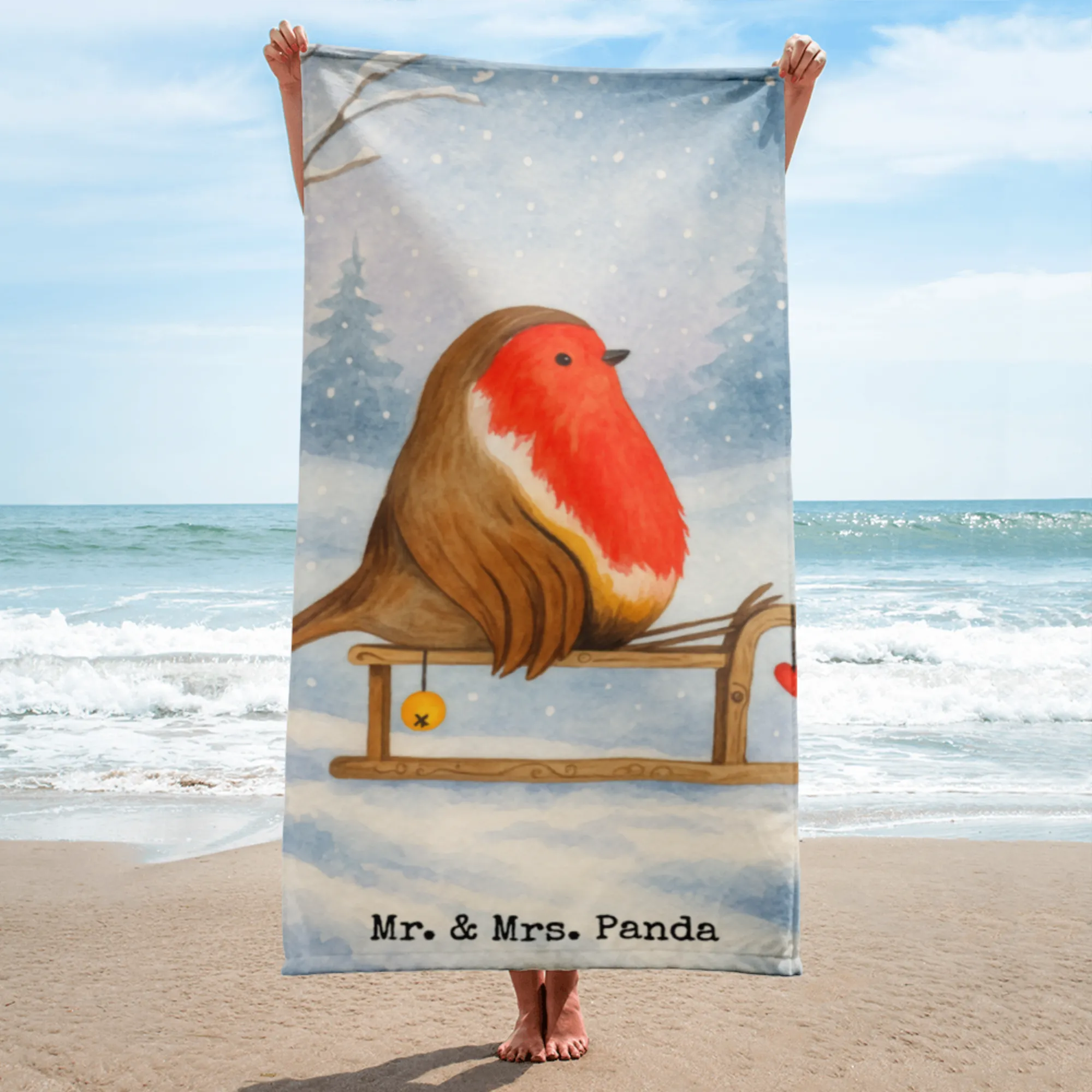 XL Badehandtuch Rotkehlchen Schlitten Design – Mr. & Mrs. Panda
