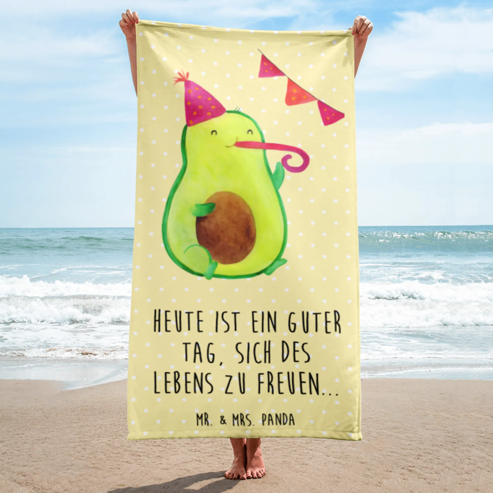 XL bath towel avocado party - with saying - Pastel Yellow