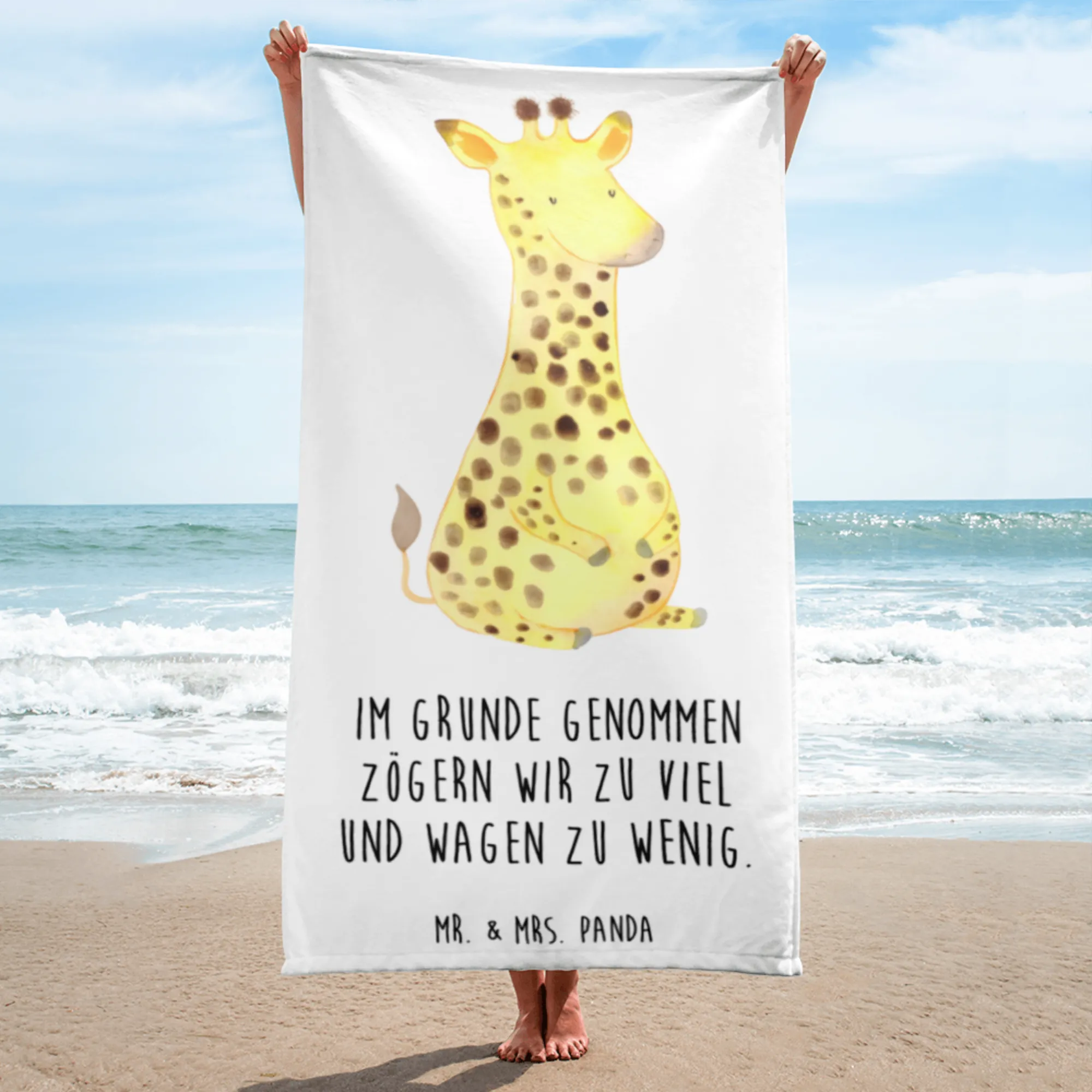 Whether you're lounging on sandy shores, splashing around in the pool, or unwinding at the sauna, this oversized towel is designed for maximum comfort and functionality. It's light yet durable, ensuring long-lasting use, which means you can enjoy the cheerful giraffe and its message time and again.