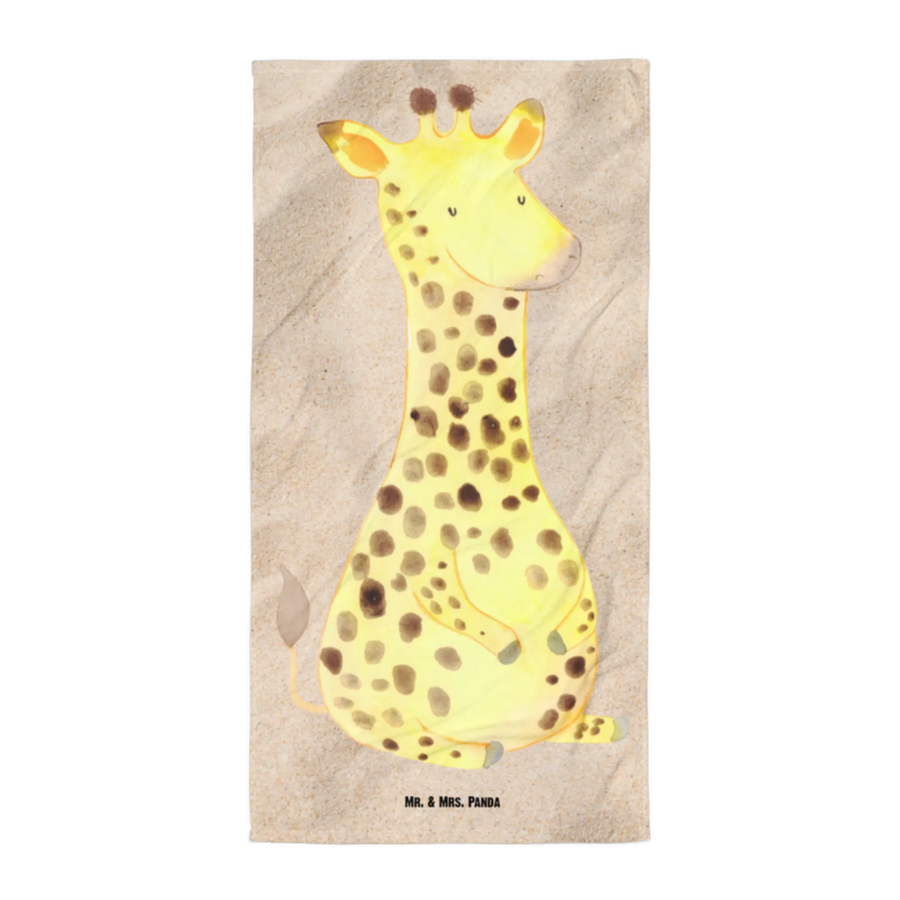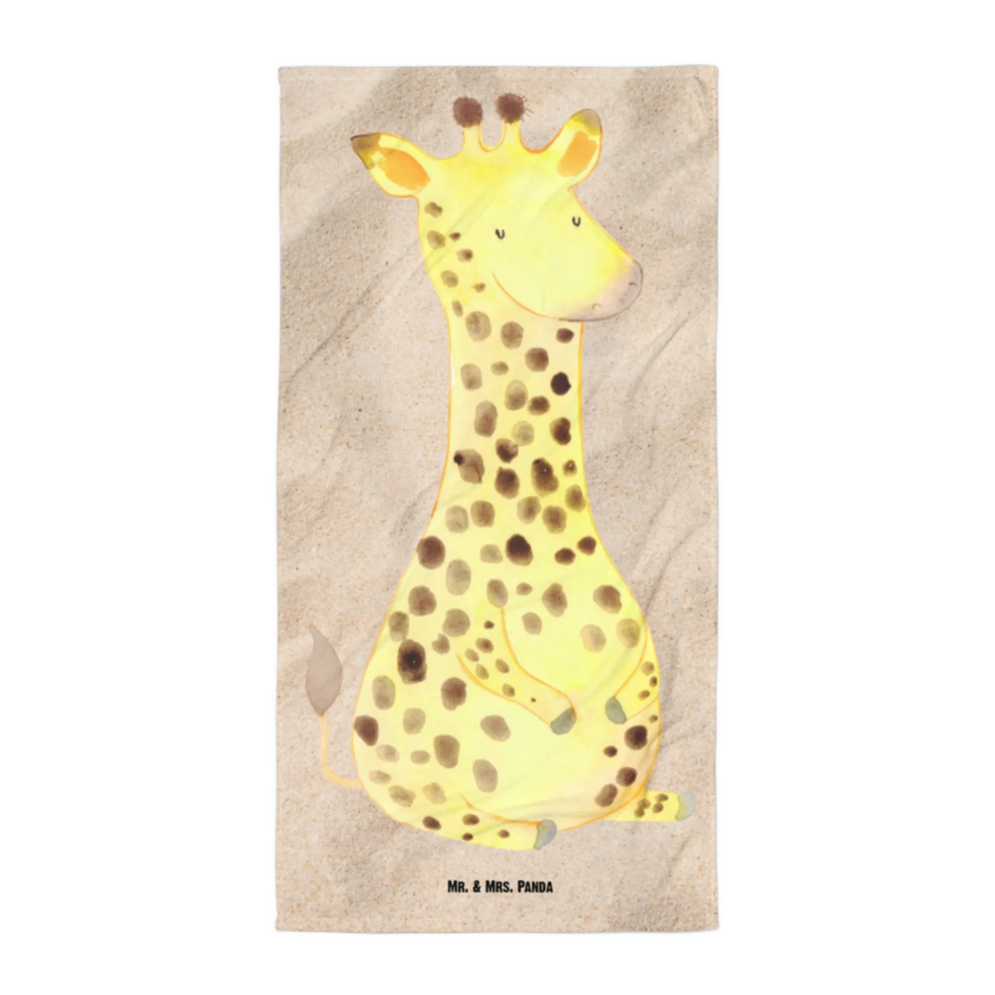 The charming design showcases a content giraffe, radiating happiness and inviting you to embrace life’s grand adventures. It's a constant reminder to enjoy the little moments and perhaps even inspire a sense of wanderlust. The vibrant colors are printed with high-quality materials that make the towel stand out, ensuring that your beach day or spa visit is both comfortable and stylish.