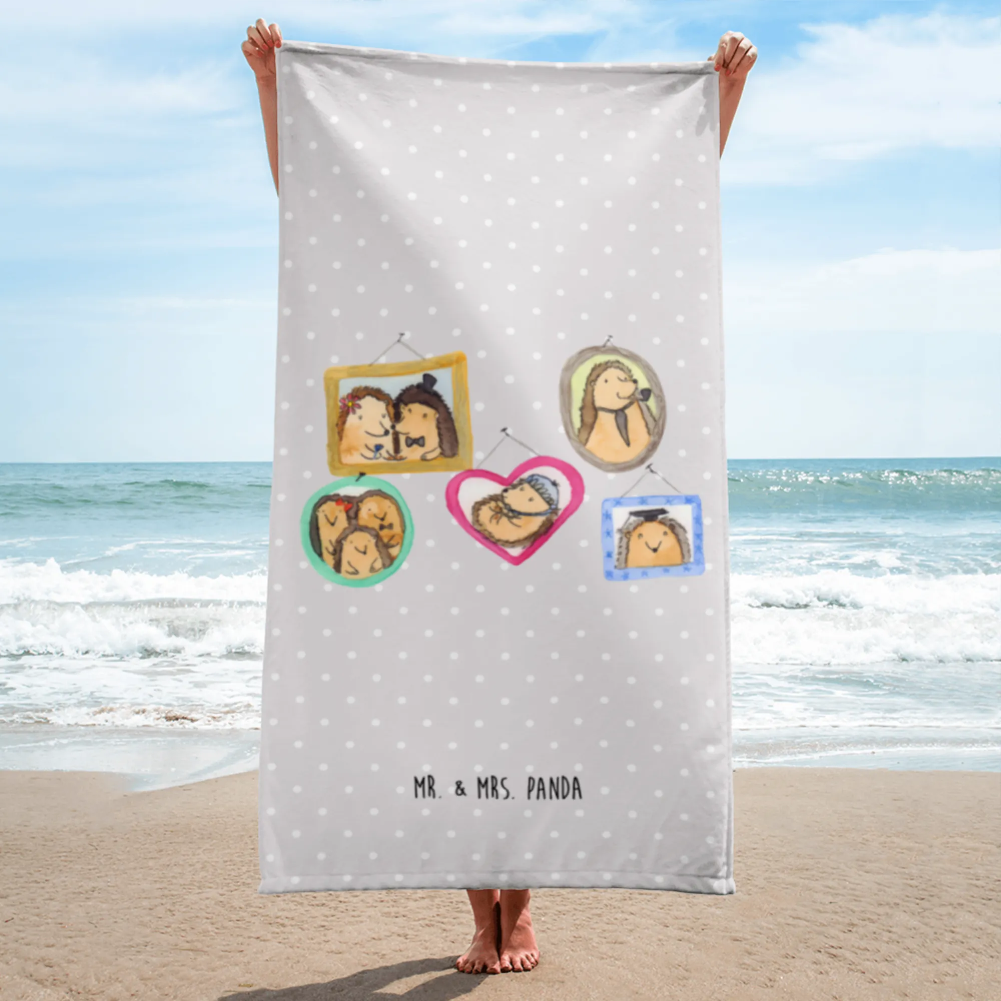 Introducing the perfect blend of comfort and charm: the XL bath towel featuring our delightful Hedgehog Family design, exclusively from the Mr. & Mrs. Panda collection!