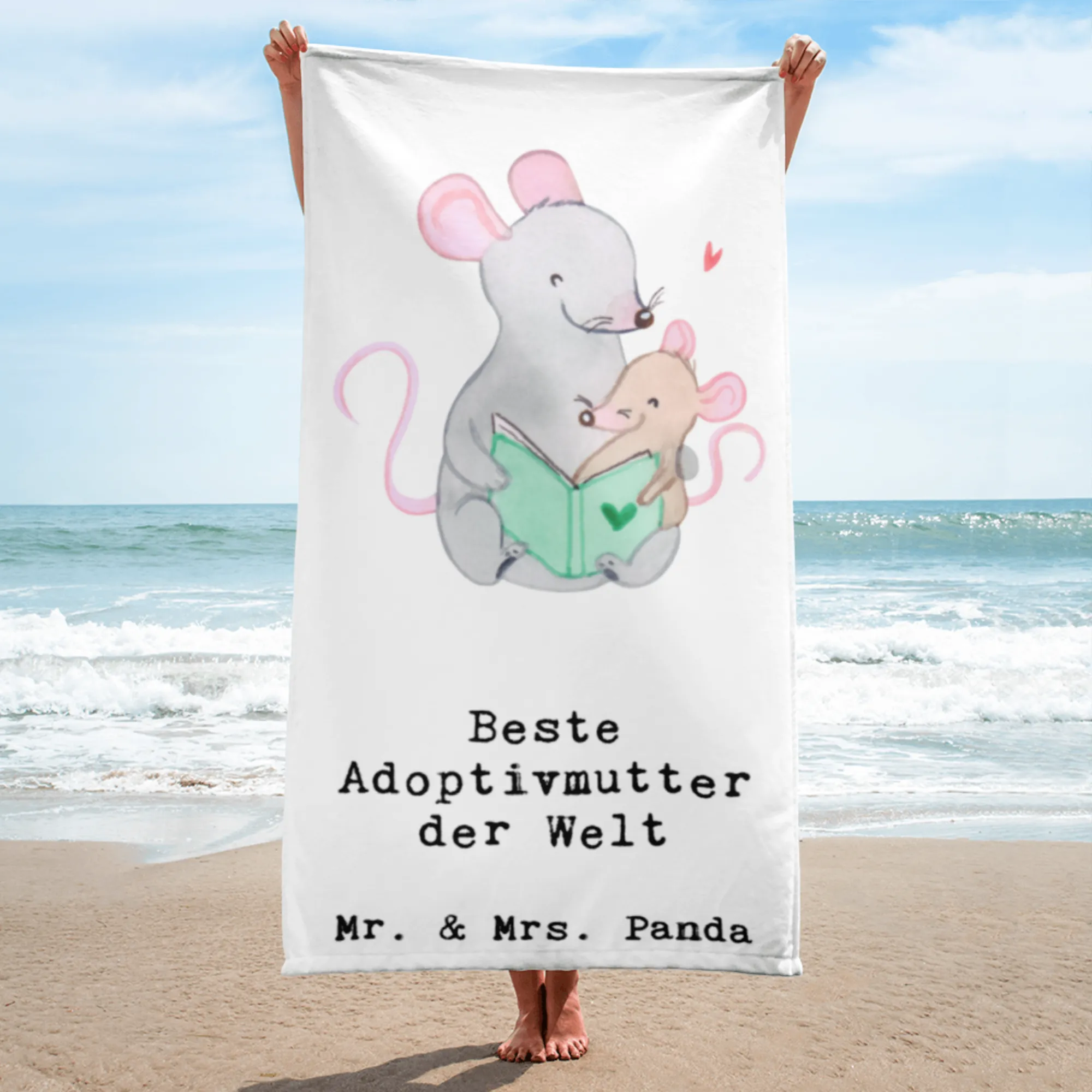 XL bath towel Mouse Best adoptive mother in the world - White