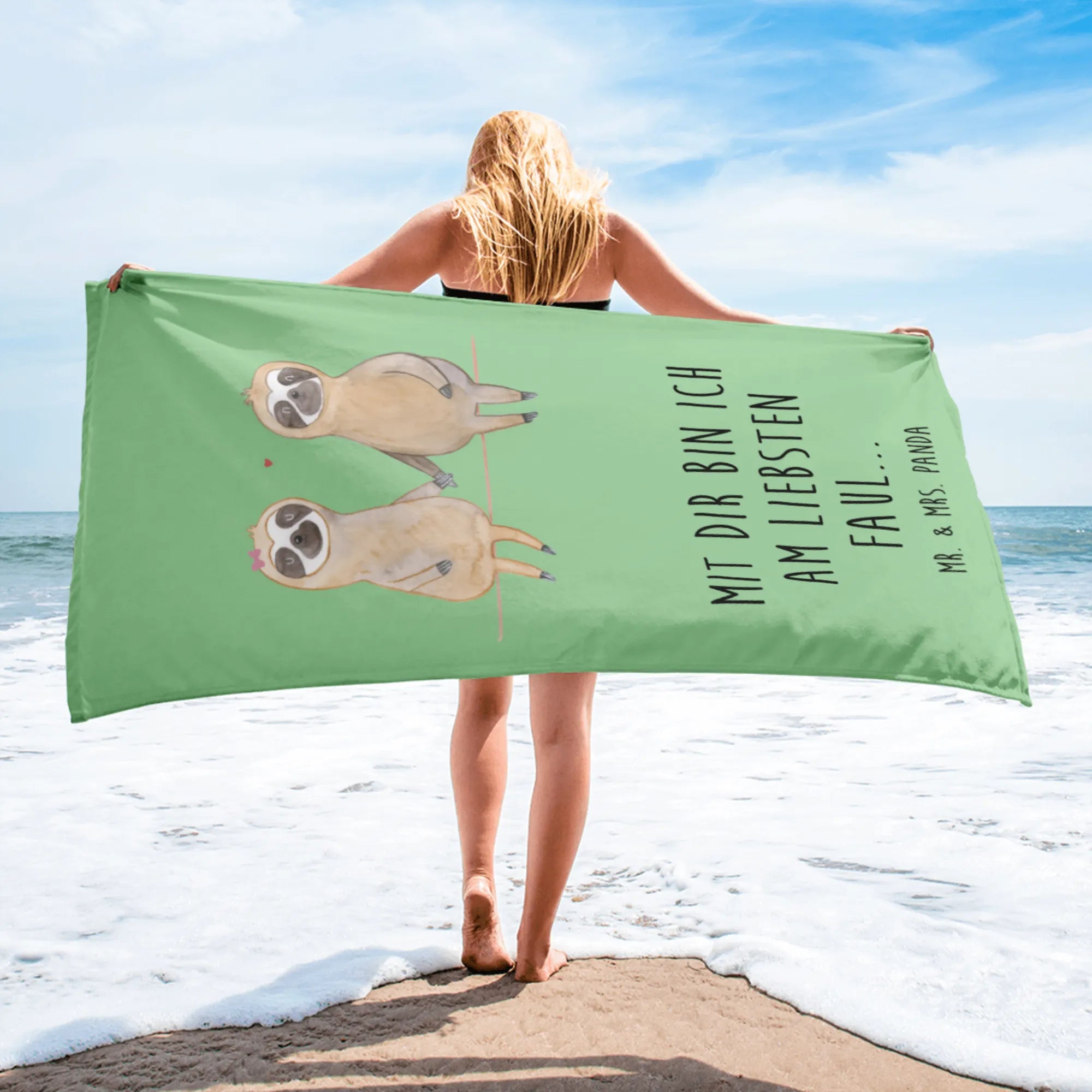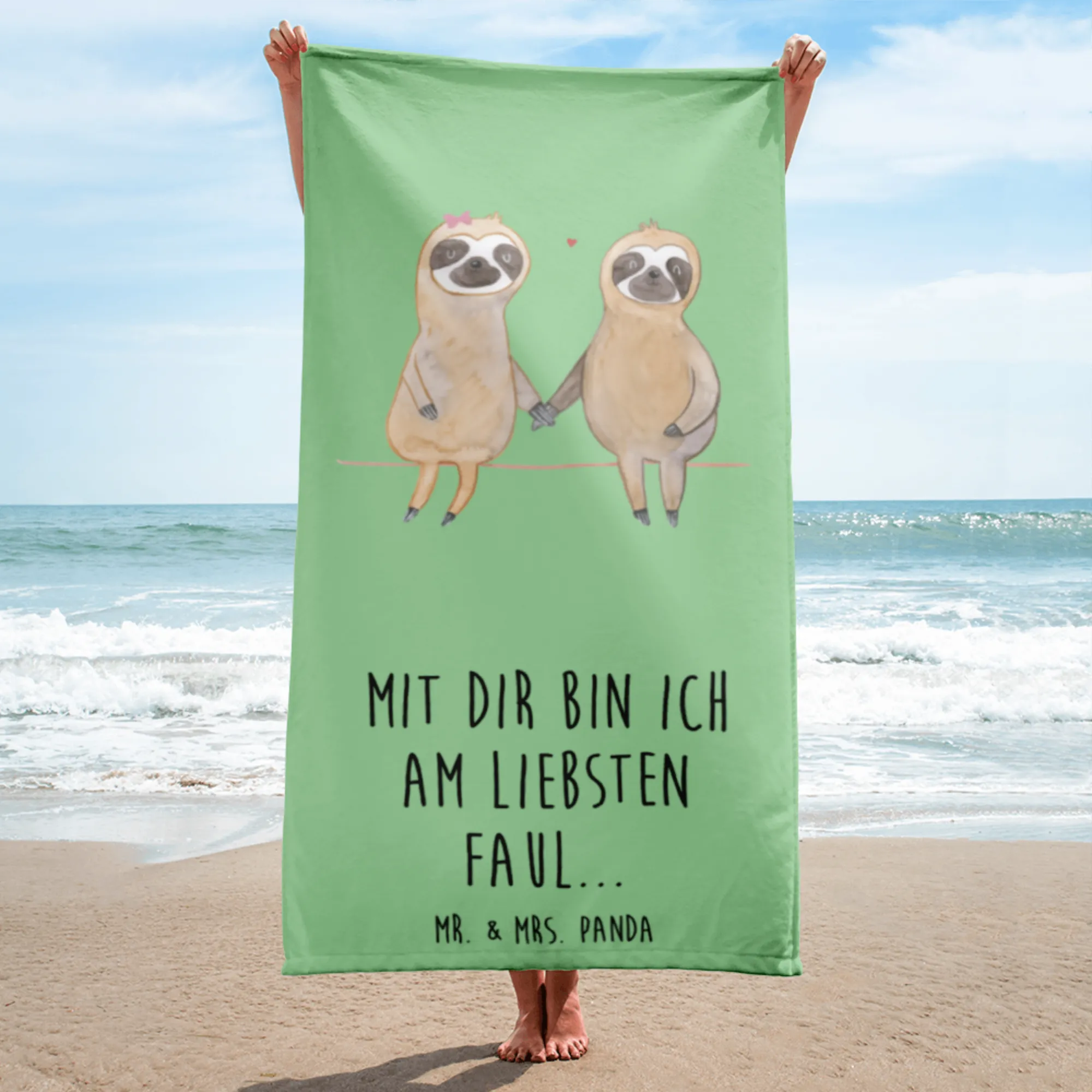 Looking for the perfect gift for a sloth lover or just someone who needs a reminder to relax and take it easy? Look no further than our XL bath towel featuring the adorable Sloth couple from the exclusive Sloth Collection by Mr. & Mrs. Panda! This oversized towel is perfect for every occasion – whether you're lounging at the beach, spending a day at the spa, or just enjoying a cozy night at home, this towel will wrap you in comforting softness.