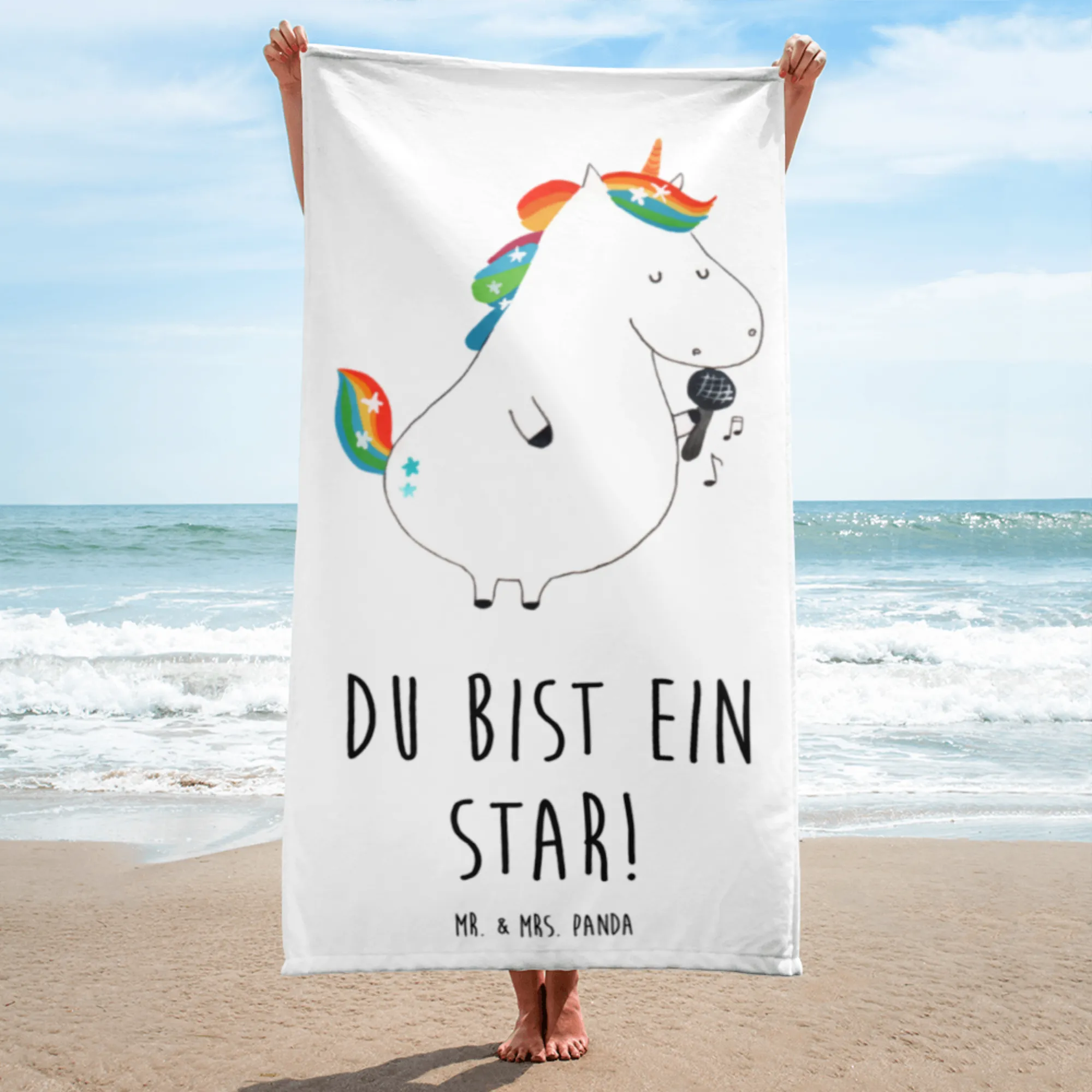 Das XL Badehandtuch Einhorn Sänger aus der bezaubernden Einhorn-Kollektion von Mr. & Mrs. Panda ist das perfekte Geschenk für alle Einhornliebhaber. Mit seinem liebevoll handgezeichneten Motiv eines singenden Einhorns, das begeistert ins Mikrofon trällert, bringt dieses Handtuch Freude und Glanz in jeden Bade- oder Strandtag. Ob am Pool, im Schwimmbad oder beim gemütlichen Tag in der Sauna – dieses XL Handtuch ist ultra saugfähig, kuschelig weich und wird zum liebsten Begleiter für unvergessliche Momente.
