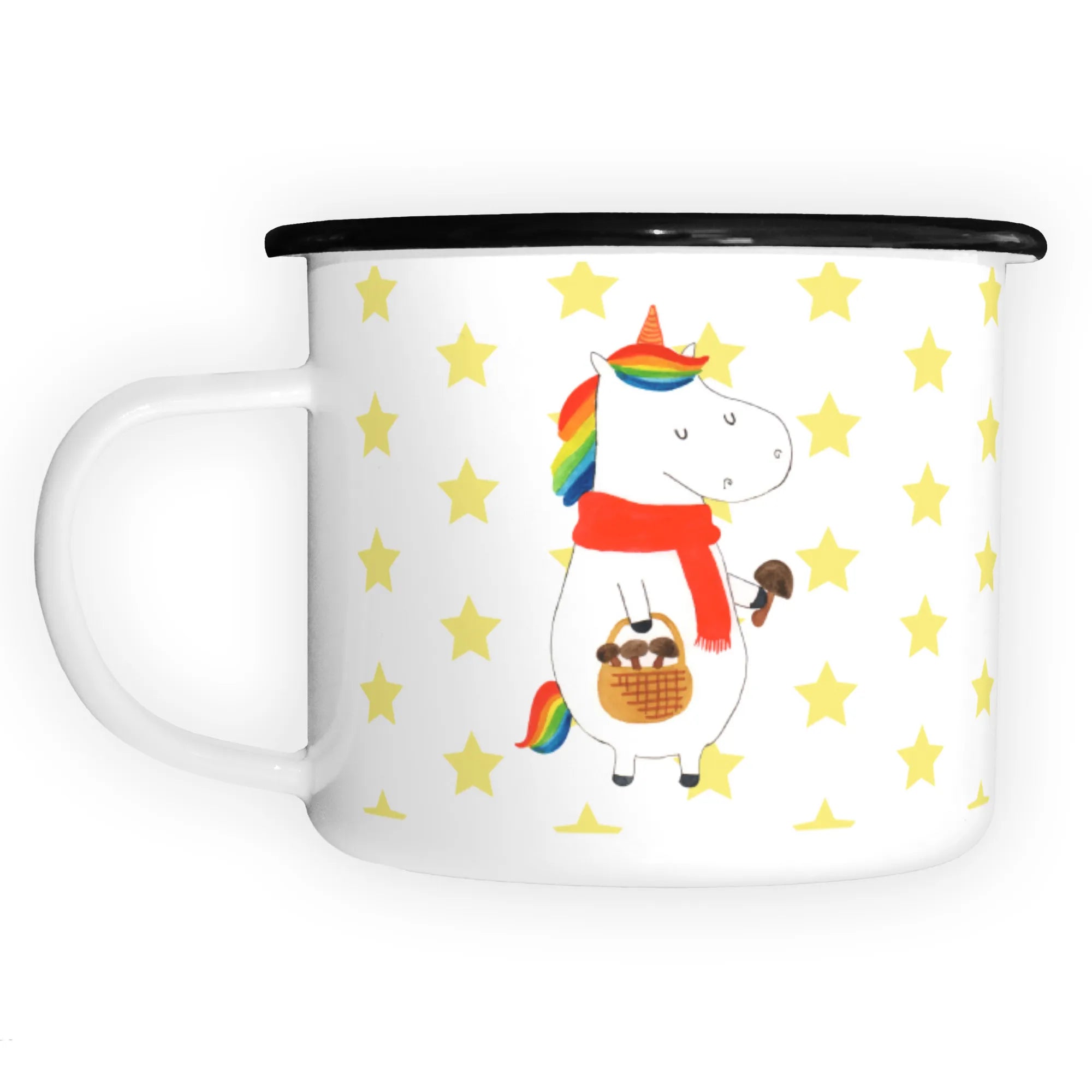 If you're on the hunt for the perfect gift for a unicorn lover or an adventurous spirit, look no further than the charming XL enamel cup featuring an adorable Unicorn Mushroom motif from the delightful Unicorn Collection by Mr. & Mrs. Panda!
