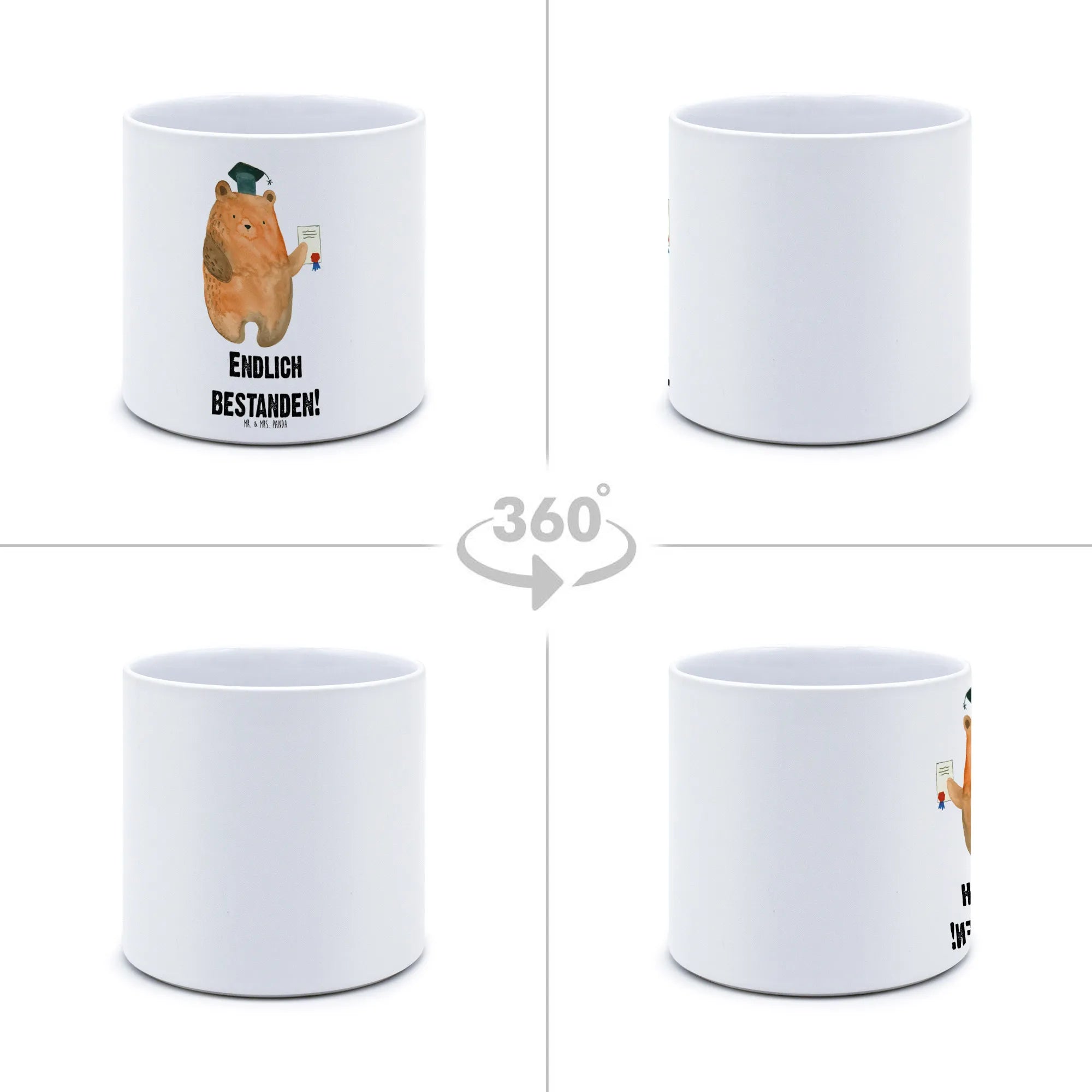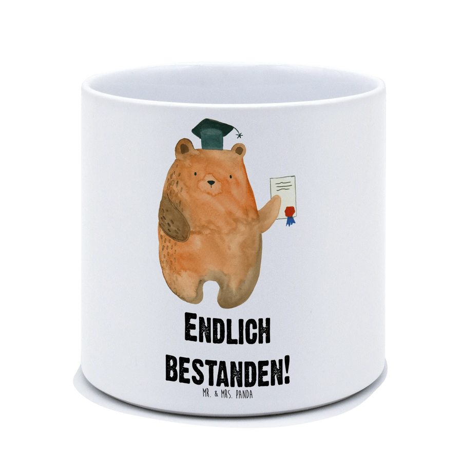Imagine gifting this sweet pot to a graduate, a friend who just passed their examinations, or family members celebrating their achievements! The adorable Exam Bear design, crafted with love by Mrs. Panda, showcases a bear triumphantly emerging from the challenges of exams, embodying encouragement and joy. The slogan "Endlich bestanden!"—meaning "Finally passed!"—throughout the collection perfectly captures the essence of achievement, making it the ideal gift for anyone who has recently graduated or completed rigorous studies.
