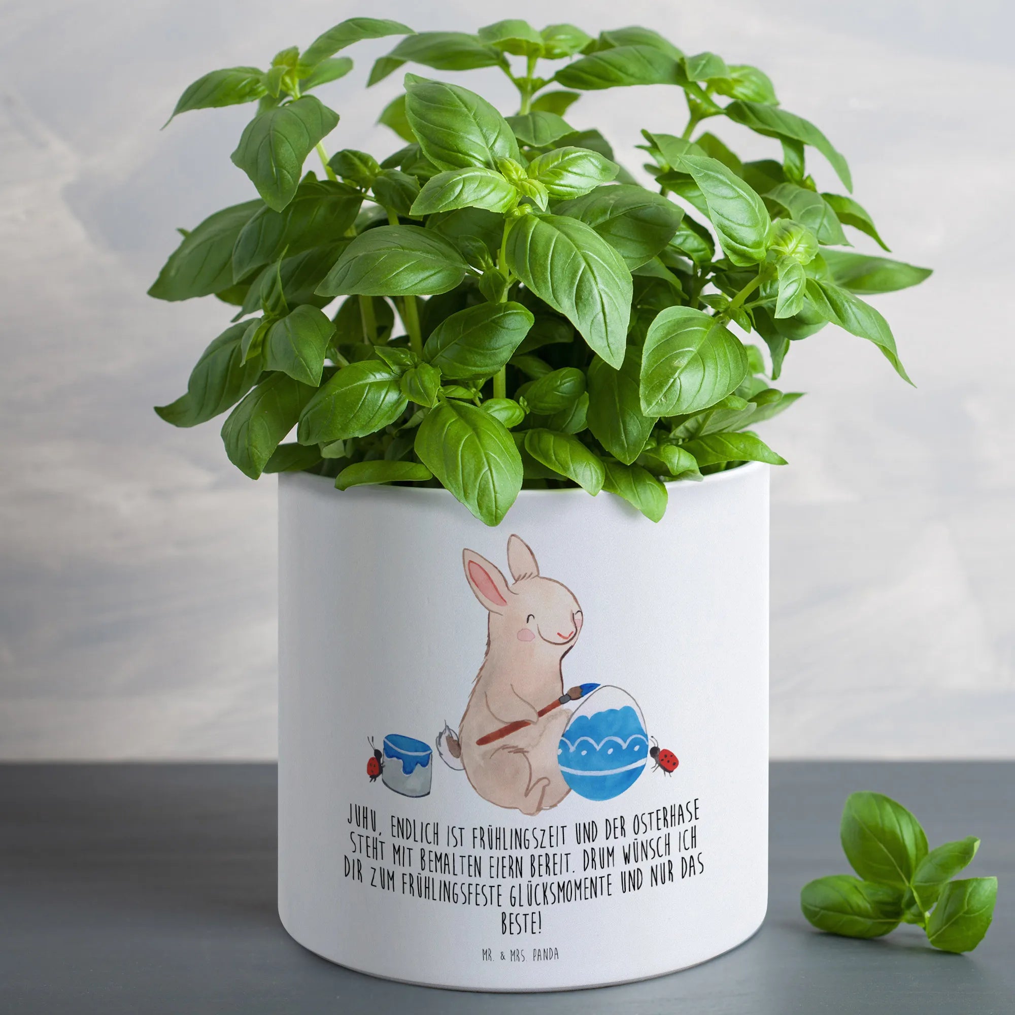 Spring is finally here, and with it comes the joy of Easter! What better way to celebrate than with the adorable XL Flower Pot featuring our charming rabbit ladybug motif from the exclusive Easter Collection by Mr. & Mrs. Panda? This delightful ceramic flower pot is not only a perfect home for your favorite plants but also a whimsical decoration that instantly breathes life into any space.